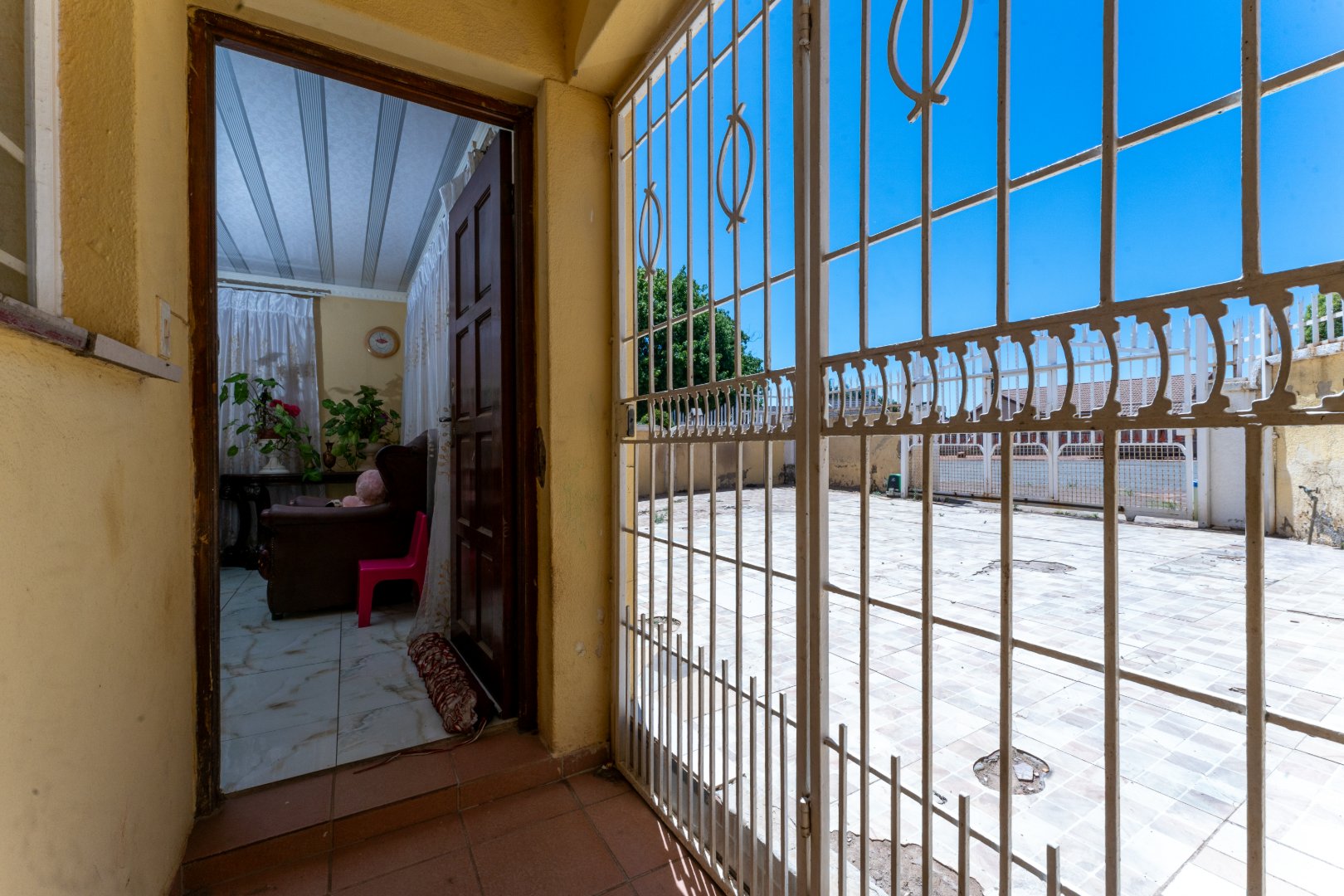 From the moment you arrive, you’re welcomed by a fully enclosed, gated entrance that offers privacy and security, with a convenient pedestrian gate and a spacious carport for sheltered parking.