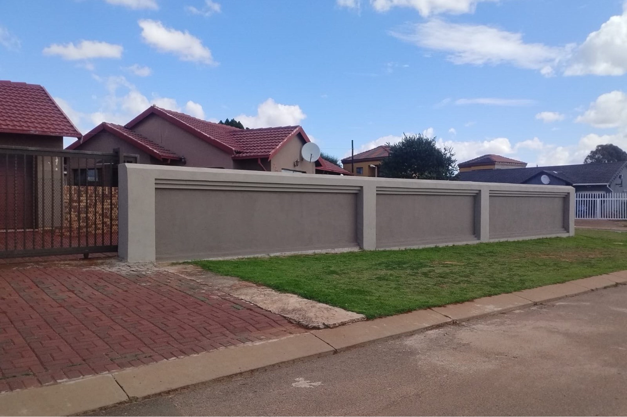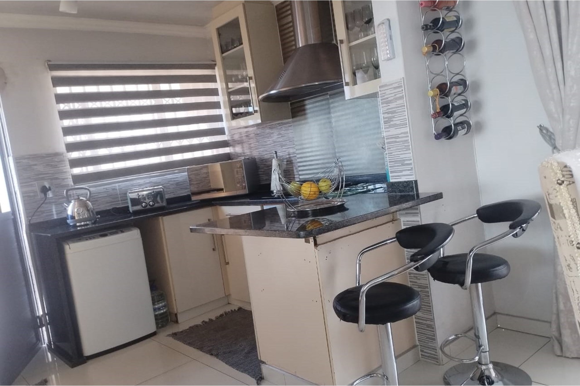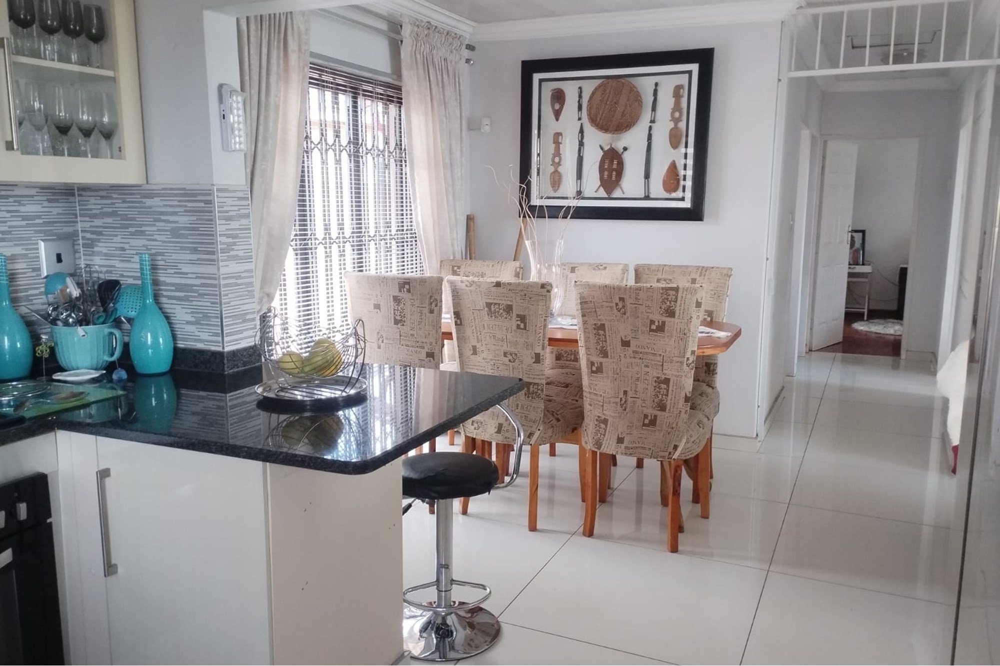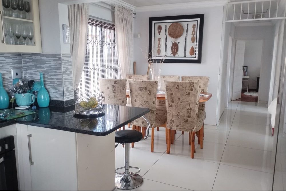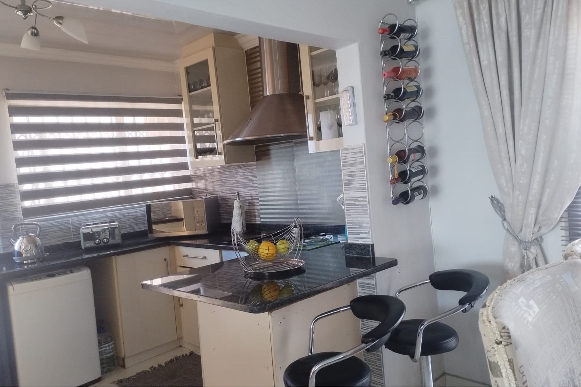 Additionally, the property is equipped with a trellis sliding folding door. It is situated on a corner stand measuring 670 square meters, conveniently located near a school that accommodates grades R to 12, as well as a mosque, shopping complex, petrol station, and Trade Route Mall. The area is secure and features a boom gate.
