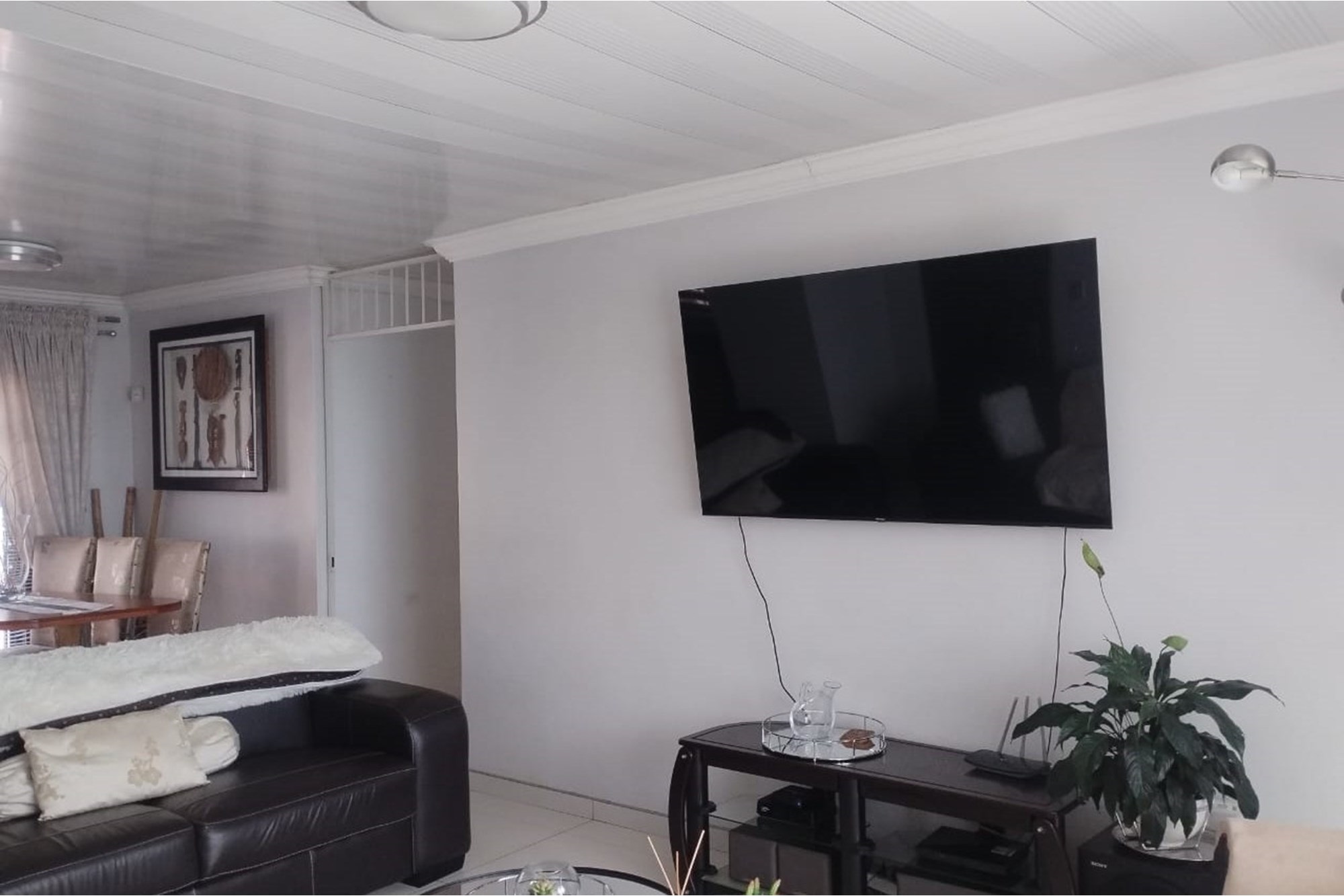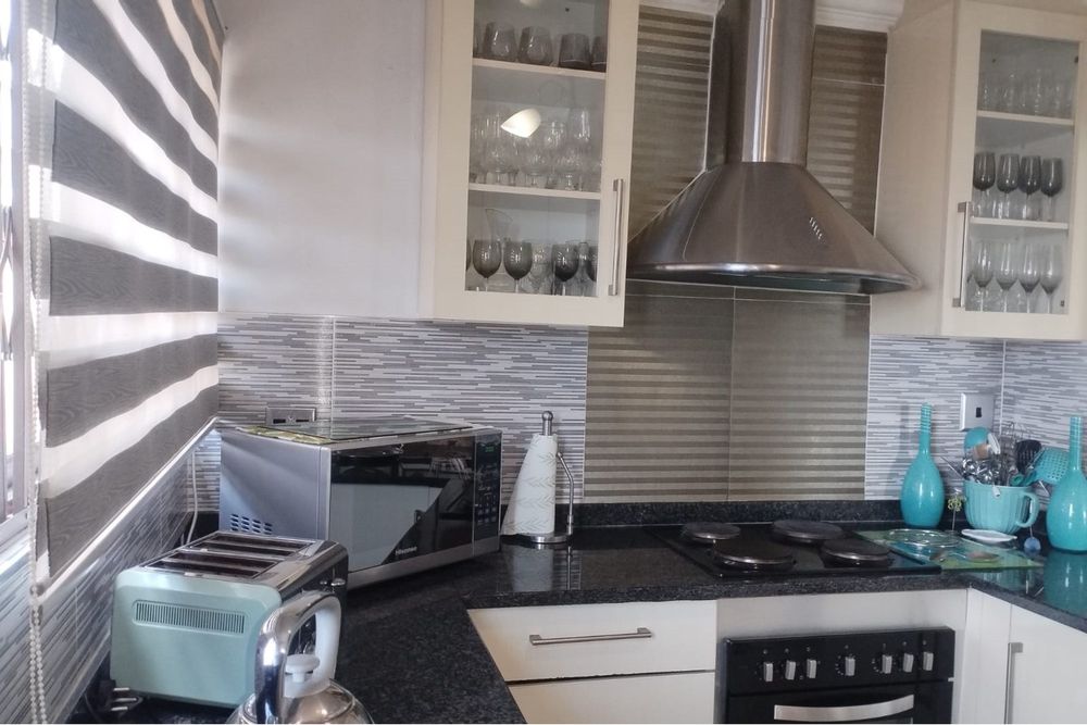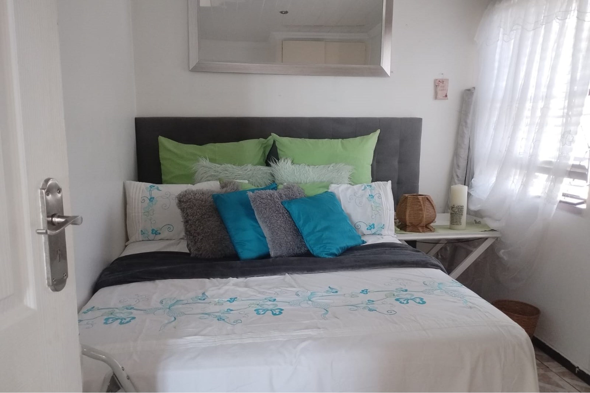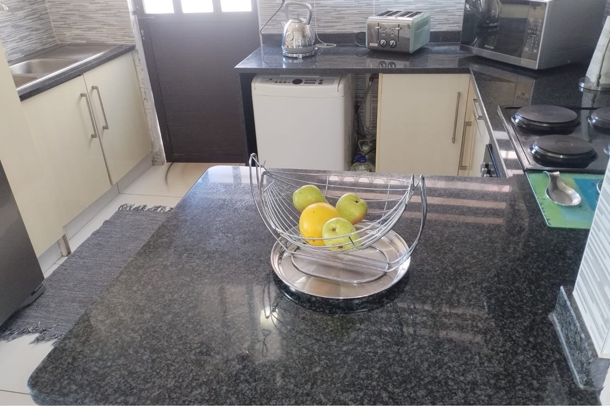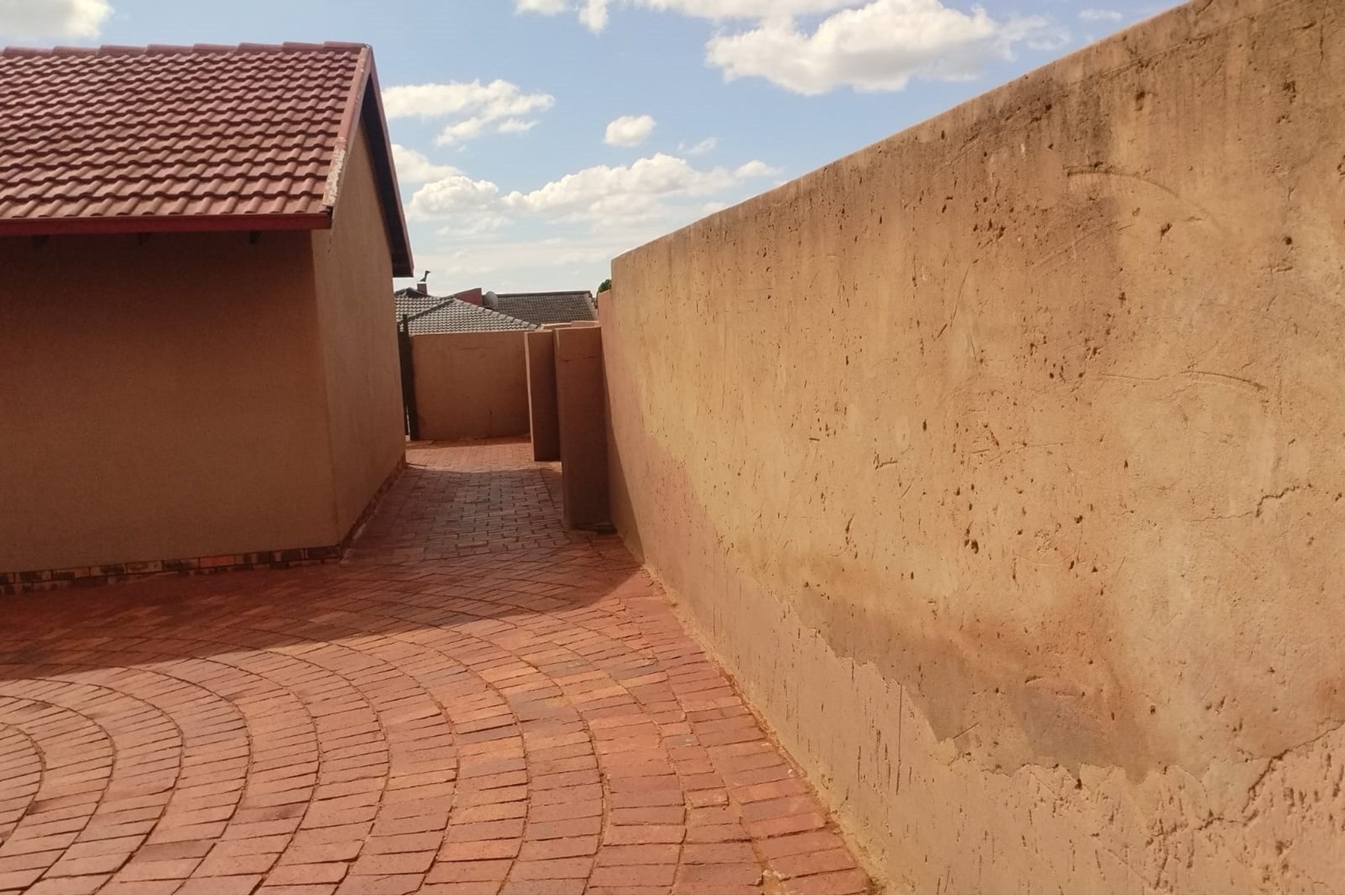 Additionally, the property is equipped with a trellis sliding folding door. It is situated on a corner stand measuring 670 square meters, conveniently located near a school that accommodates grades R to 12, as well as a mosque, shopping complex, petrol station, and Trade Route Mall. The area is secure and features a boom gate.