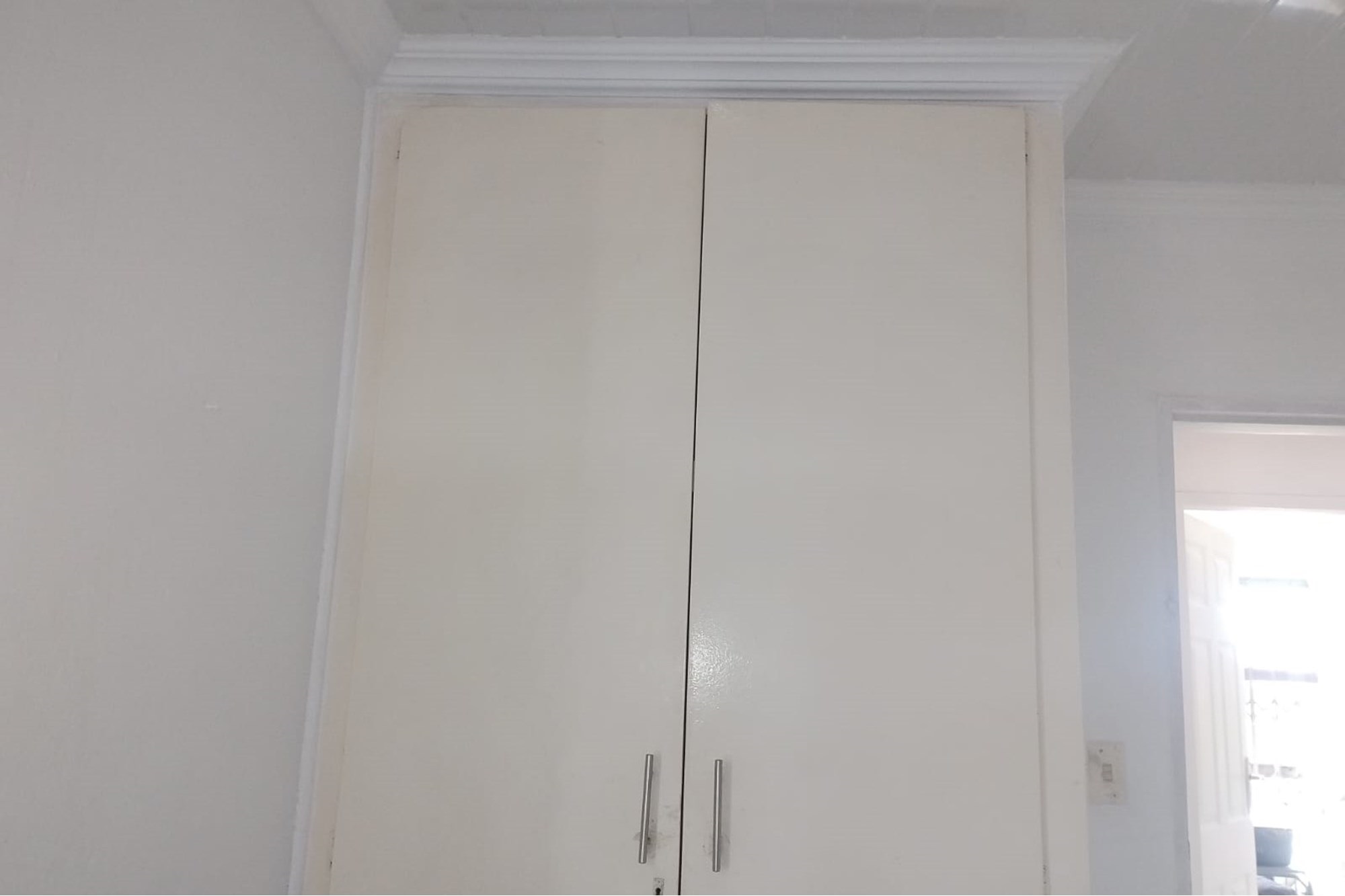 This property features a main bedroom with an ensuite, a wooden floor, and built-in cupboards (BIC). The second bedroom is designed for kids, has a PVC ceiling, tiled flooring, and built-in cupboards. There is also a guest toilet.