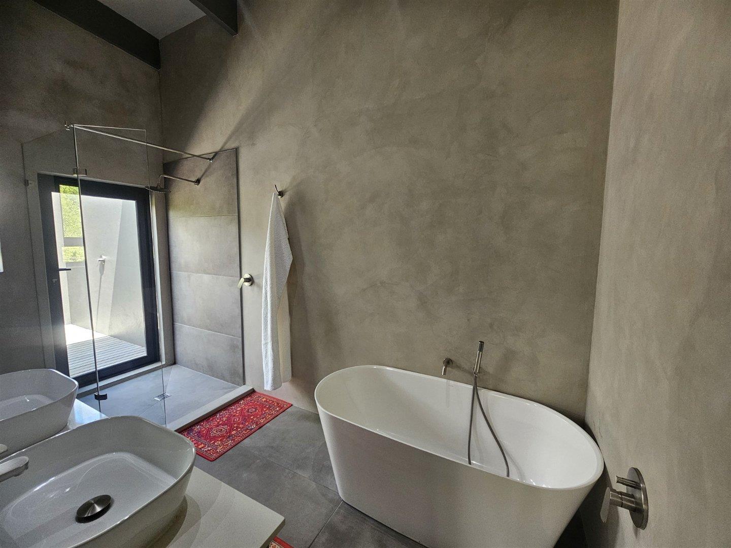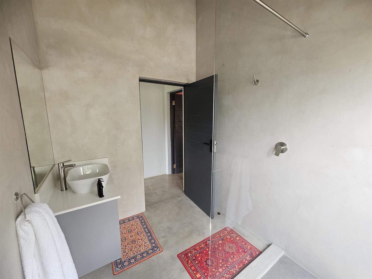 The main bedroom is en-suite, the bathroom having a large bathtub, shower, double basin, toilet and outdoor shower. The other two bedrooms share a bathroom which has a basin, toilet and shower. All rooms have plenty of cupboard space.