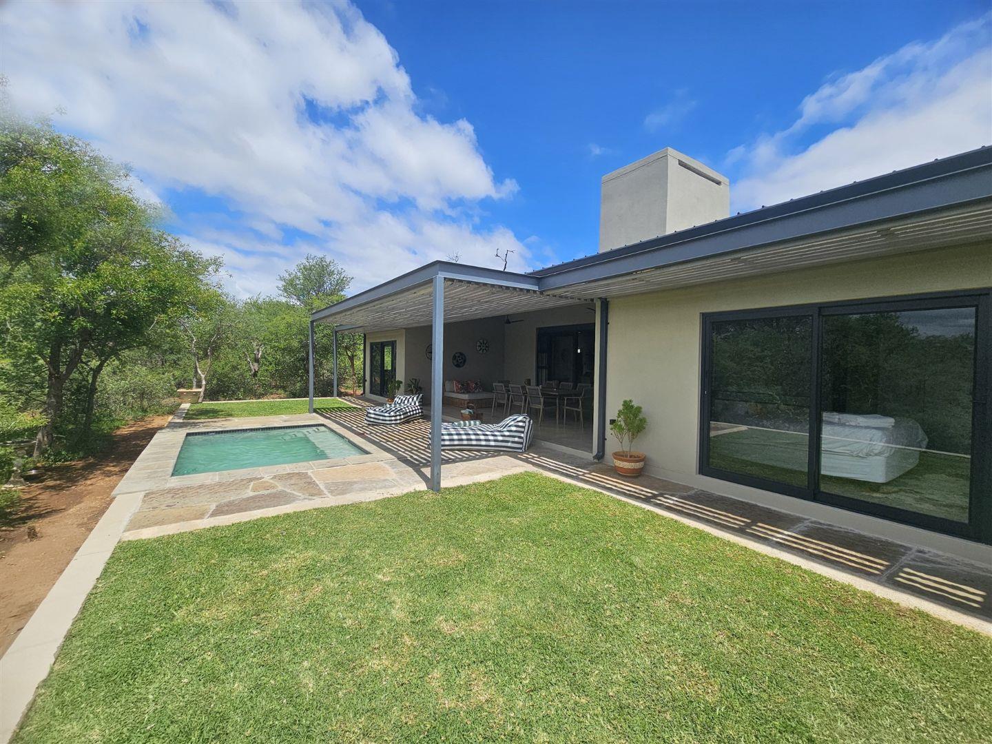 This newly built, 3 bedroom home is perfect for families looking to rent in the South African bush and has beautiful indoor or outdoor entertainment areas.