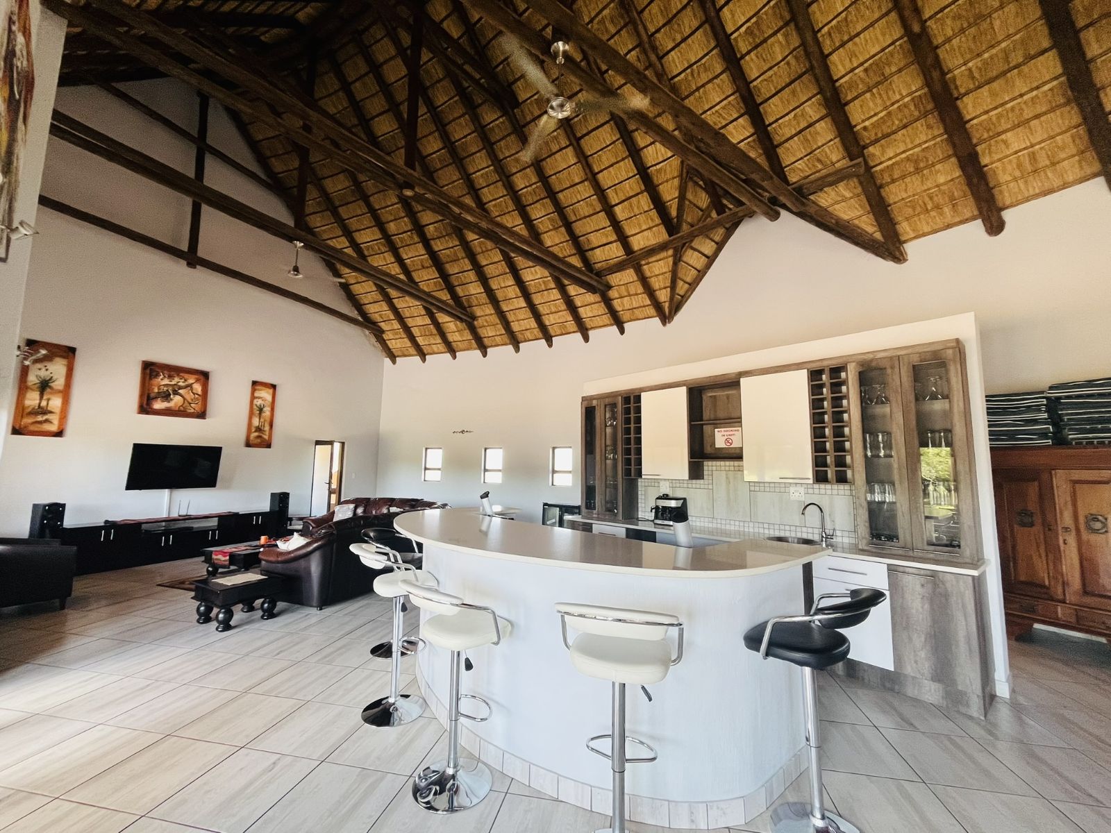 The heart of the home is its expansive open-plan kitchen, dining, and living area – designed for seamless flow and easy living. Step outside and immerse yourself in a private oasis featuring a sparkling swimming pool, a soothing jacuzzi, and a boma – ideal for evening gatherings under the stars around a crackling fire.