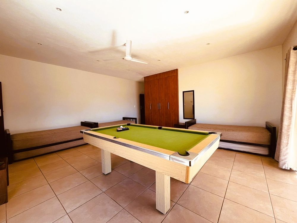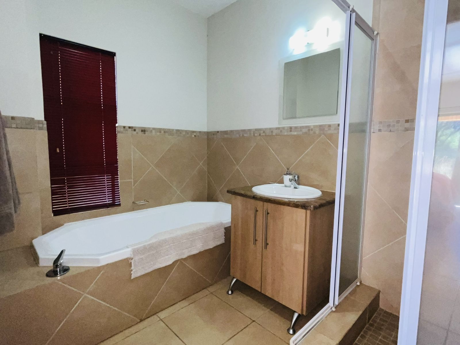 This sprawling 5-bedroom, 5.5-bathroom property is built for luxury living and entertaining. Each spacious bedroom has its own en-suite bathroom (four of which are full bathrooms with bath and shower), and either patio access or a private balcony, offering stunning views of the surrounding bush and golf course. The fifth bedroom, also has its own entrance, is ideal to be utilised as a flat, or for a housekeeper or Butler.