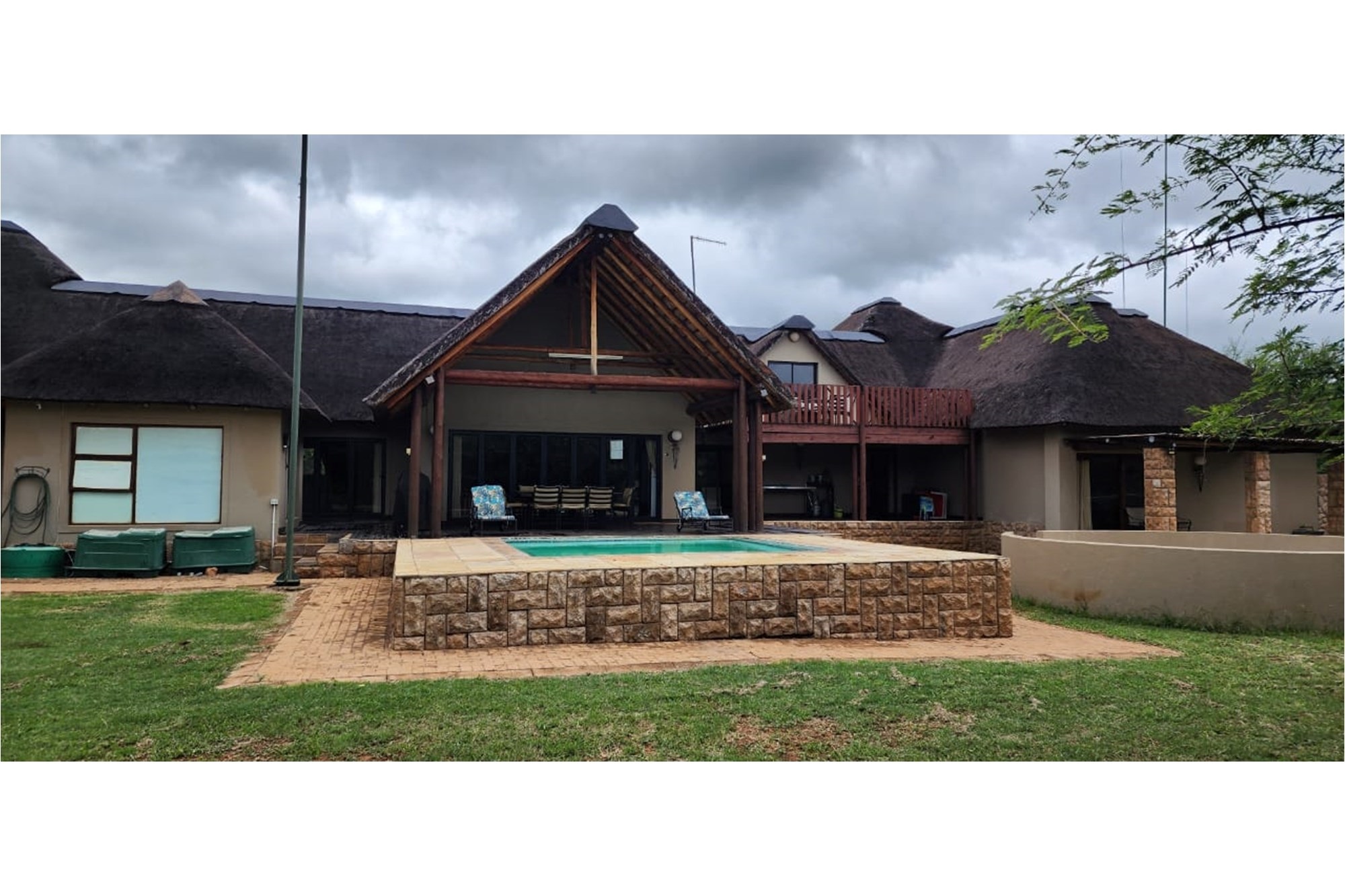 Nestled within a breath-taking wildlife golf estate, this magnificent six-bedroom en-suite residence offers the perfect blend of luxury, tranquility, and nature. Designed for both comfort and elegance, the home features an open plan dining and lounge area, seamlessly flowing into a modern, fully equipped kitchen with a gas stove and pantry.