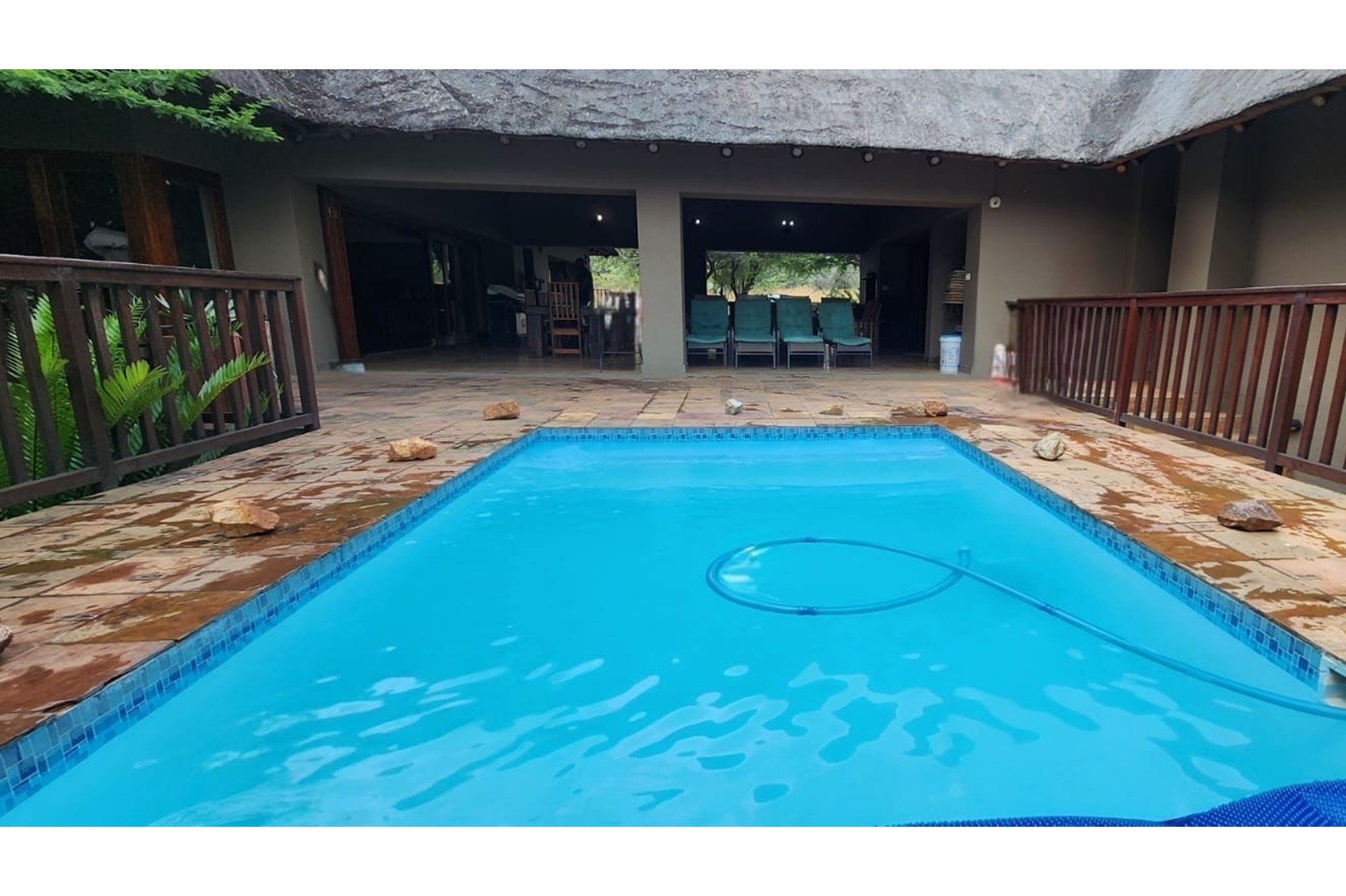 The main house`s bedrooms are elevated by outdoor showers, blending indulgence with the tranquility of nature. The open-plan lounge (with fireplace), dining room, and kitchen flow seamlessly onto a sprawling patio and a sparkling swimming pool, creating the ultimate hub for family gatherings and memorable celebrations. Separate TV room for sport fanatics. The lodge sleeps a total of 14 people.
