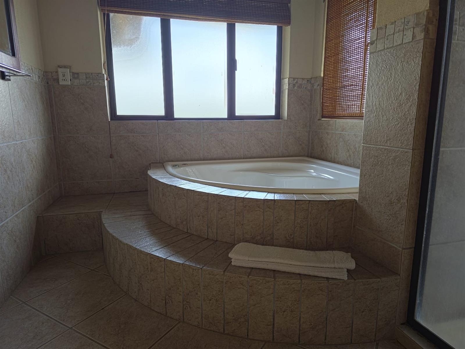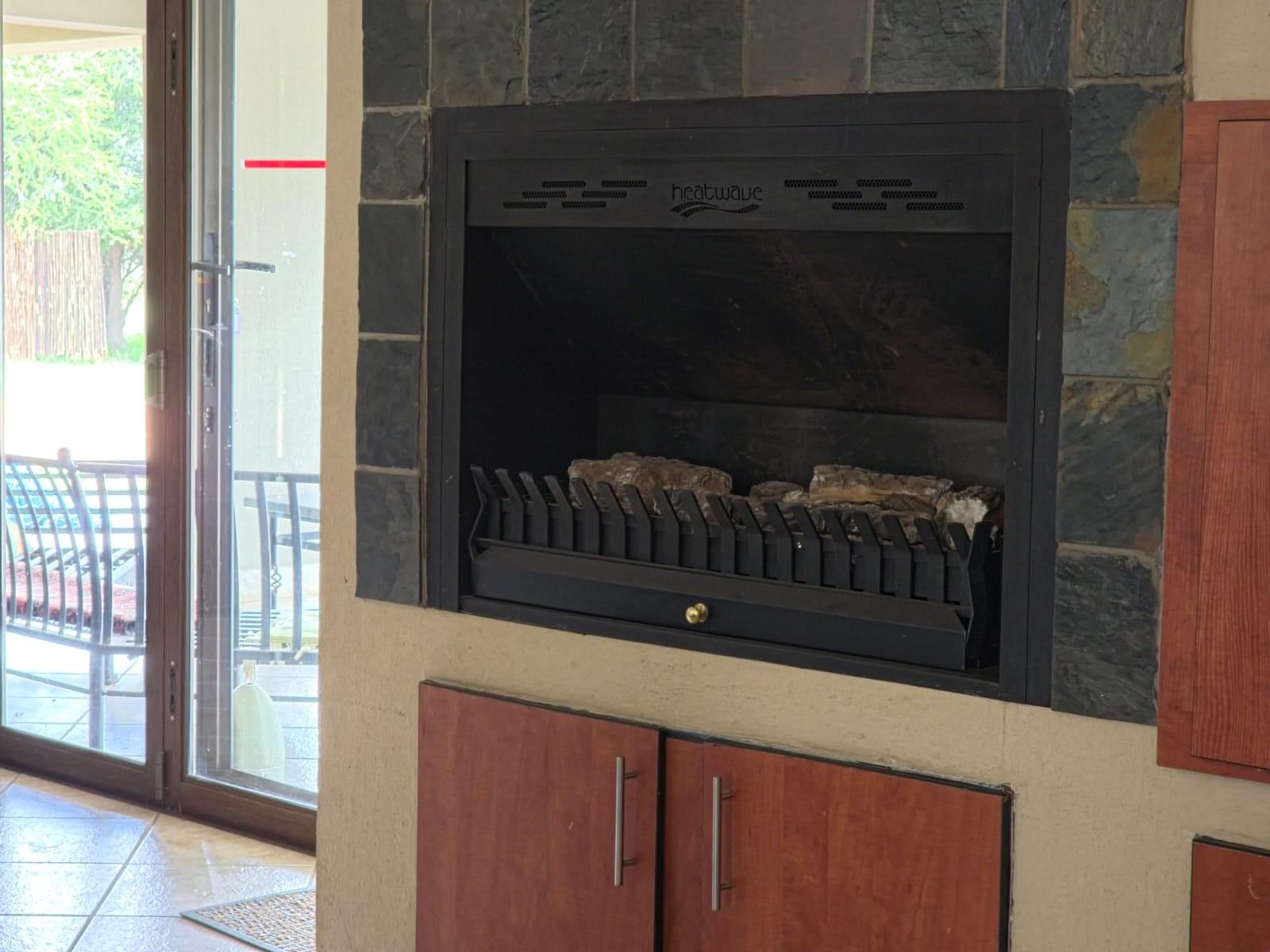 The lounge flows seamlessly through sliding stack doors to a large patio and swimming pool. The heated swimming pool is powered by a heat pump. The patio is equipped with a double built-in braai with spit braai facilities.