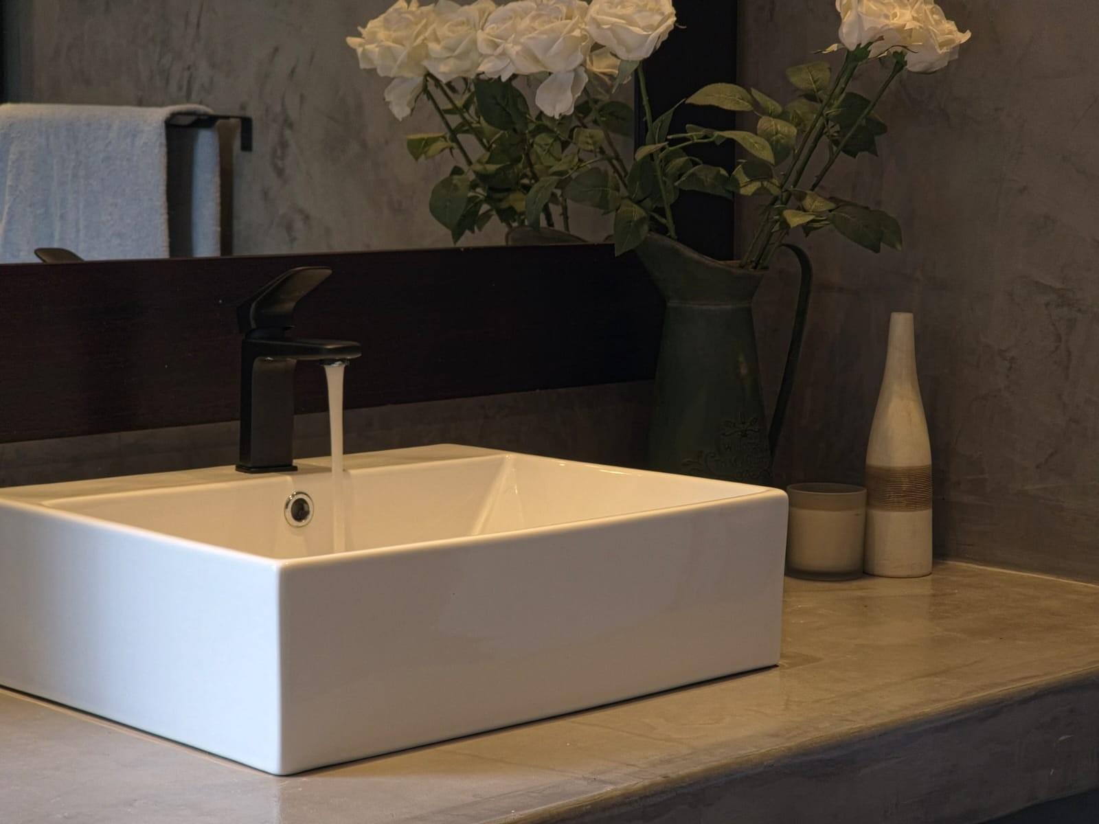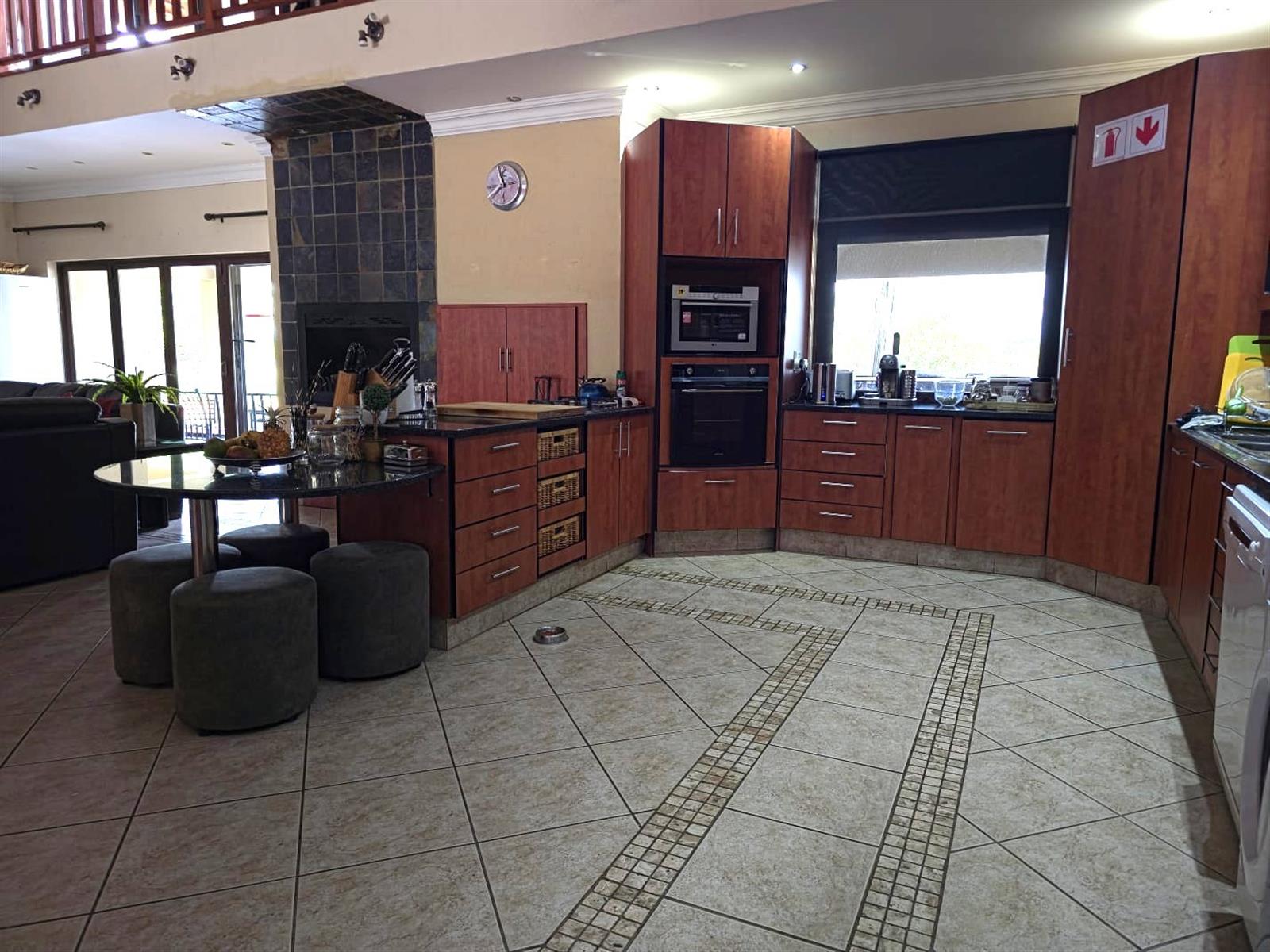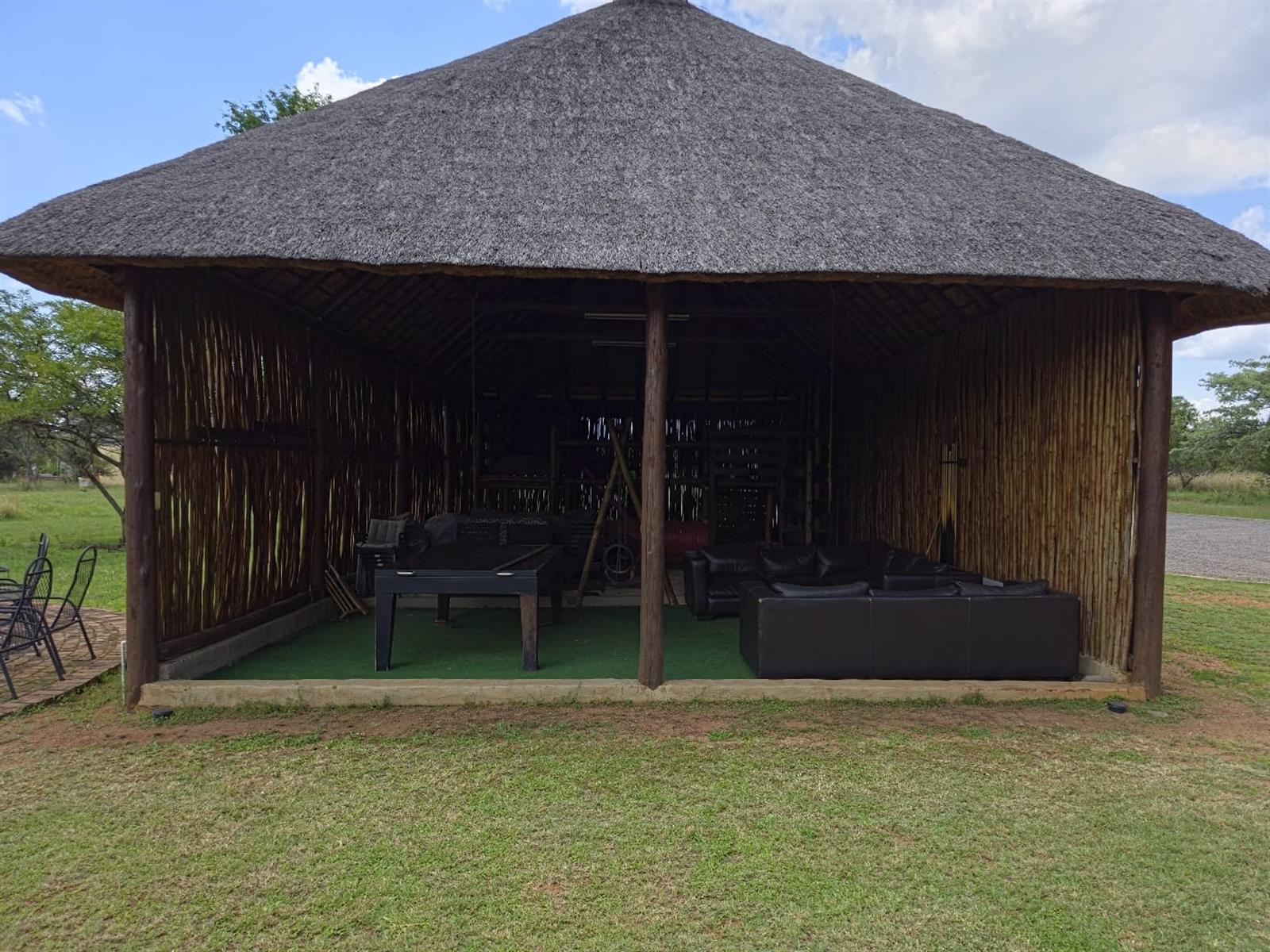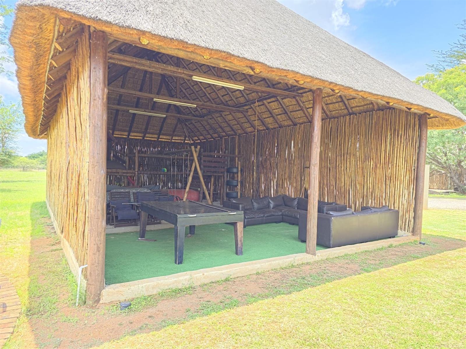 Outdoor living is enhanced by a boma braai area with hot and cold water.