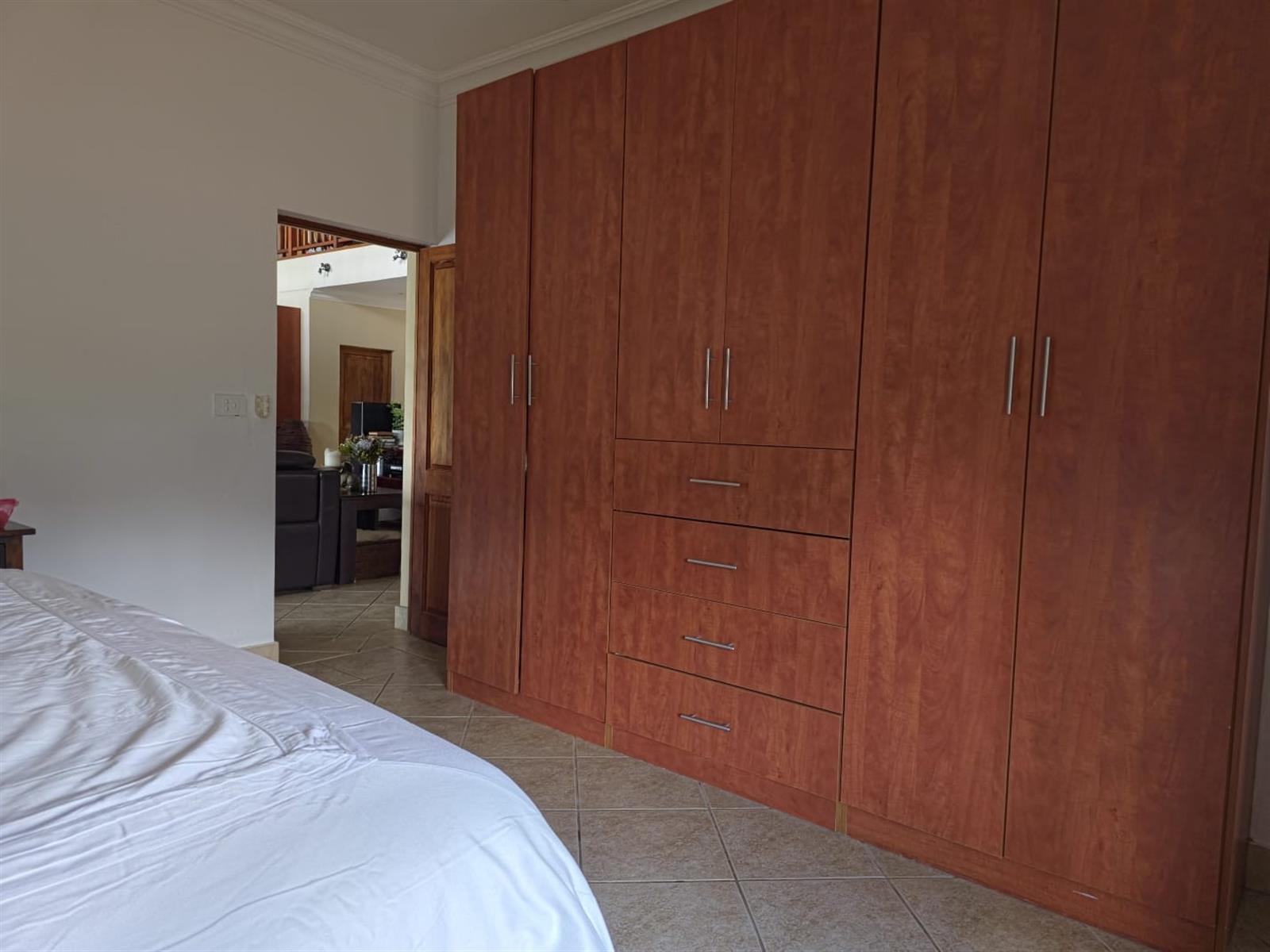 There is also a flatlet suitable for a domestic worker or as an additional en-suite bedroom. The property includes a steam room with shower and single vanity, as well as a large linen room on the first floor.