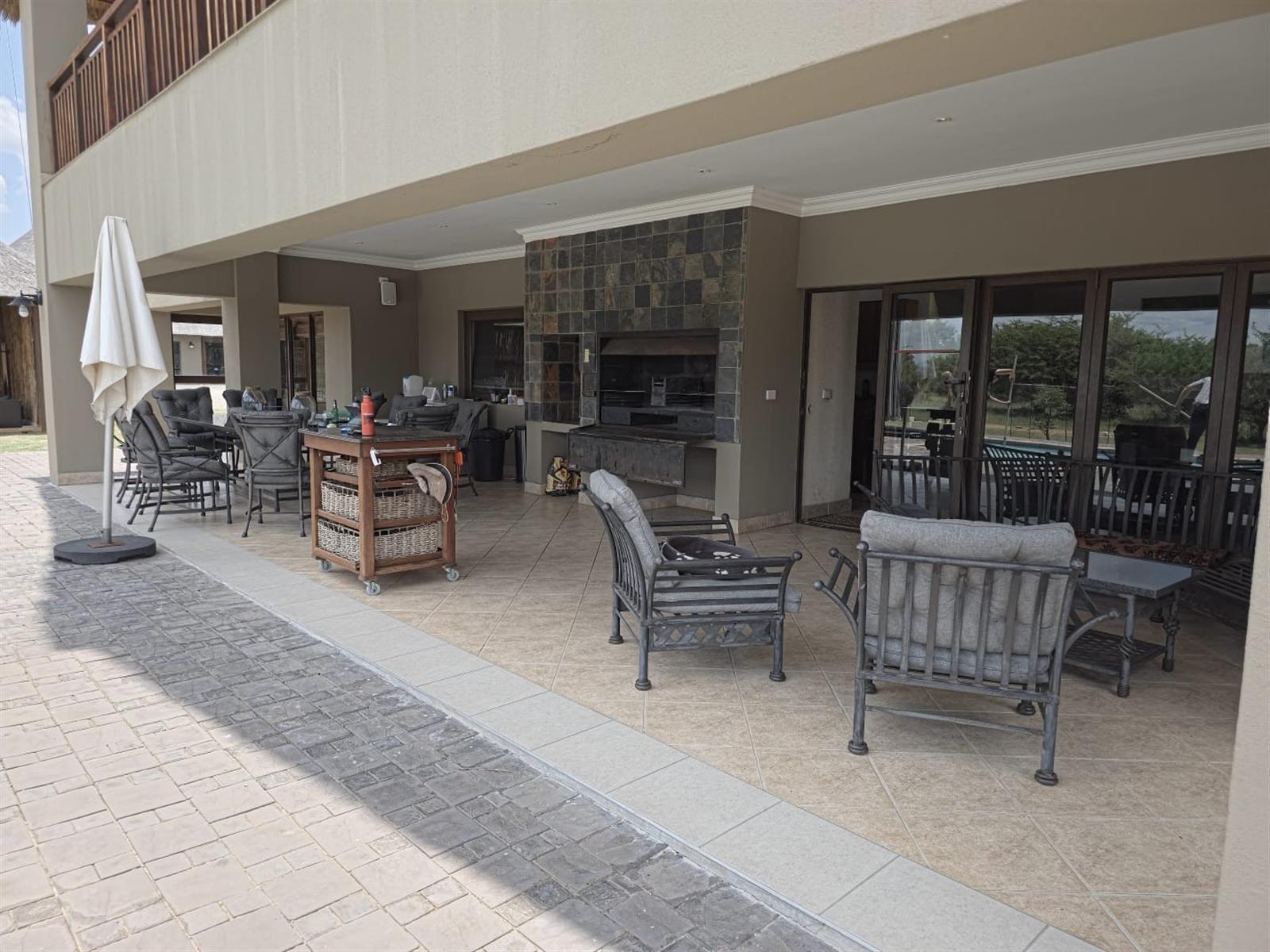 The expansive patio and pool area are designed for social gatherings and leisure. Multiple braai facilities, including the patio and boma, provide authentic bushveld dining experiences. The steam room and study spaces add versatility, offering both relaxation and productivity.