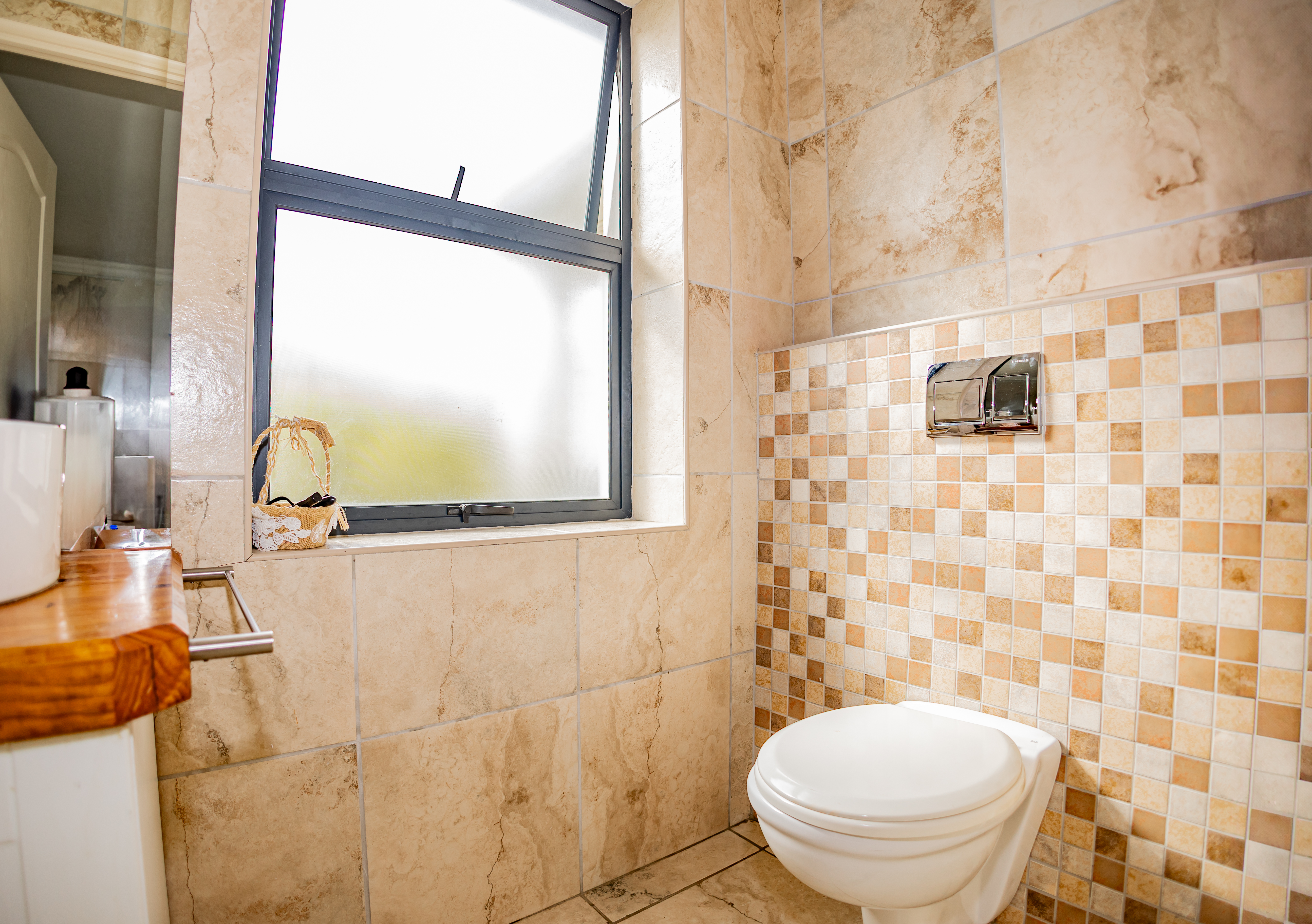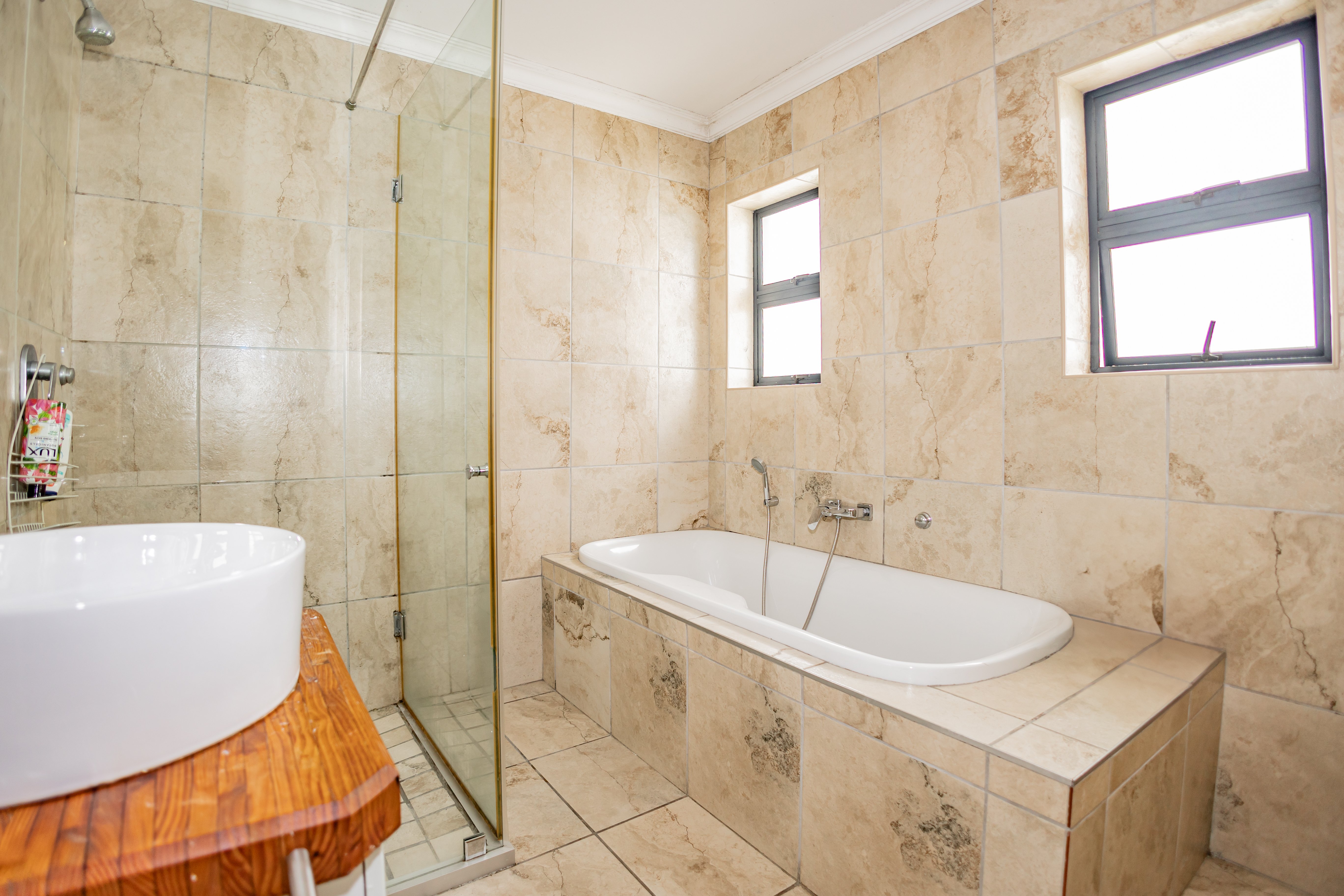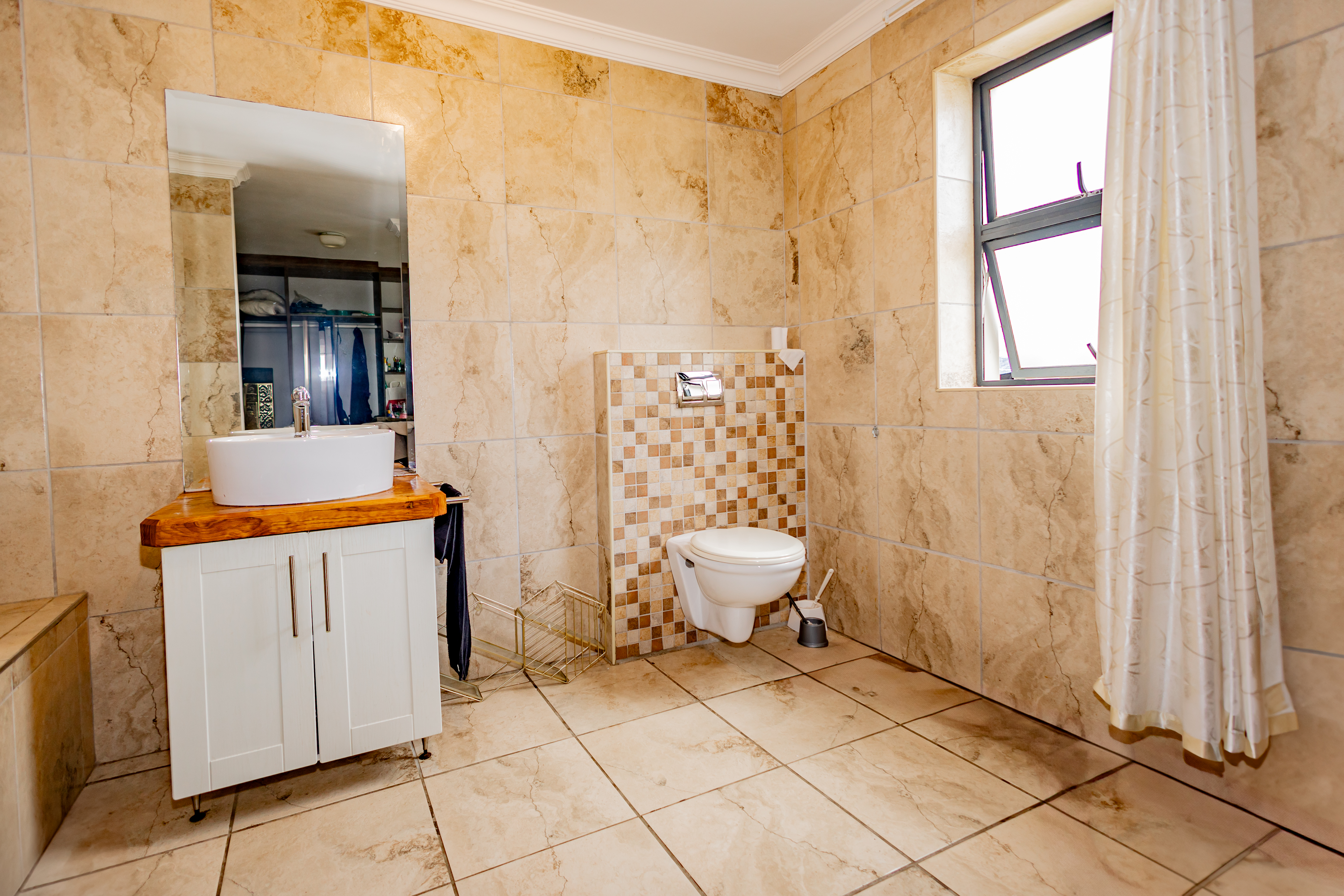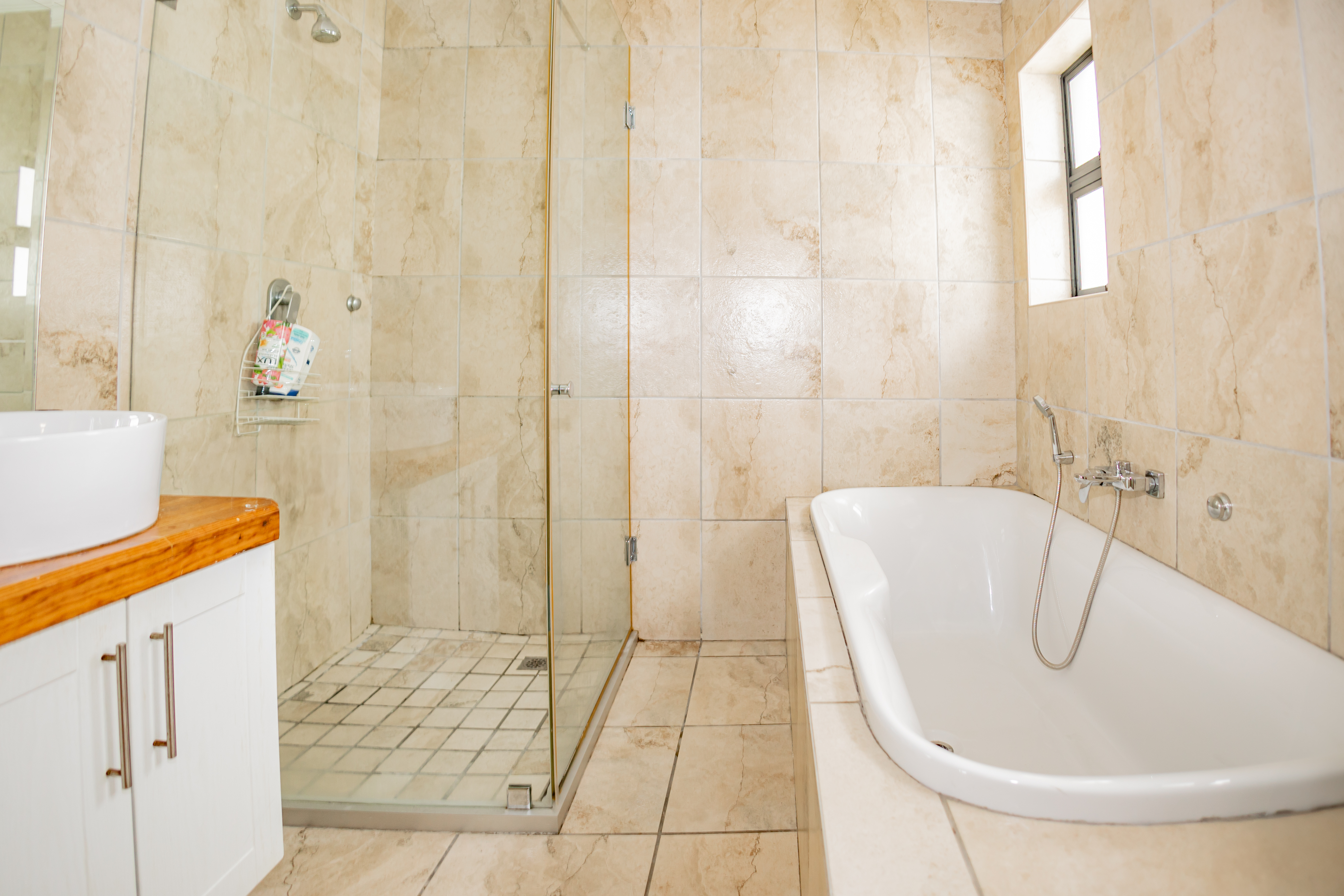 - A stylish full family bathroom, fully tiled