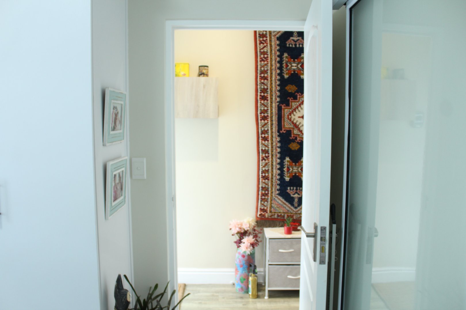 Designed with comfort and ease in mind, the apartment features a spacious bedroom with built-in cupboards, a modern bathroom, and an open-plan living area with a practical kitchenette. An enclosed patio flows out to an additional outdoor garden area.
