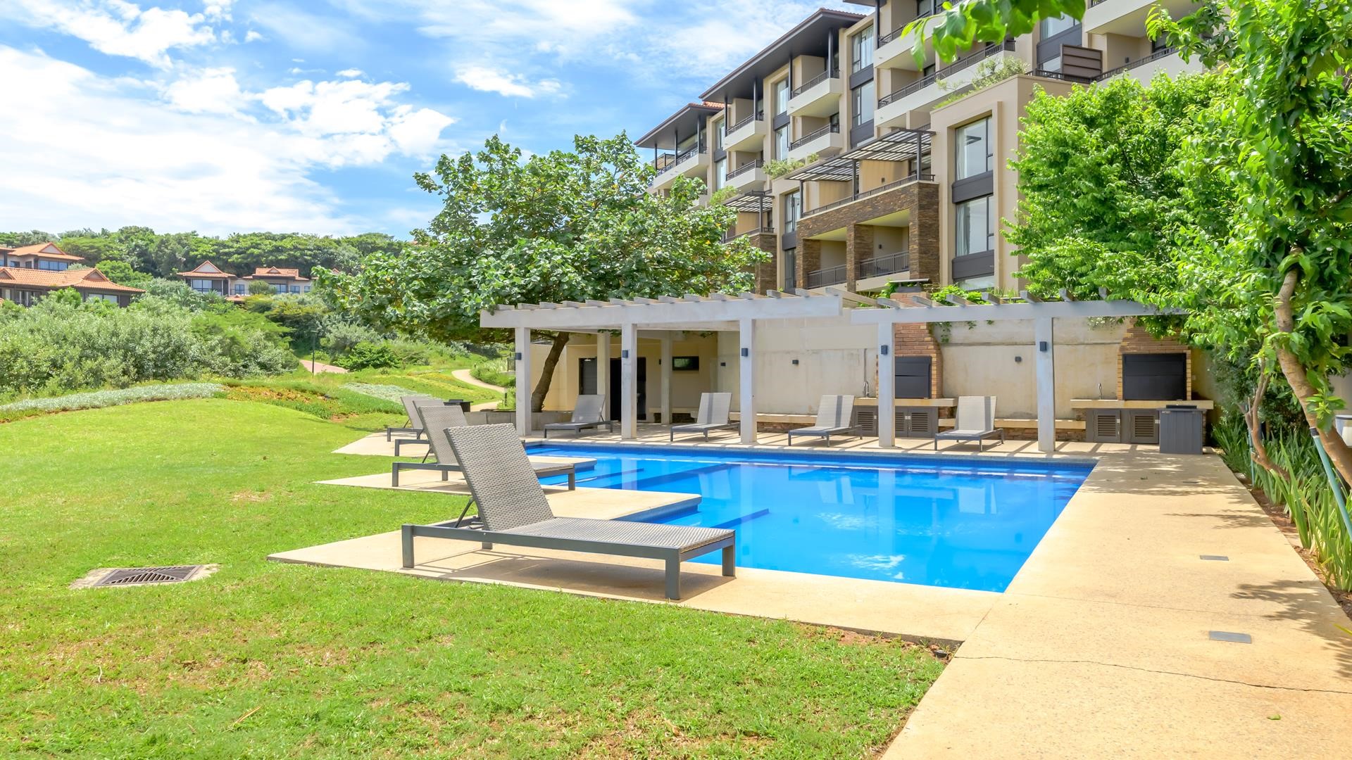 Both bedrooms are en suite, designed with modern finishes and attention to detail. Access to the suite is via secure key card entry, and ample parking is available for residents and guests. Residents enjoy easy walking distance to the private Zimbali Suites pool, with full access to the estate’s world-class amenities including the Zimbali Hotel pools, restaurants, spa, and more.