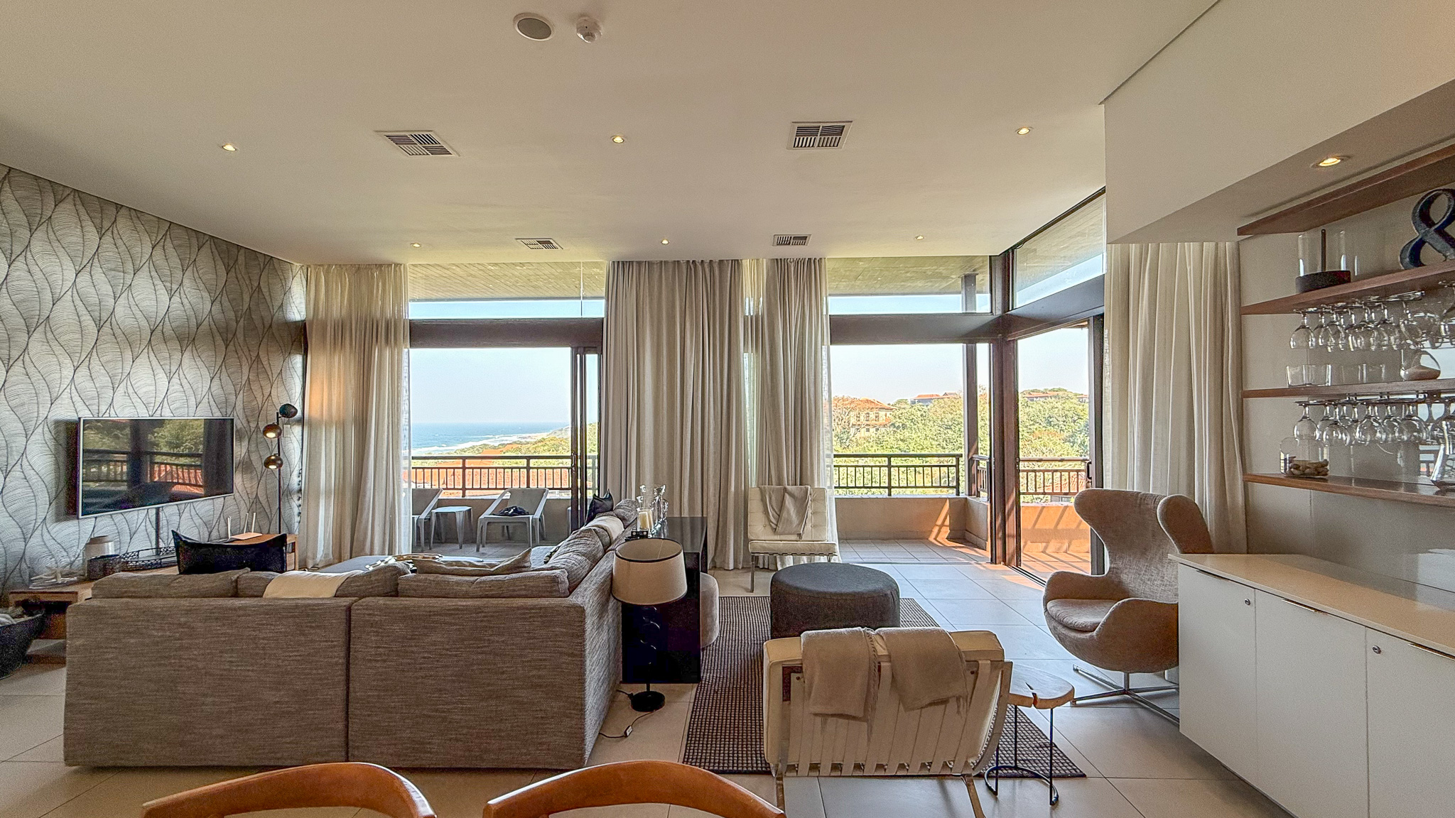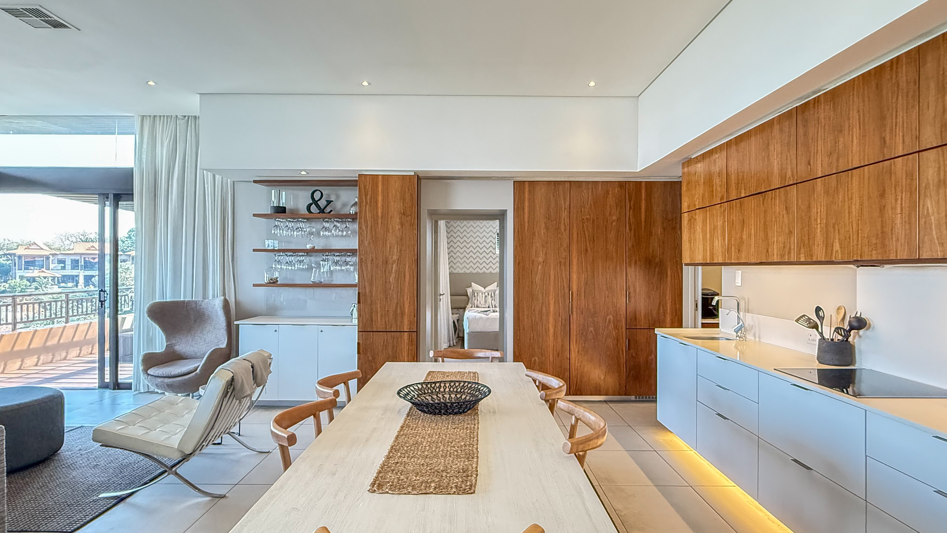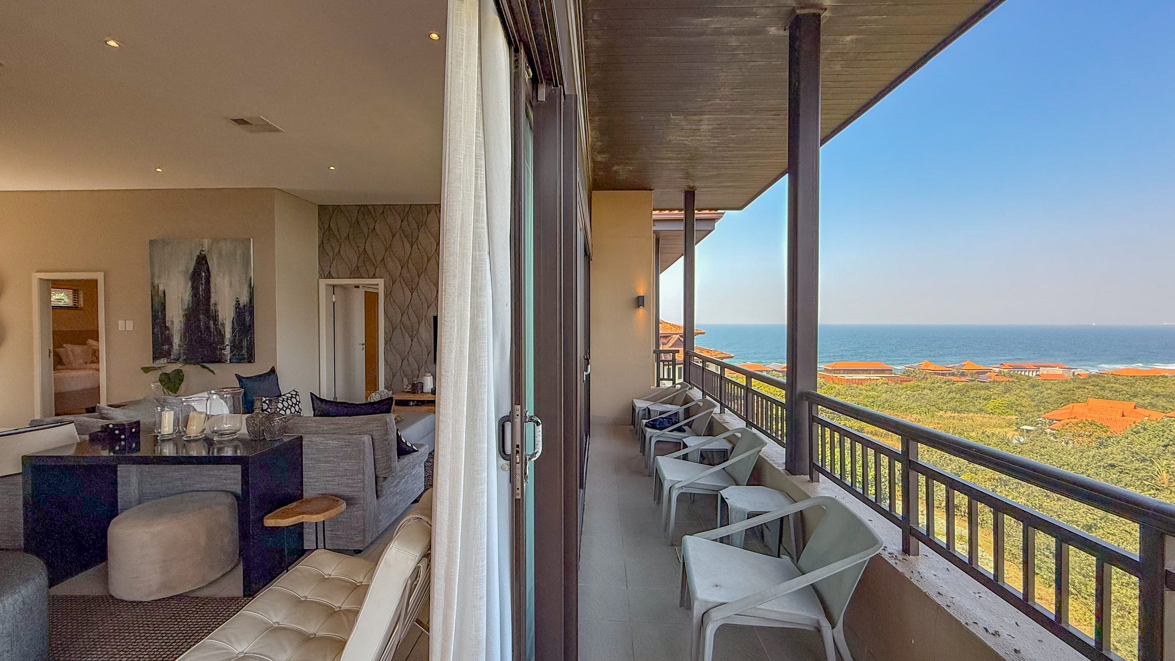 Located within the world-renowned Zimbali Coastal Resort, this expansive top-floor residence boasts sleek modern finishes, spacious open-plan living areas, and floor-to-ceiling glass doors that seamlessly connect indoor elegance with outdoor tranquility.