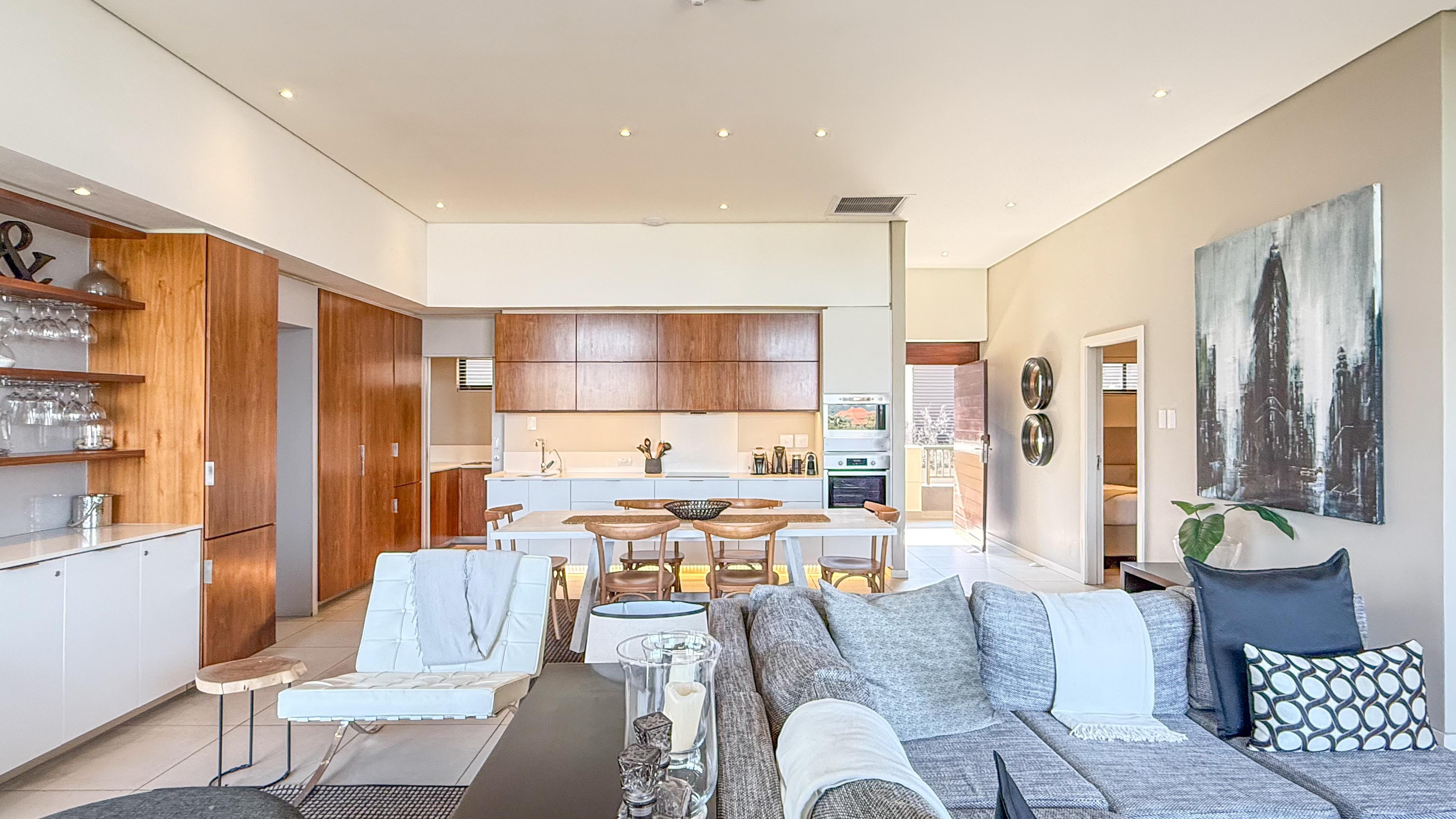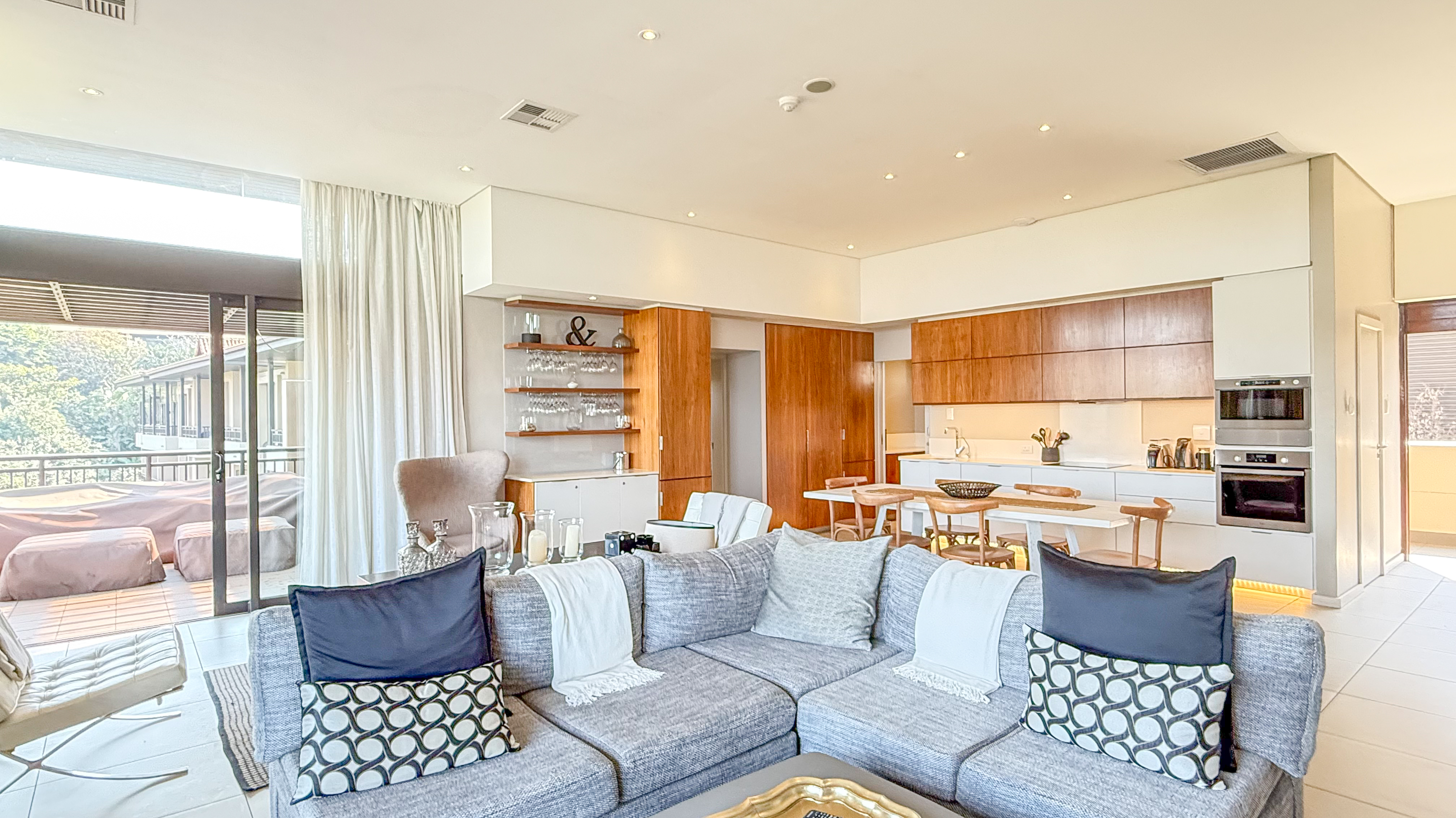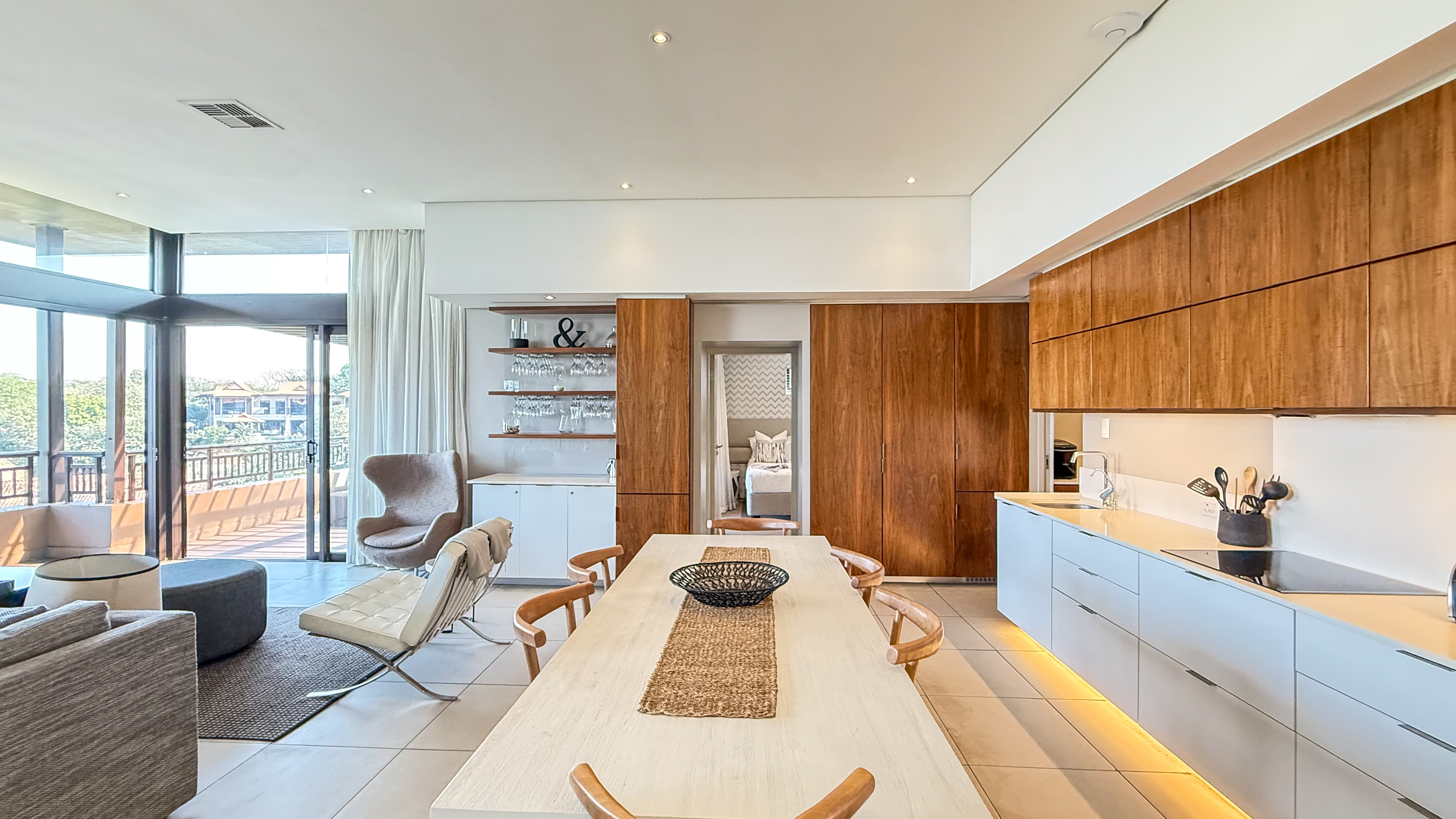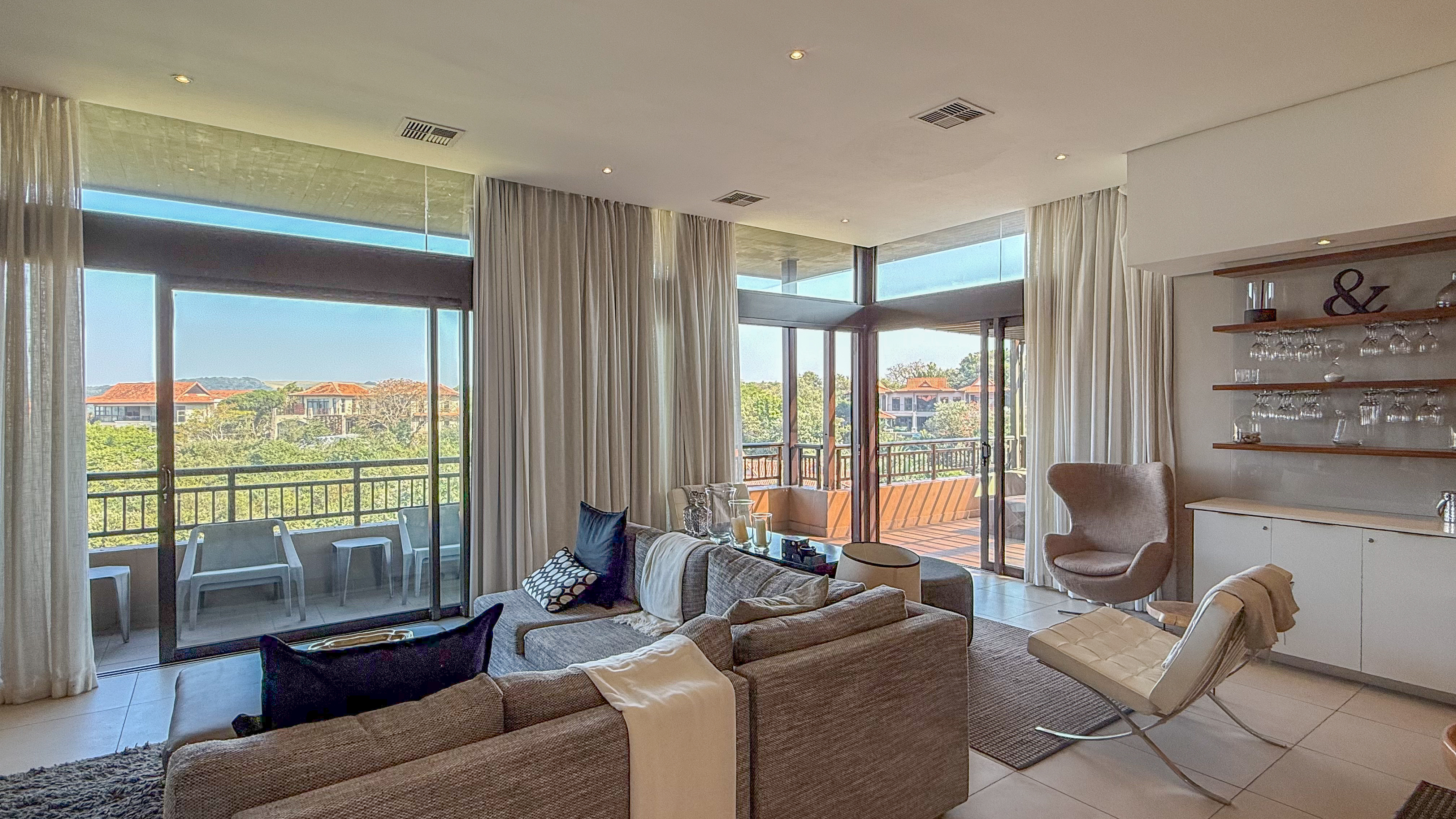 Located within the world-renowned Zimbali Coastal Resort, this expansive top-floor residence boasts sleek modern finishes, spacious open-plan living areas, and floor-to-ceiling glass doors that seamlessly connect indoor elegance with outdoor tranquility.