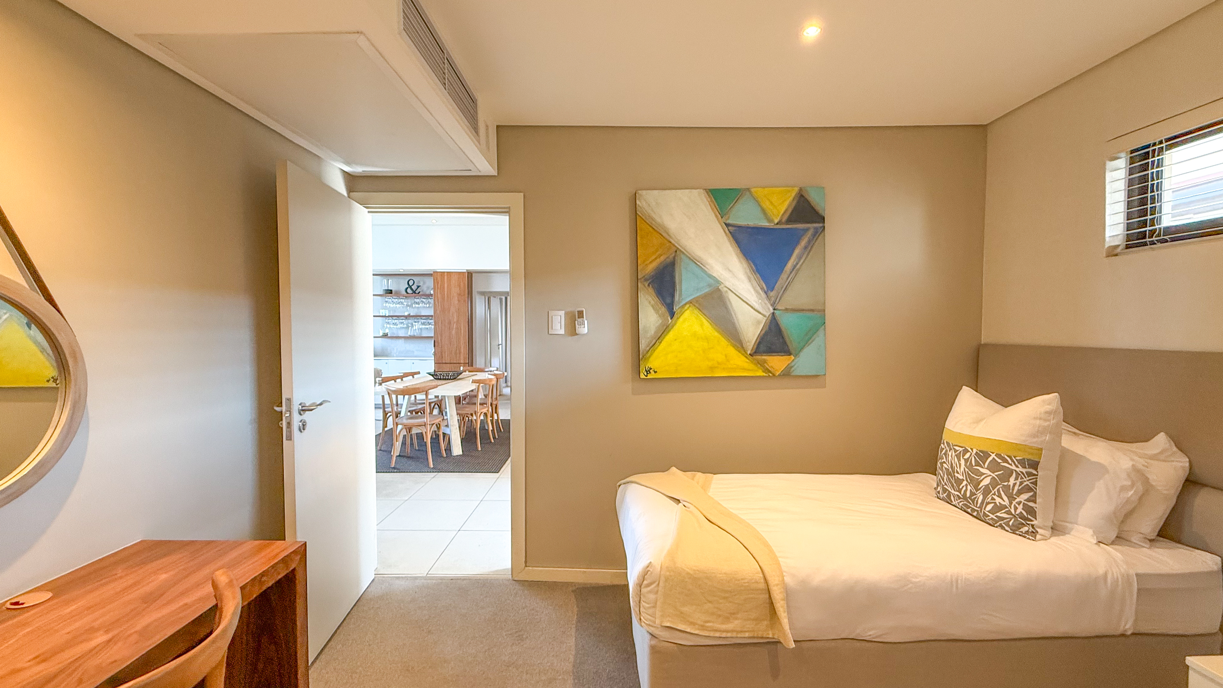 Enjoy sunrise breakfasts or sunset cocktails from your large private balcony, overlooking lush coastal greenery and the shimmering Indian Ocean.