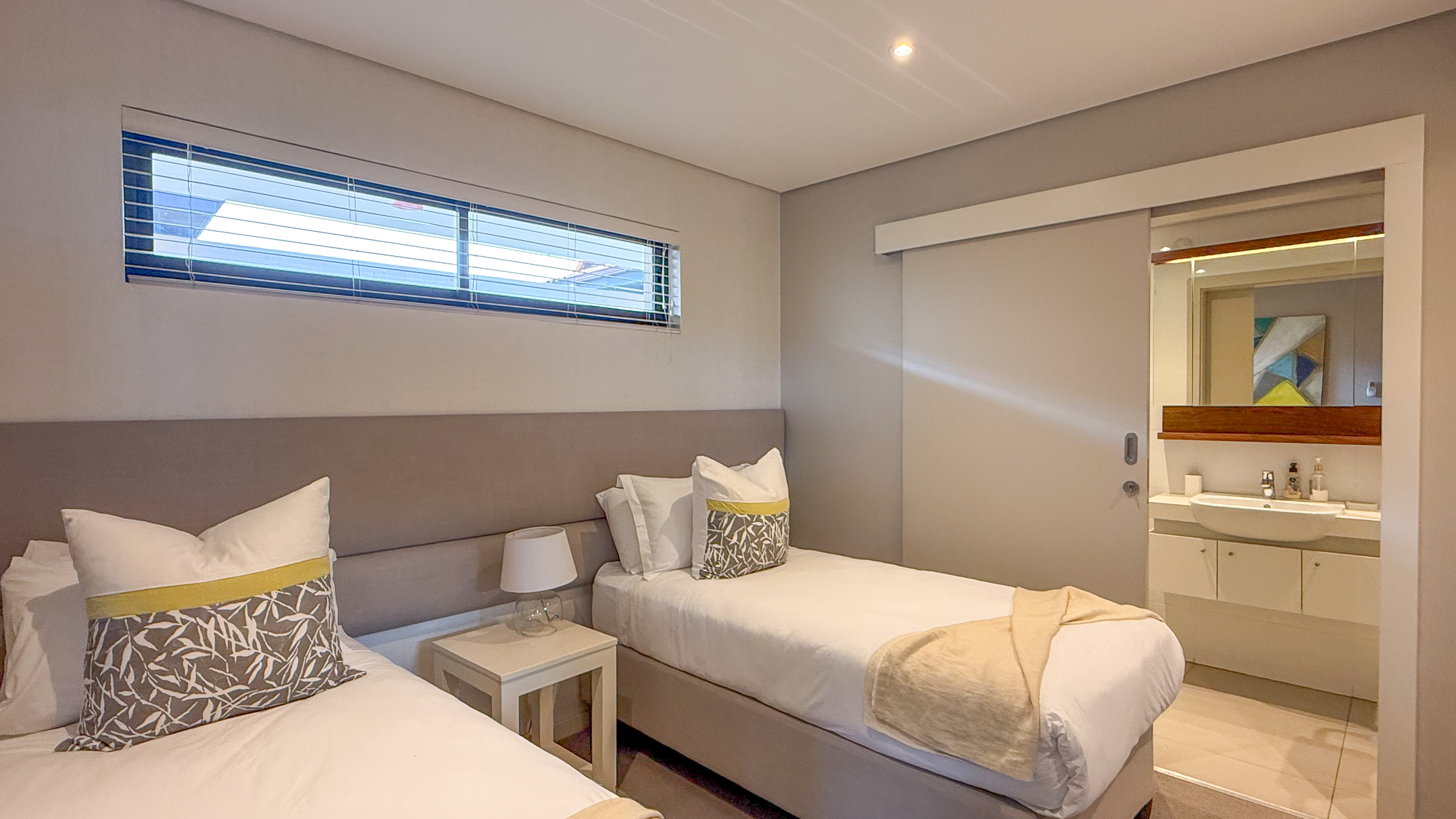 Each of the three generously sized bedrooms features its own en-suite bathroom, while the additional guest bathroom adds extra convenience for entertaining. The master suite is a private retreat, offering breathtaking ocean vistas and a spa-like bathroom experience.