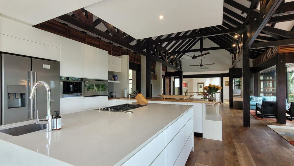 The heart of the home is a chef's dream kitchen, equipped with state-of-the-art appliances and adorned with exquisite finishes. The open-plan living and dining areas flow seamlessly, providing a perfect space for entertaining guests or enjoying quiet family moments. Step outside onto the expansive deck, where the beauty of Zimbali's natural surroundings unfolds before you. Whether you're sipping your morning coffee or hosting a soire ́e under the stars, this outdoor space is destined to be a favorite retreat.