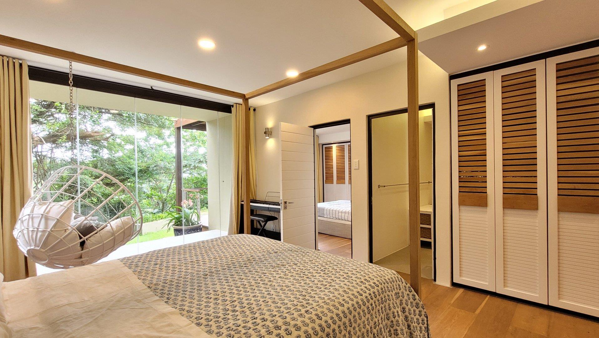 The main house, a masterpiece of architectural design, boasts five generously appointed en suite bedrooms. As you step into this residence, you are greeted by an ambiance that effortlessly blends sophistication with the serenity of a treehouse. Expansive windows throughout the house create a seamless connection with the surrounding trees, allowing nature to become an integral part of your daily living experience. Every room is a sanctuary, offering a private haven for relaxation and rejuvenation.