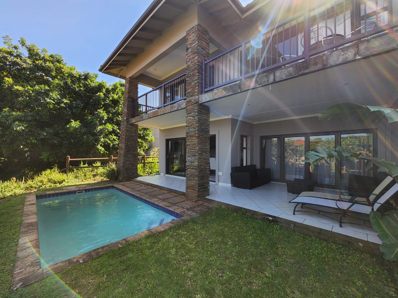 Chop chop lets take you through so you can view this 3 bedroom and 3 bathroom home in Zimbali. The home has a private garden plus a swimming pool. The open floor plan allows for easy living.