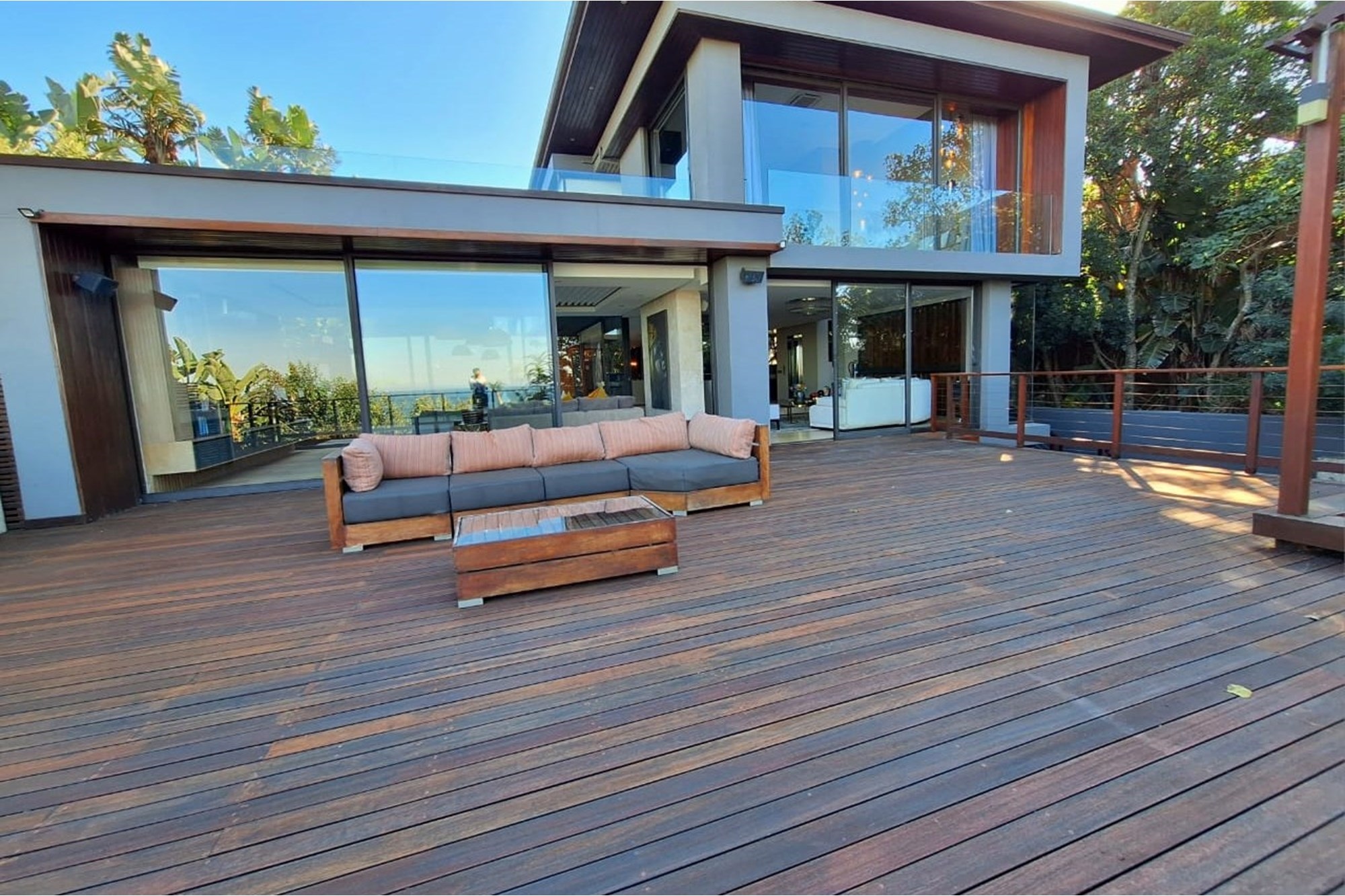 This luxury 5-bedroom home is perfectly positioned in the exclusive Zimbali Estate, offering incredible sea views and a peaceful forest backdrop. Elevated and private, the home combines modern design with natural beauty to create a serene, stylish space ideal for family living or entertaining.