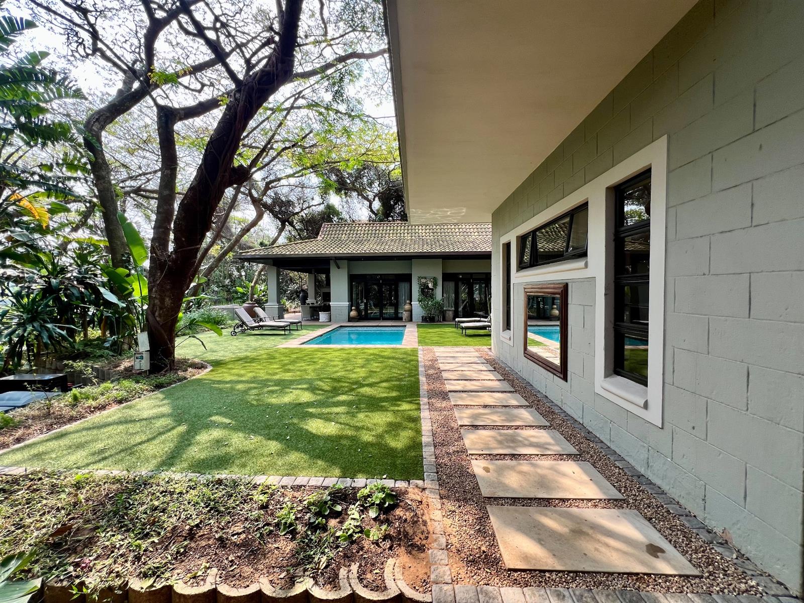 An Elegant Retreat in Zimbali Coastal Resort, this exquisite 4-bedroom, 4.5-bathroom residence embodies refined luxury, timeless elegance, and harmonious living with nature. Spanning 376m2 under roof on a generous 1,442m2 erf, the home enjoys an enviable position overlooking the tranquil fairways of the Zimbali Golf Course, a setting that exudes serenity and exclusivity.