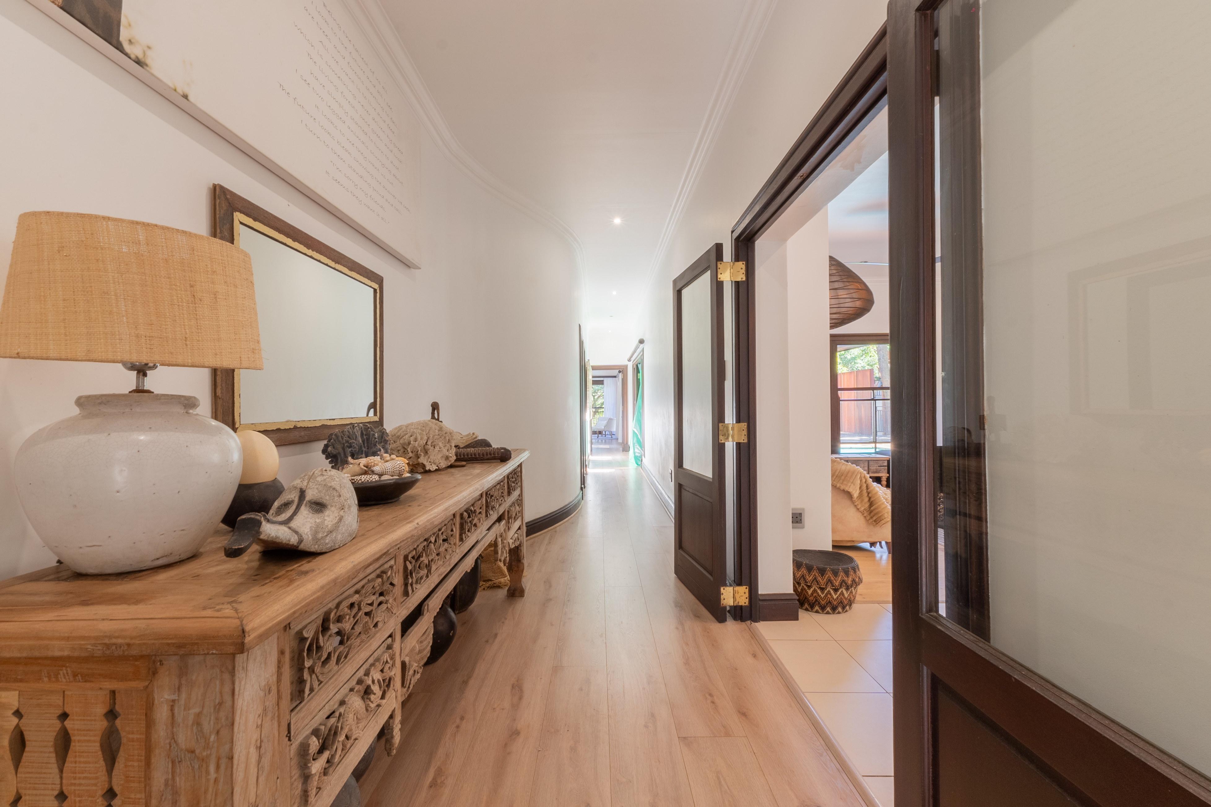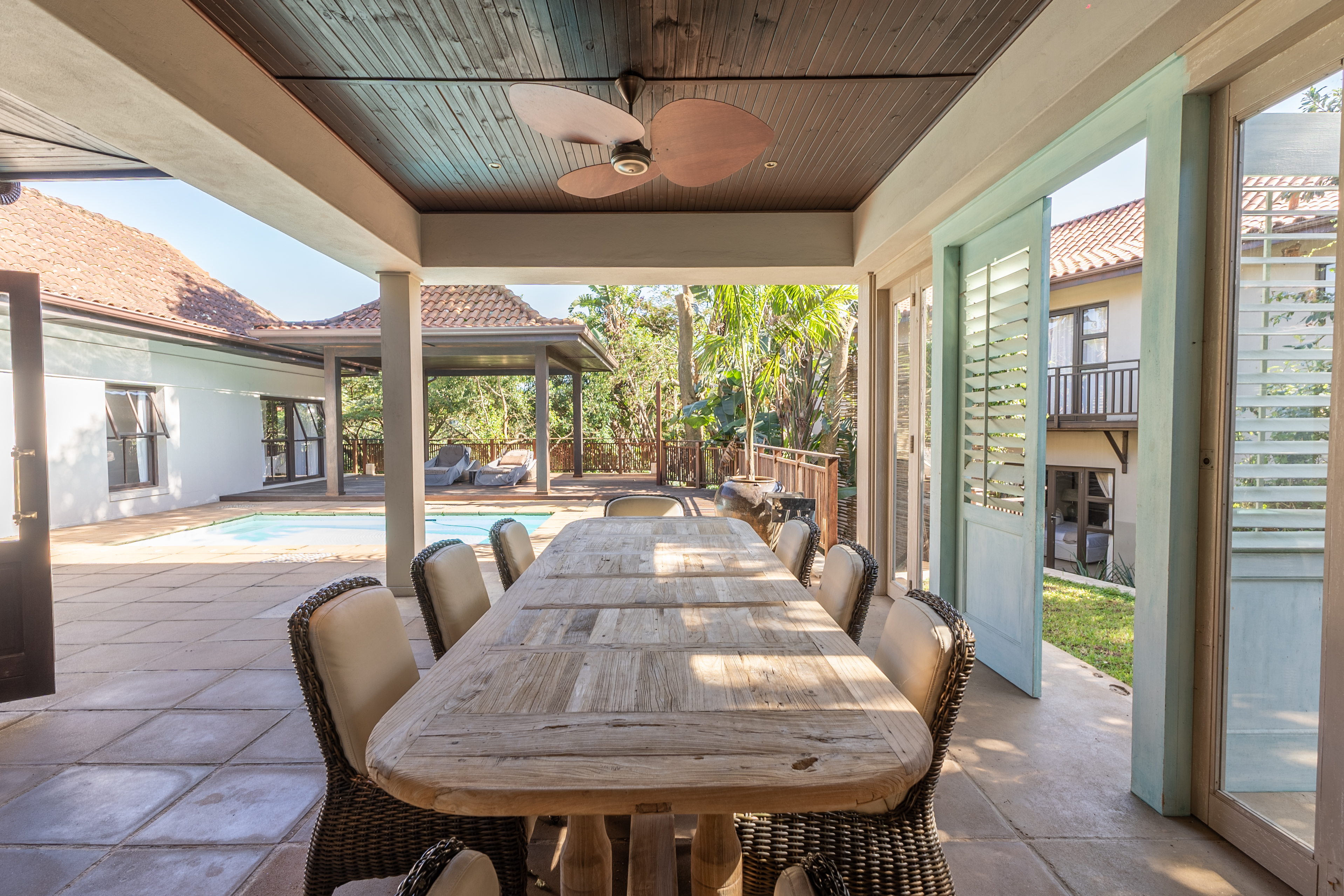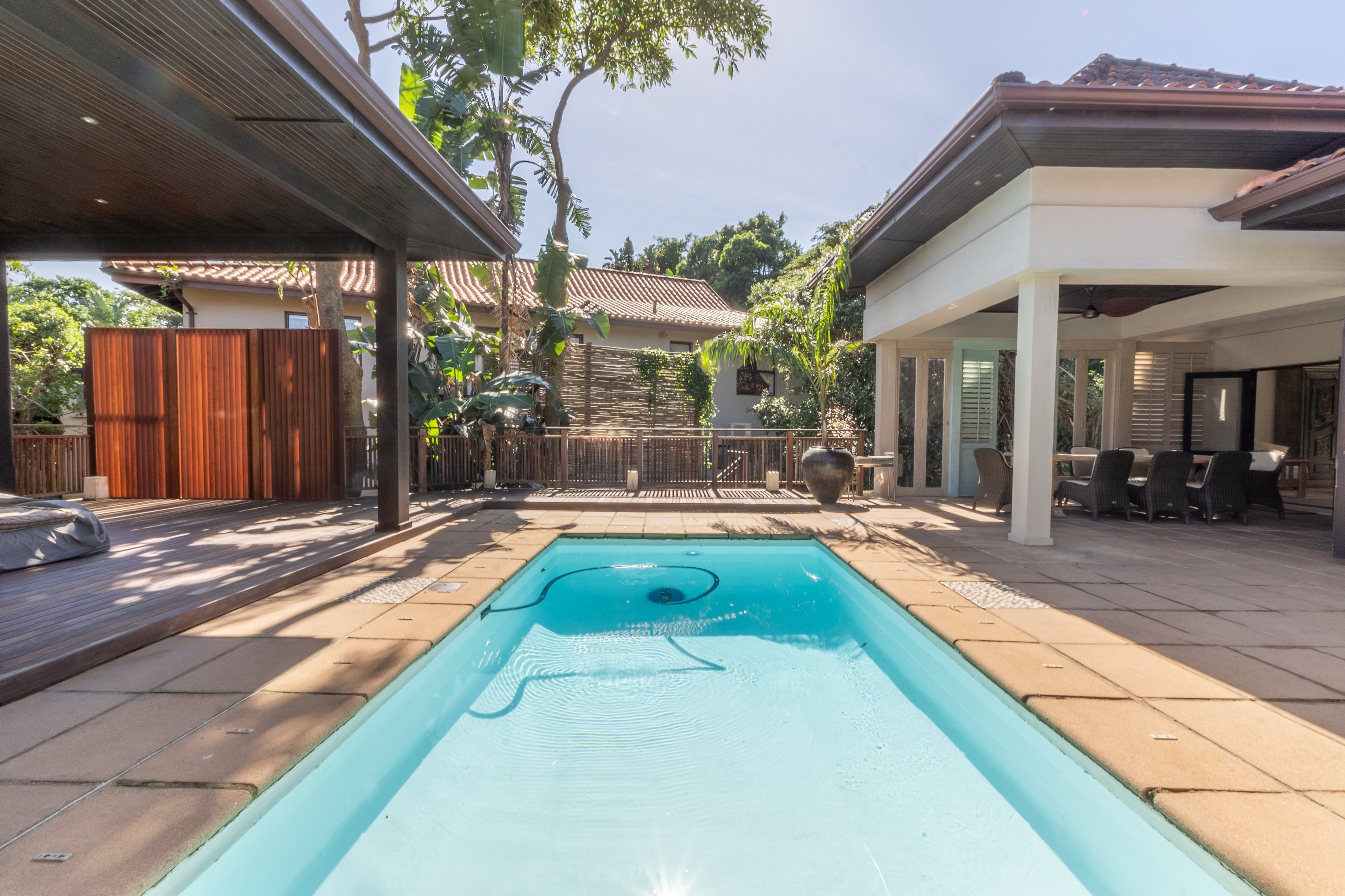 Experience the epitome of luxury living at Zimbali Coastal Resort's No. 1 Ironwood—a sanctuary where discerning individuals seek the pinnacle of quality design, finishes, and lifestyle. Step into tranquility as you traverse the internal courtyard adorned with a soothing water feature, offering a serene outdoor retreat bathed in natural light. Seamlessly blending with the lush garden, the residence creates a harmonious fusion of indoor-outdoor living, where the spaciousness of the living area extends effortlessly into the alfresco dining and sun-kissed swimming pool areas. Find respite under the cool embrace of a shady gazebo, elevating backyard relaxation to new heights.