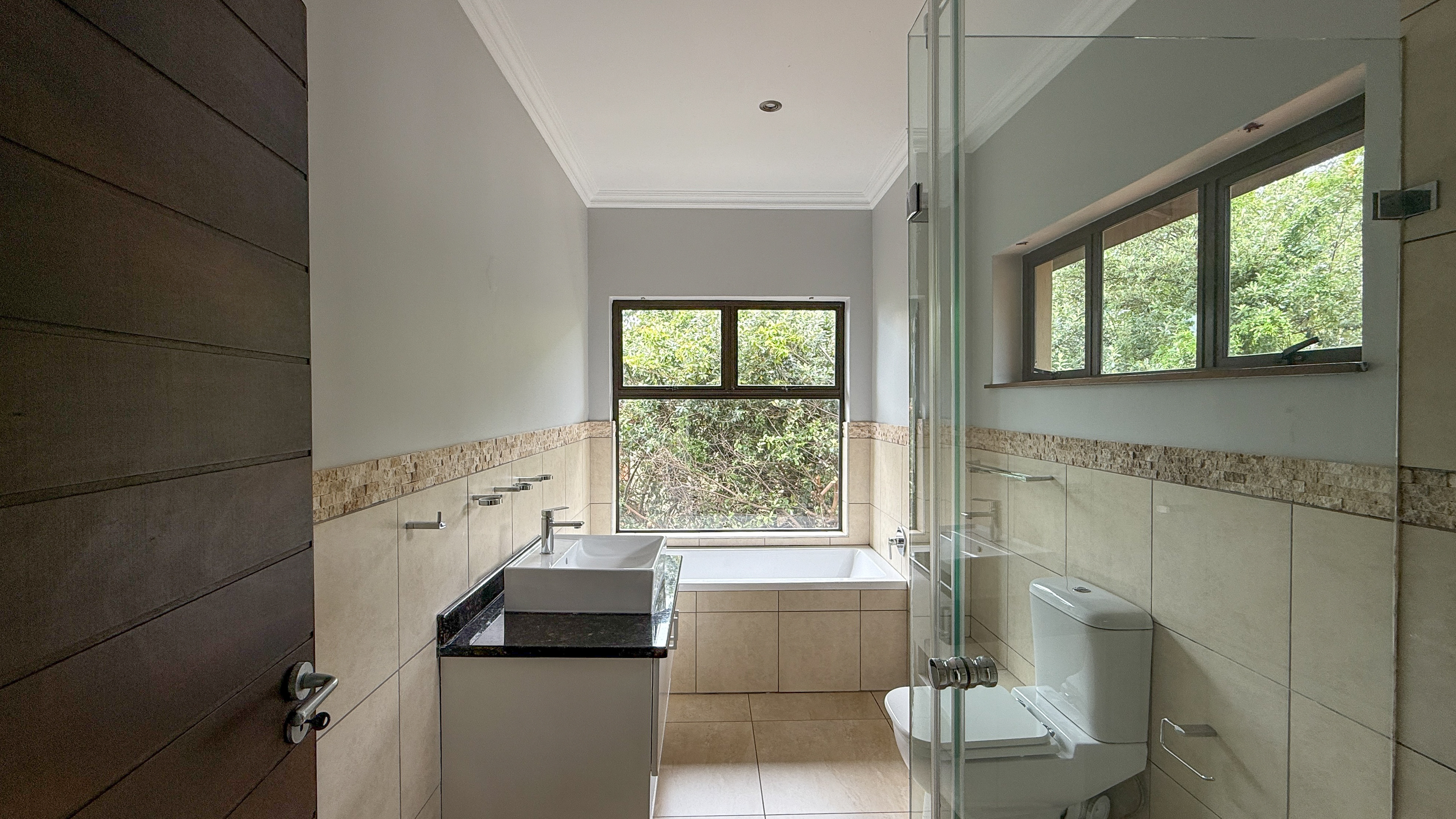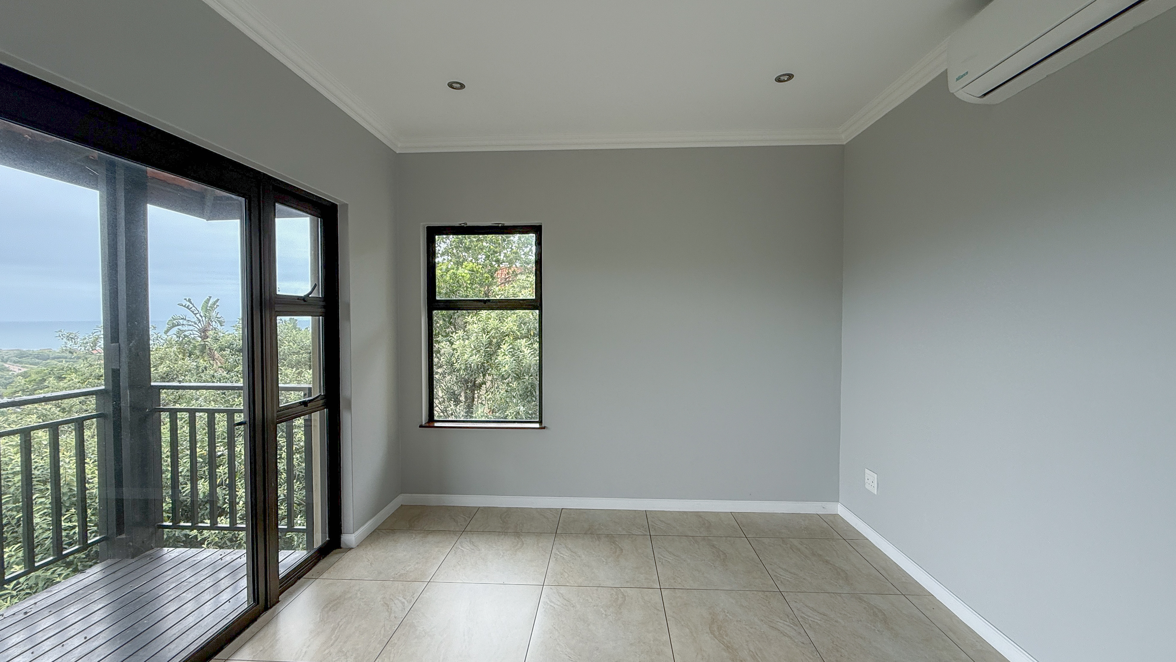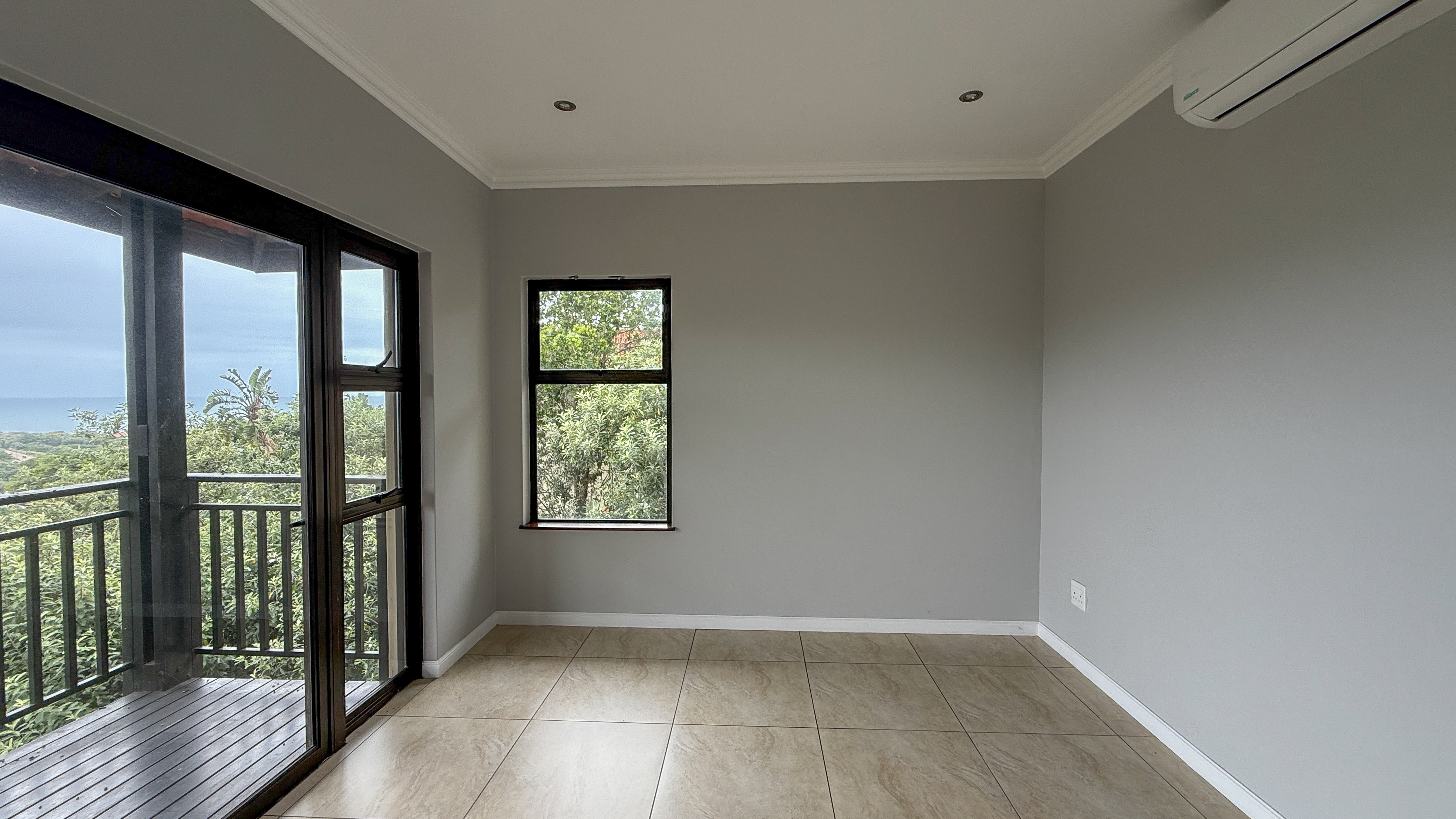Upstairs, the home features four generously sized bedrooms, all en suite and thoughtfully designed for privacy and comfort. Each bedroom opens onto a small balcony, where you can enjoy beautiful distant sea views and tranquil estate surrounds.