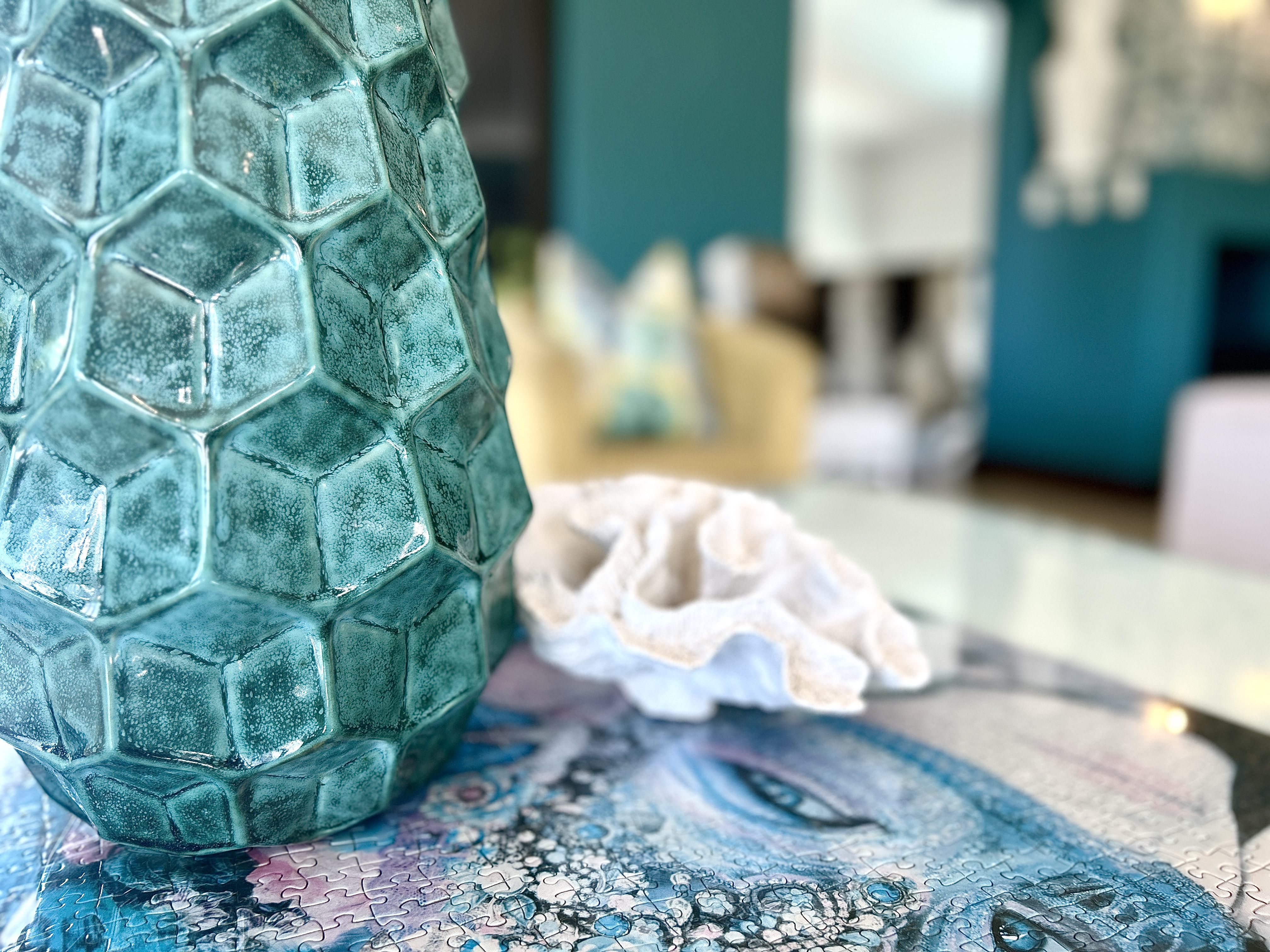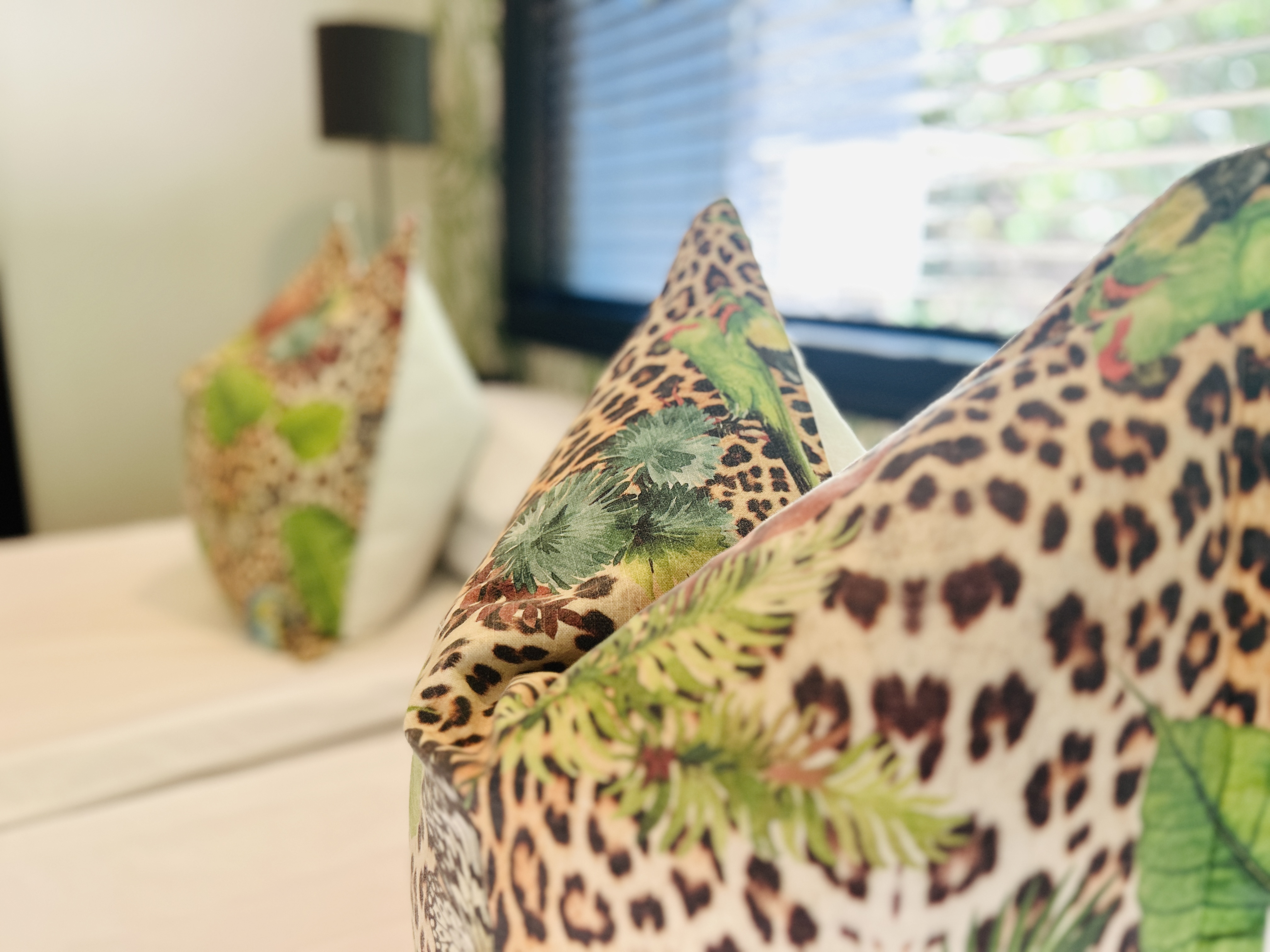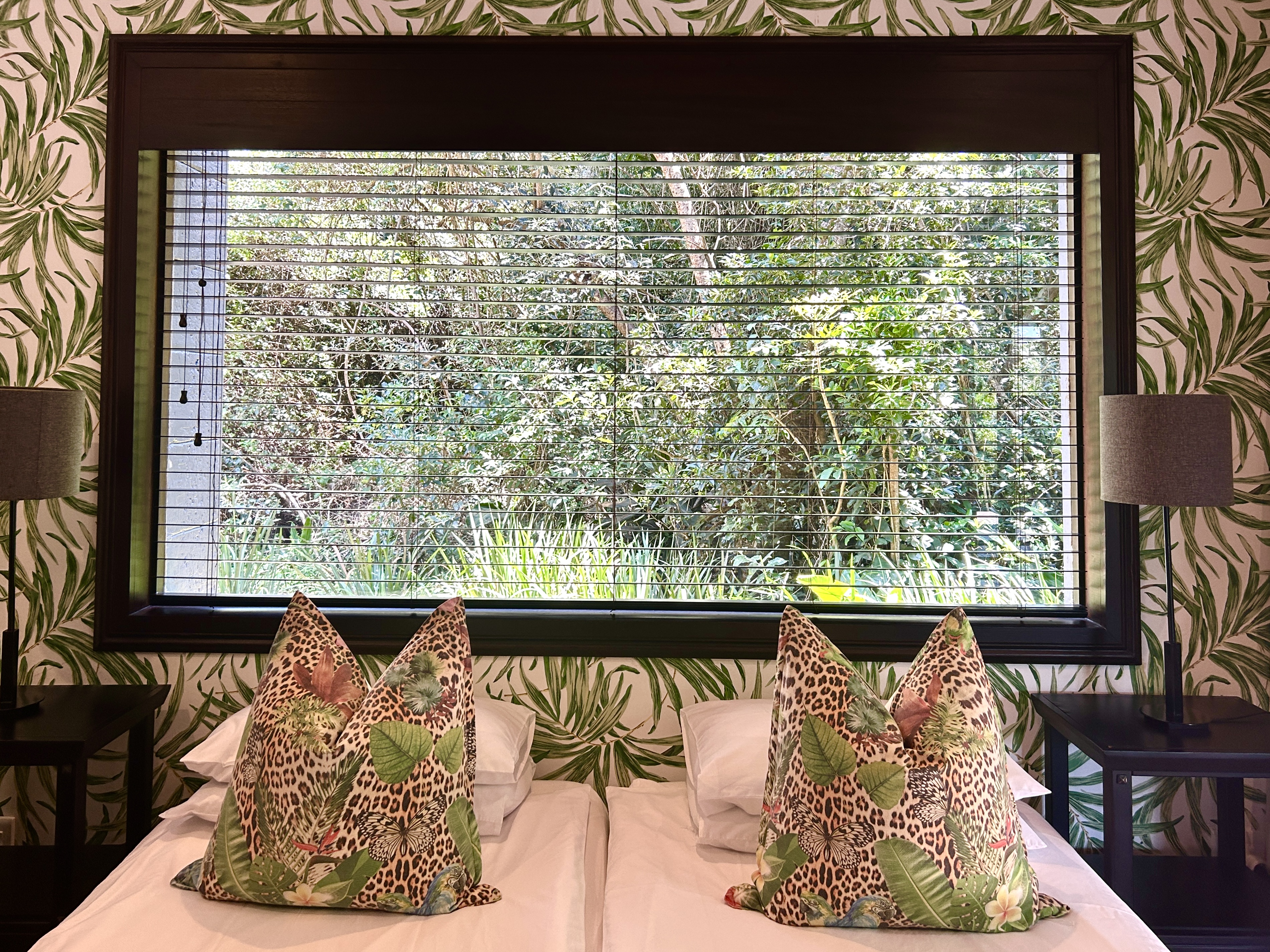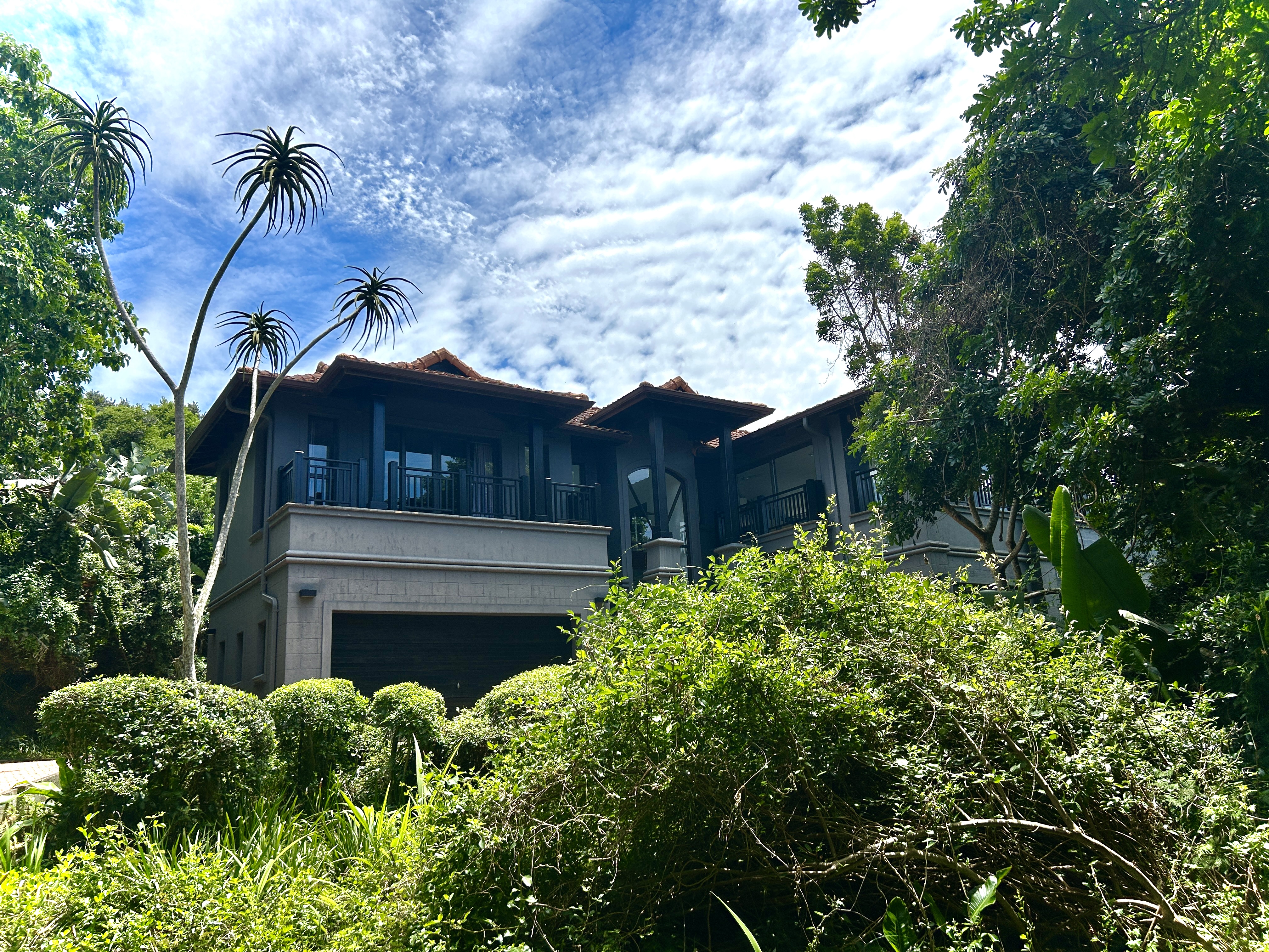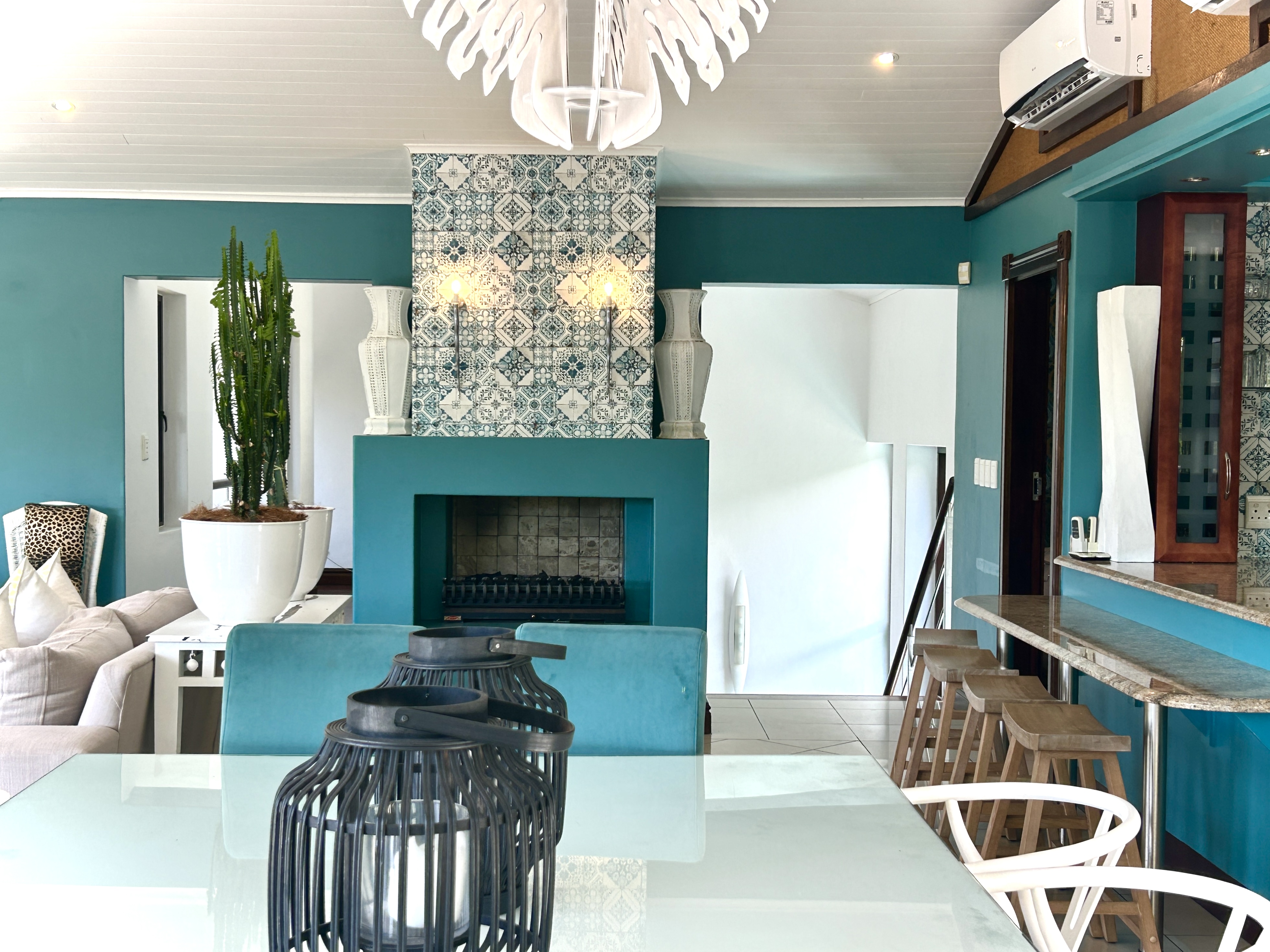 Stackable glass doors line the entire upstairs living area, generating a welcoming ocean cross-breeze which highlights the breathtaking views of Zimbali’s indigenous forest and Indian Ocean. A cosy beach-style fireplace adds comfort and ambiance, perfectly anchoring this living space.