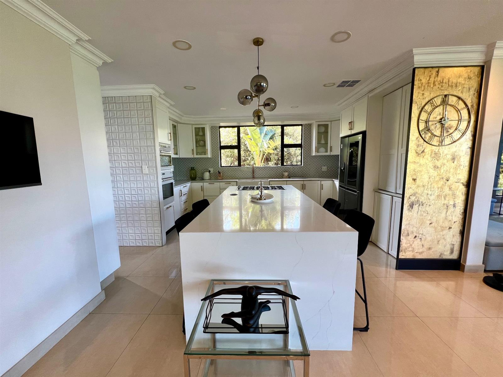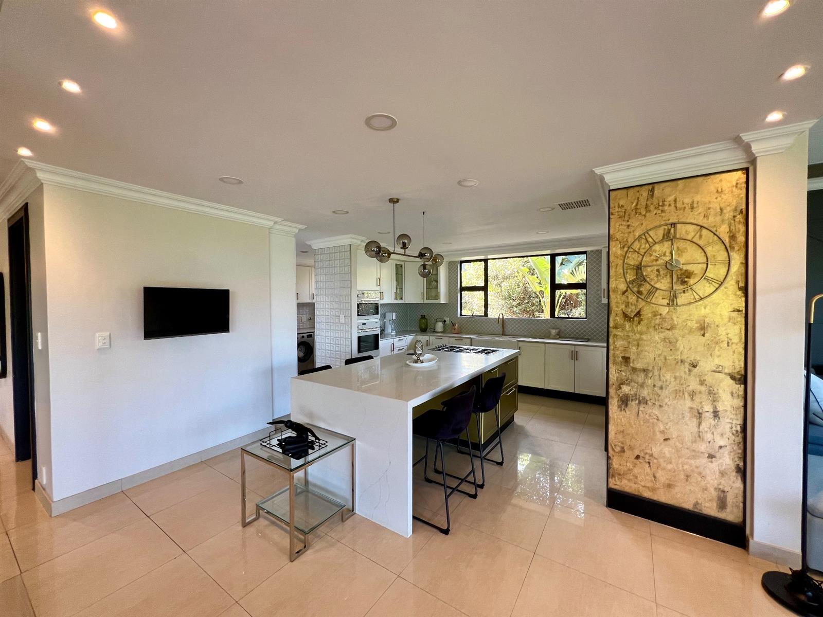 A gourmet chef’s kitchen with premium finishes, a separate scullery, and direct access to one of the double garages has been thoughtfully designed for convenience and functionality.