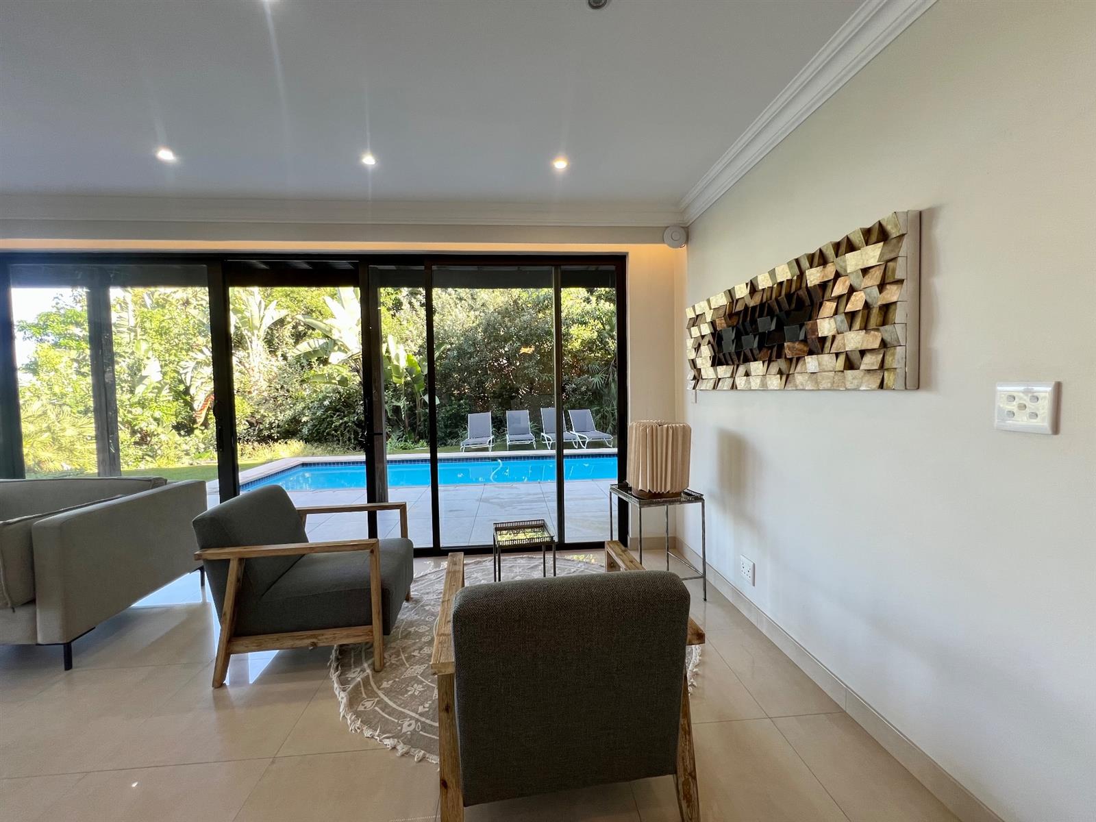 The lower ground level is dedicated to leisure and entertaining, featuring a pool deck, landscaped garden, and low-maintenance Astro-turf lawn. A purpose-designed Champagne Bar anchors this space, complemented by an adjacent lounge with seamless outdoor access. This level also includes a fourth guest suite with garden access and views.