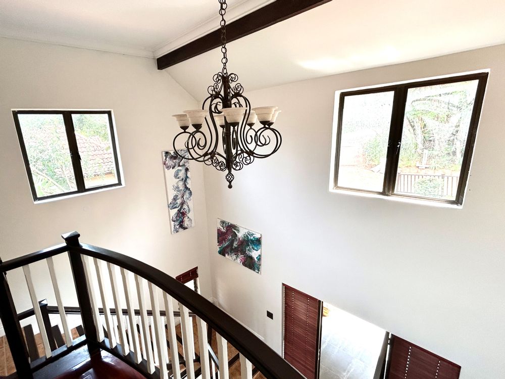 A beautiful guest bedroom with its respective bathroom can be found downstairs. A stylishly crafted staircase leads you upstairs to four additional bedrooms with their well appointed bathrooms. Three of the four upstairs bedrooms open up onto a private balcony overlooking the immaculately maintained golf course.