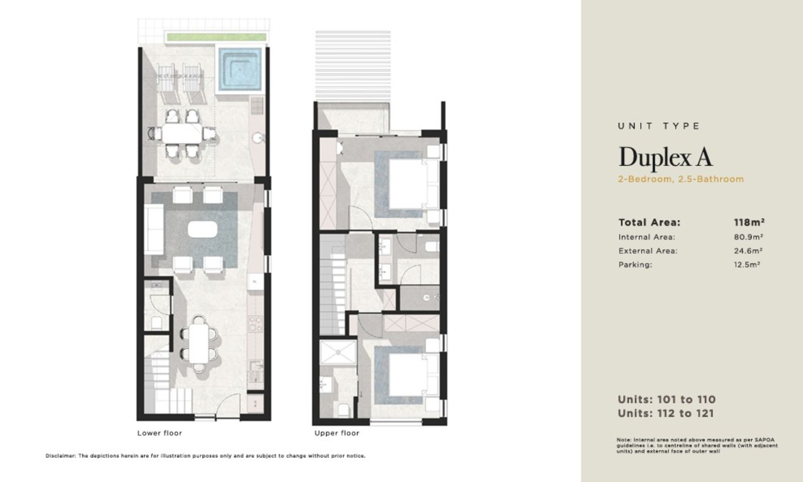 - 2-Bedroom Duplexes: Split-level living featuring generous terraces and elevated outlooks.