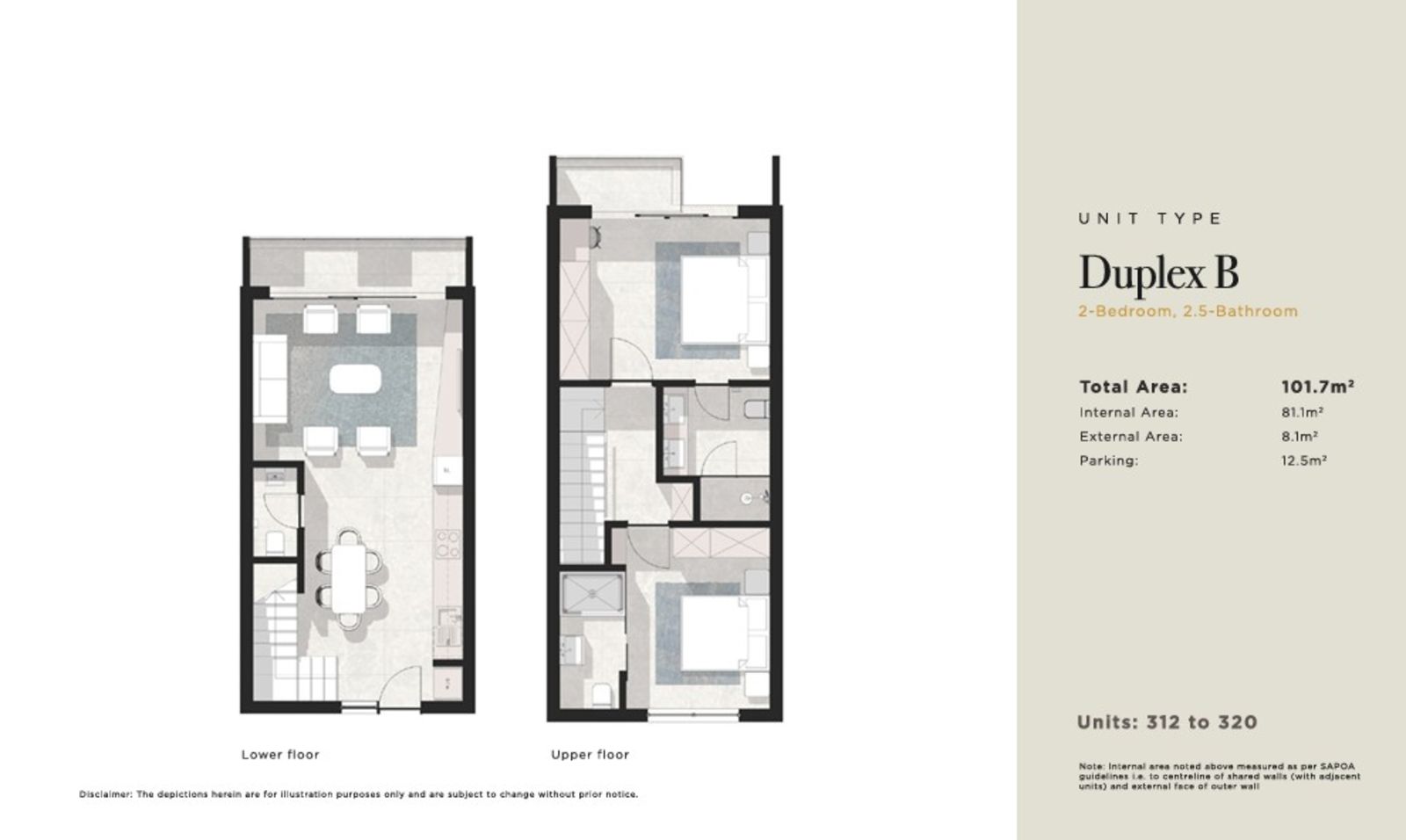 - 2-Bedroom Duplexes: Split-level living featuring generous terraces and elevated outlooks.