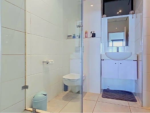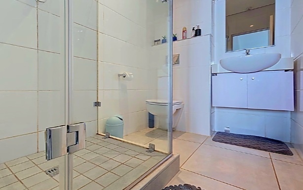 Sleek bathroom with walk-in shower