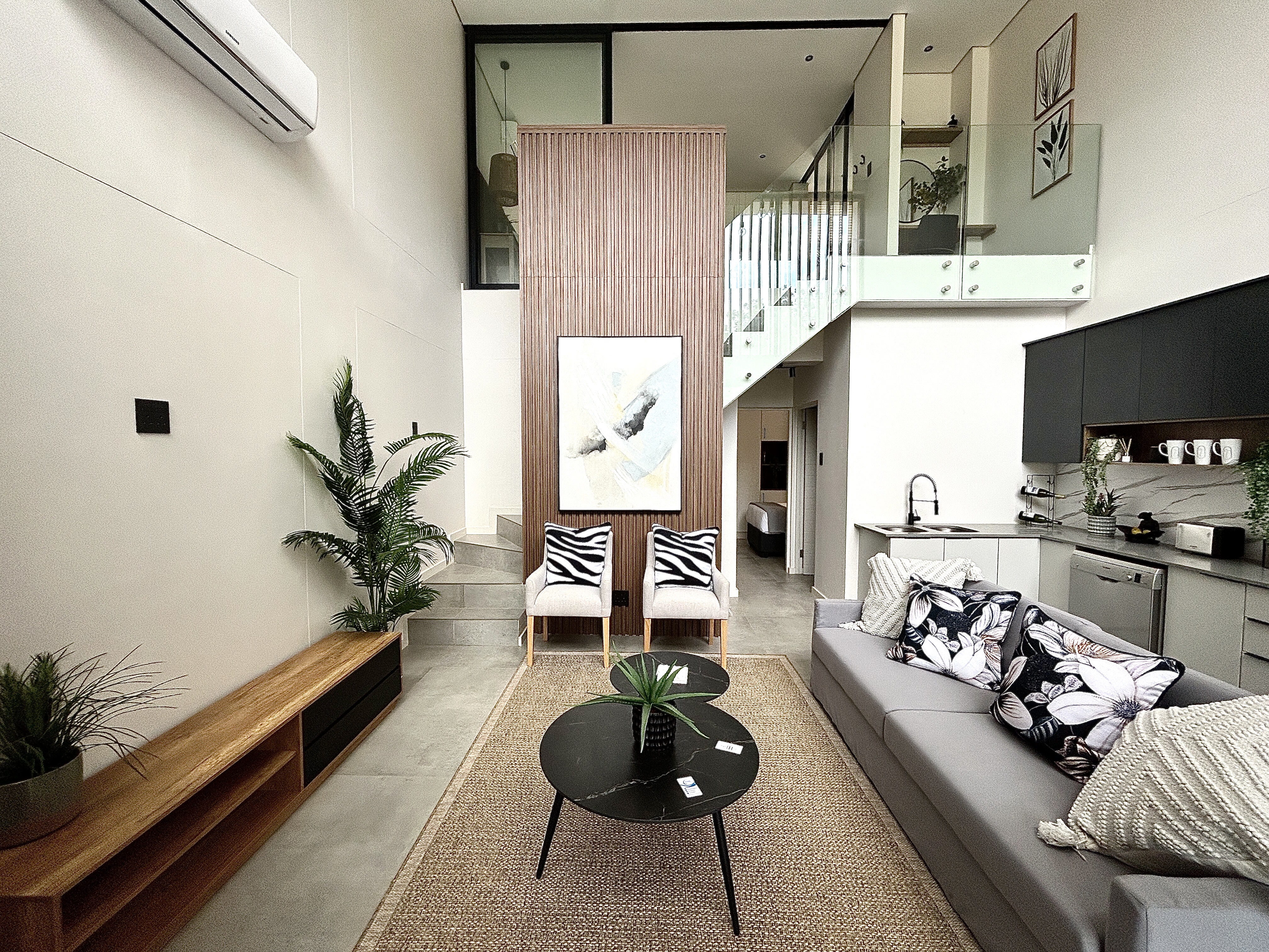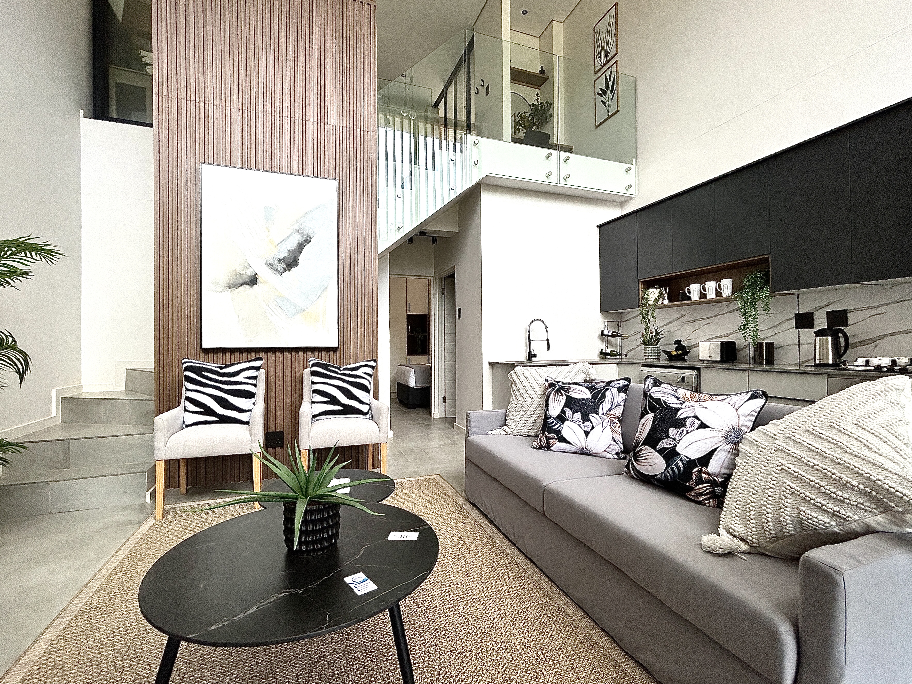 A New York styled luxury loft apartment nestled in the heart of the opulent Zimbali Lakes Resort. This 131-square-metre, multi-level apartment on the Boulevard Square Precinct, offers modern, secure and open-plan living with plenty of natural light.