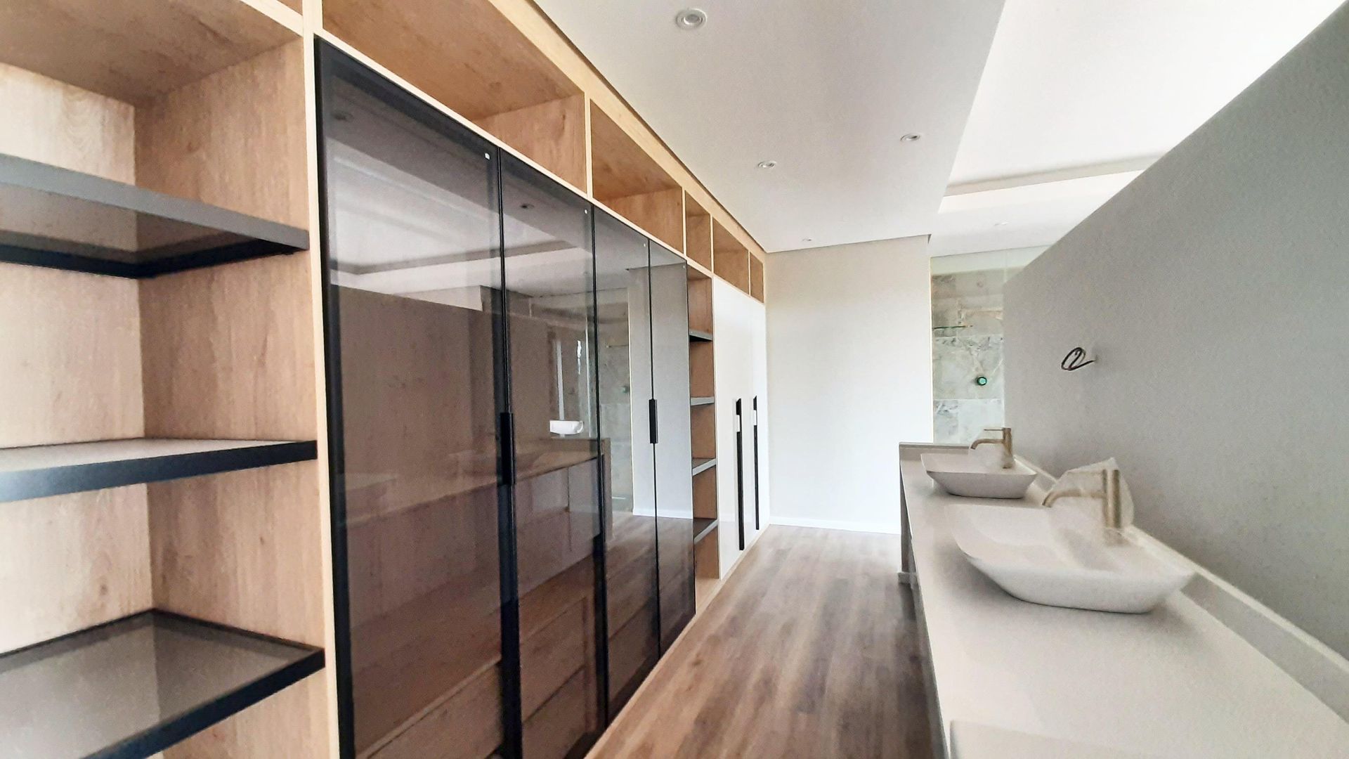 This exceptional residence boasts four meticulously designed bedrooms, three on the lower ground floor. Each bedroom with an en-suite bathroom exudes grandeur and has a private patio granting access to sweeping views of the fairways and lush surroundings. The upper-level guest suite is conveniently near the pool and entertainment area, ensuring optimal comfort and privacy for visiting guests.