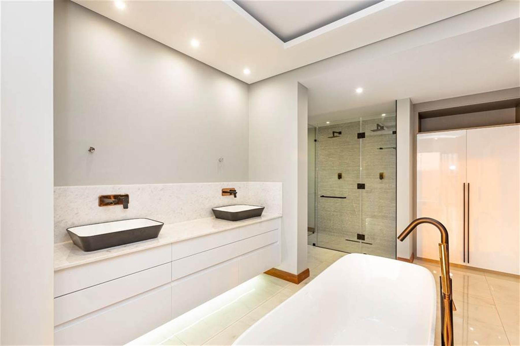 The lower level has been thoughtfully designed for effortless modern living and entertaining. Expansive open-plan living and dining areas flow seamlessly onto a covered outdoor entertainment space with a sparkling pool. A formal lounge and separate TV lounge provide additional comfort and versatility. The contemporary kitchen, finished to a high standard, connects to a spacious scullery, laundry area, and private courtyard. A fourth bedroom and bathroom are also conveniently located on this level.