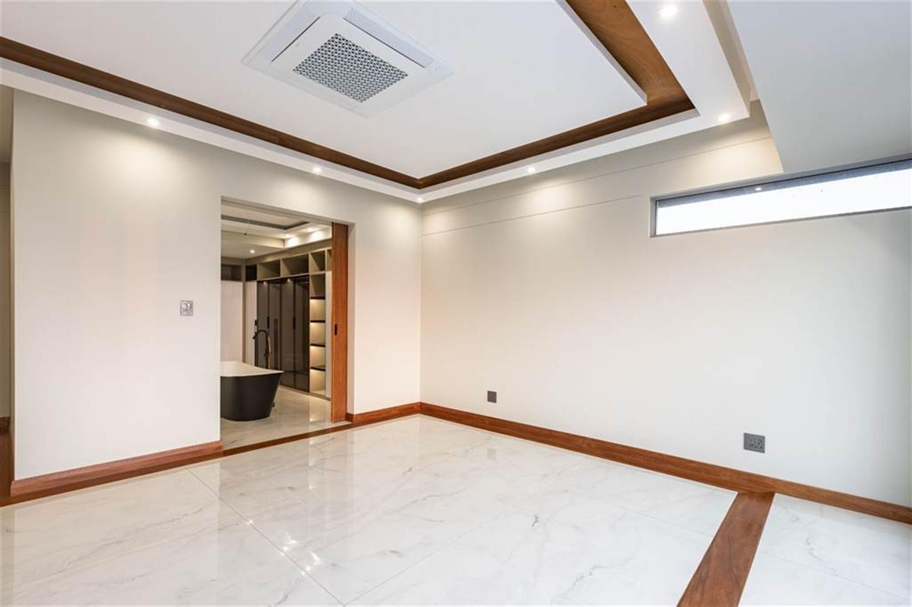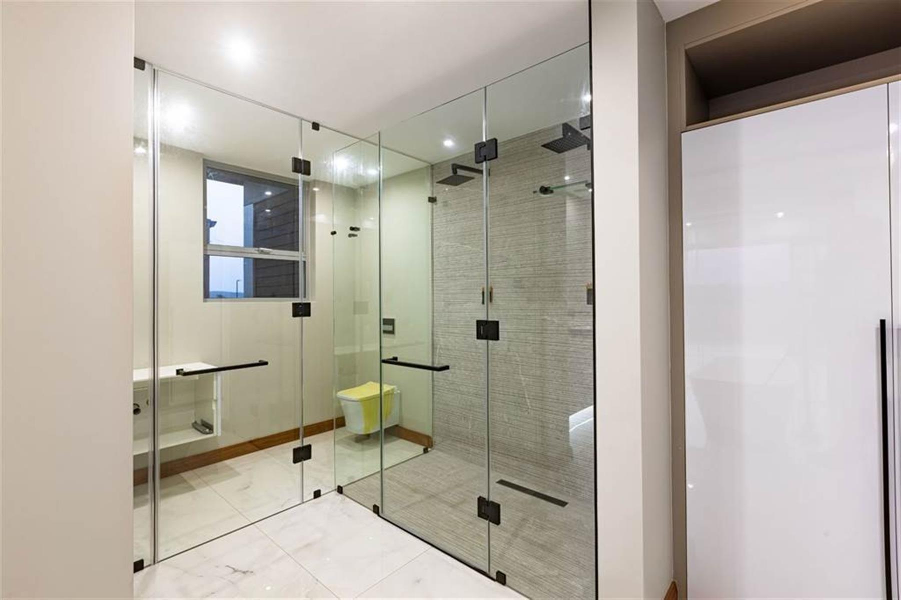 Upstairs, three generously proportioned bedrooms each feature their own en-suite bathrooms. The luxurious main suite is a private sanctuary, complete with a walk-in dressing room and a beautifully appointed full bathroom. Two of the bedrooms open onto their own terrace with sleek frameless glass balustrades, perfectly positioned to capture the magnificent outlook and tranquil surroundings.