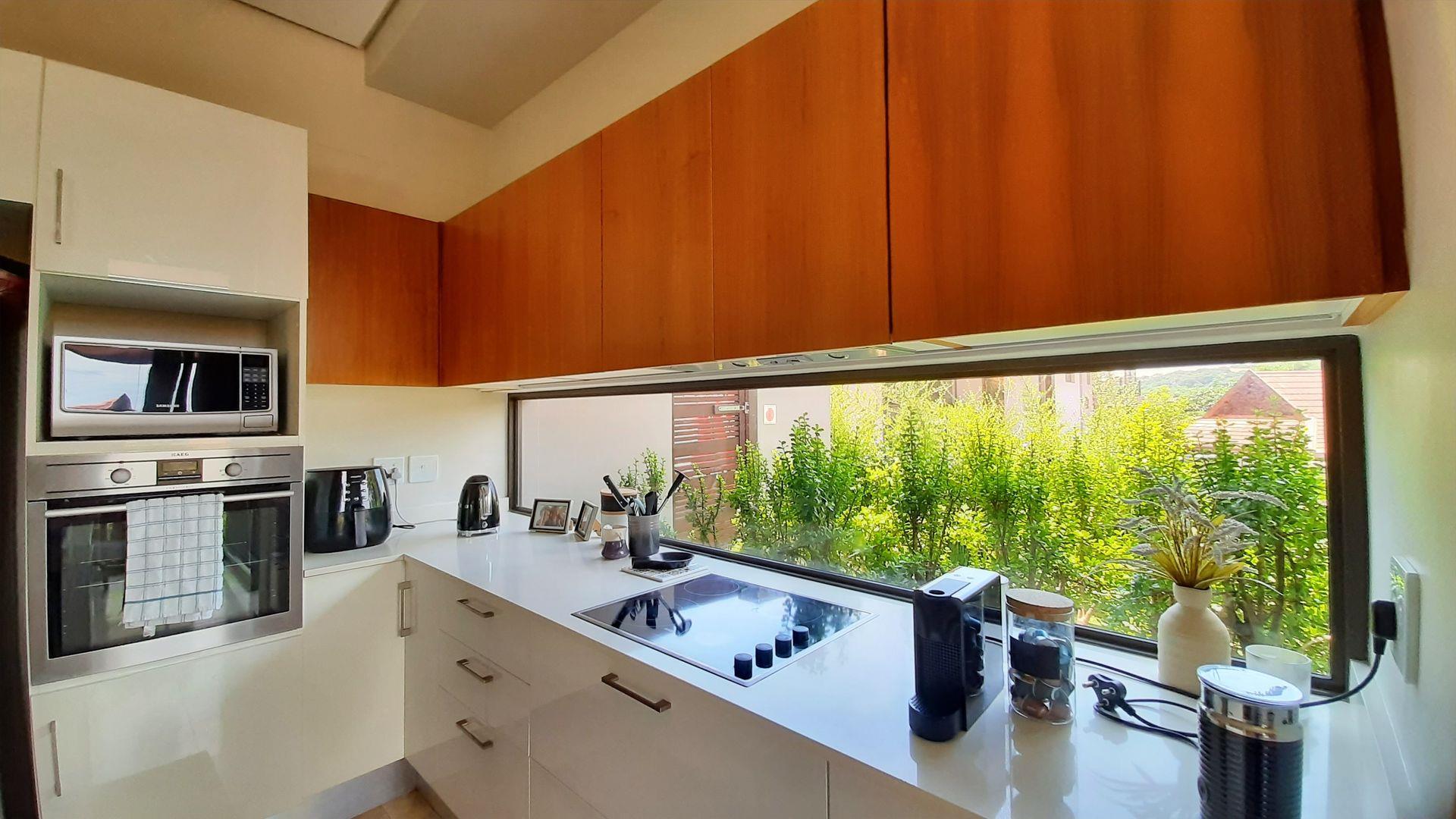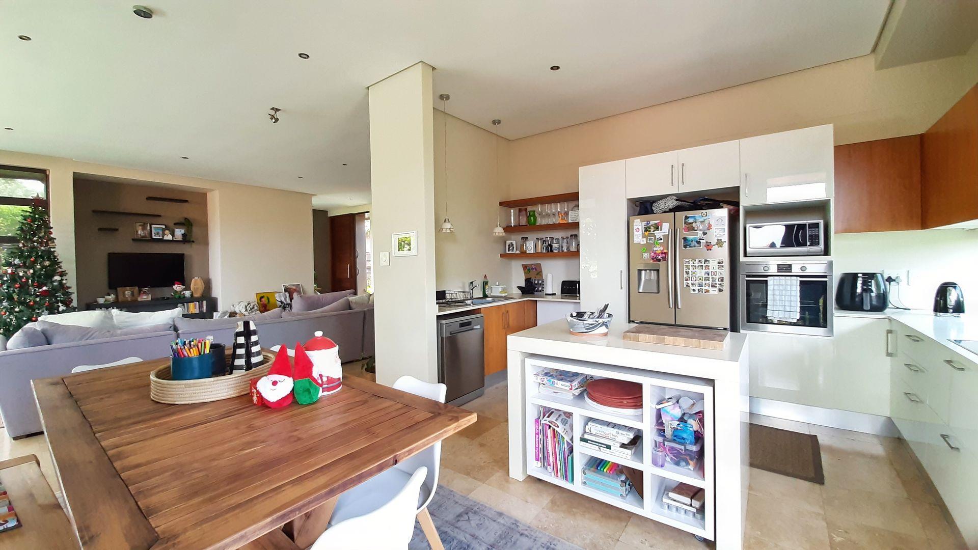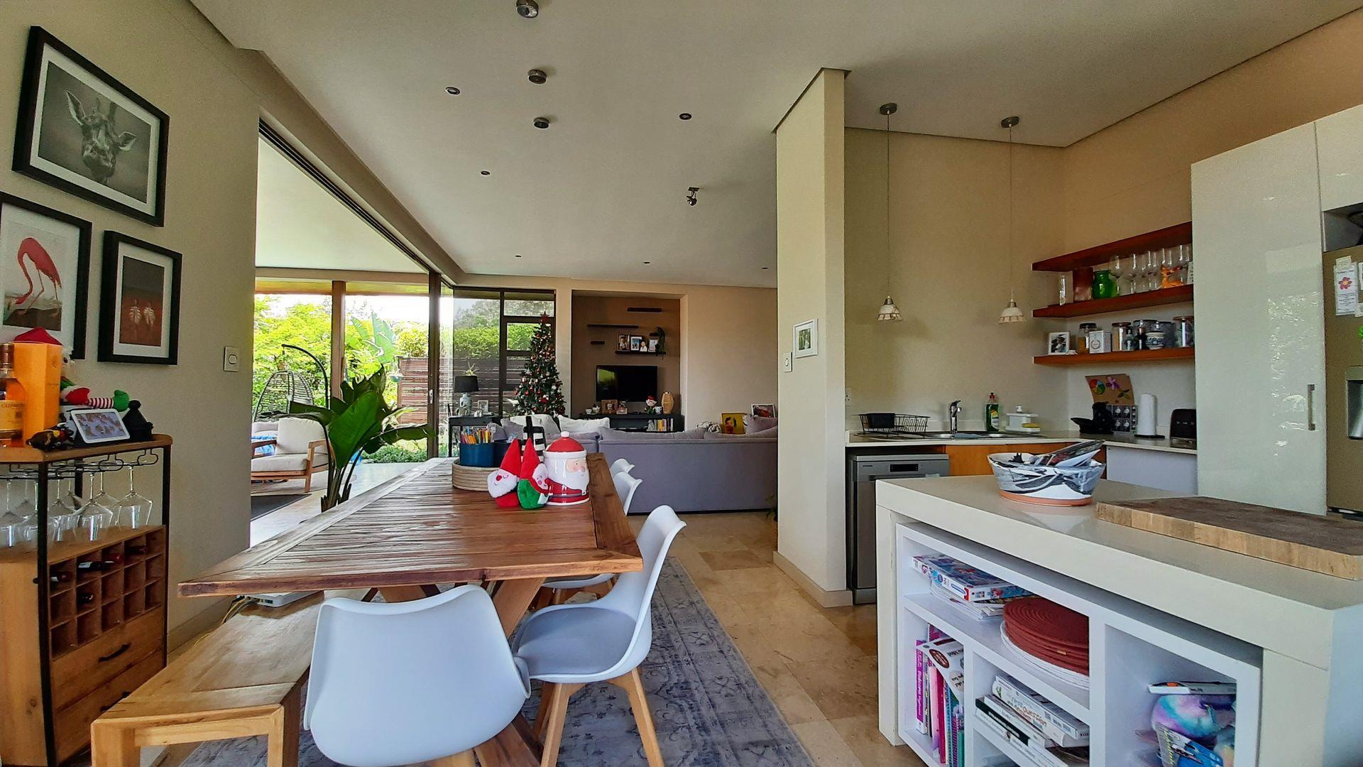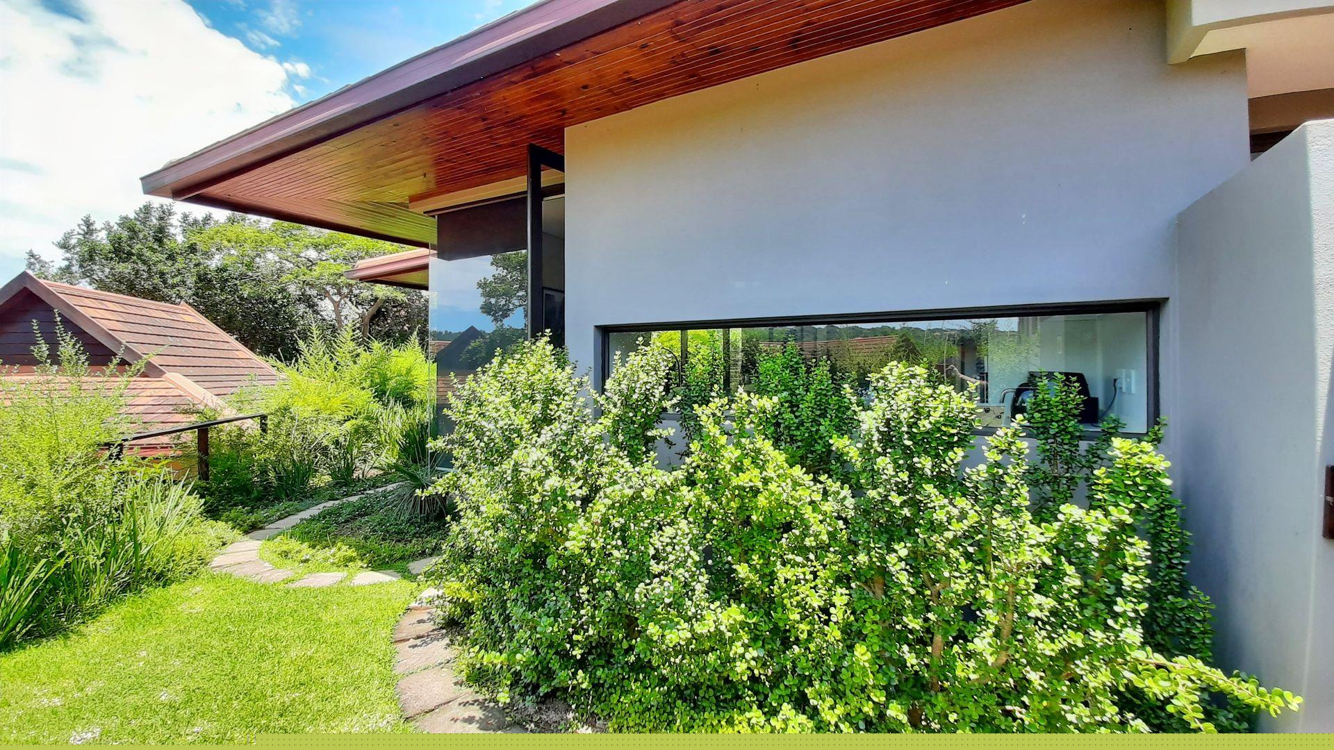The main bedroom, a true private sanctuary, opens up to a meticulously manicured garden that mirrors the tranquillity of Zimbali Estate. All three bedrooms offer en-suite luxury, providing the utmost comfort and privacy.