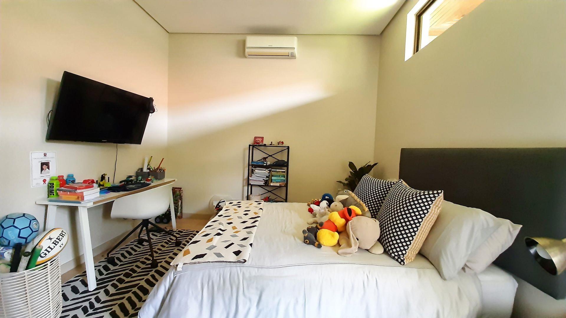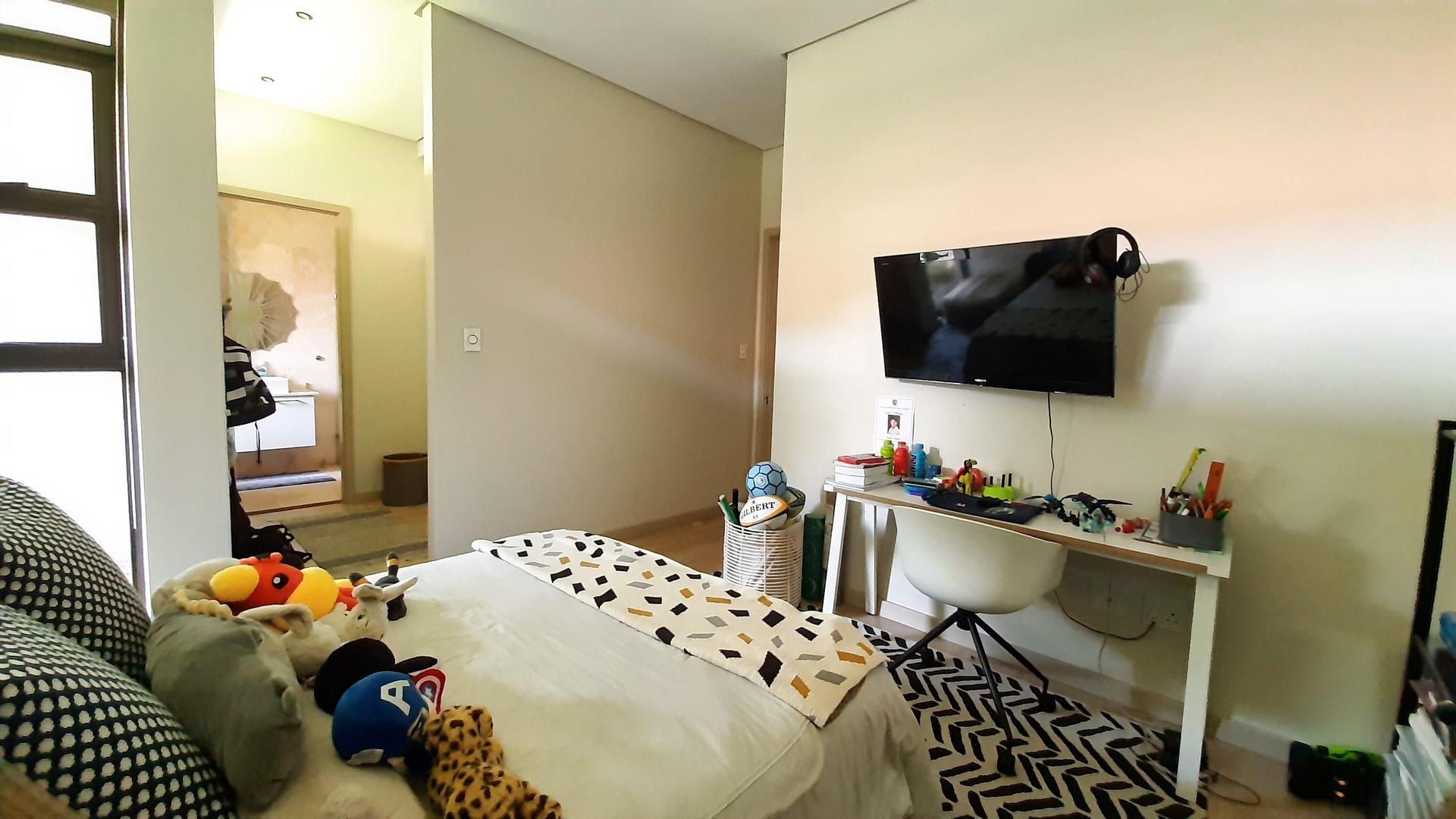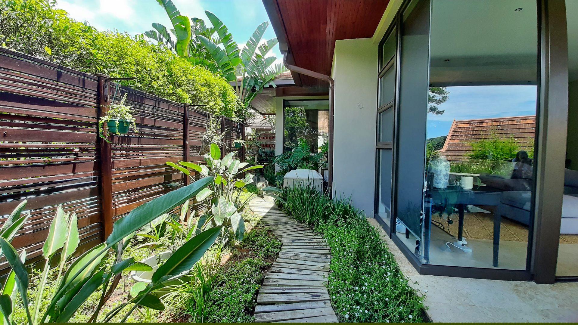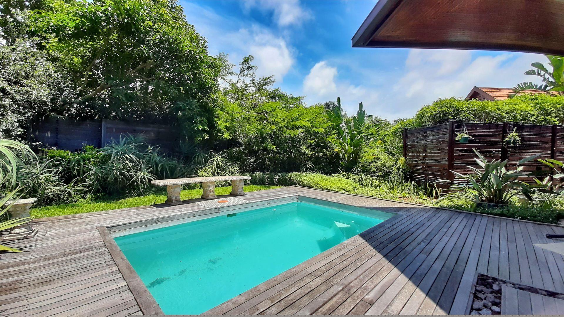 The main bedroom, a true private sanctuary, opens up to a meticulously manicured garden that mirrors the tranquillity of Zimbali Estate. All three bedrooms offer en-suite luxury, providing the utmost comfort and privacy.