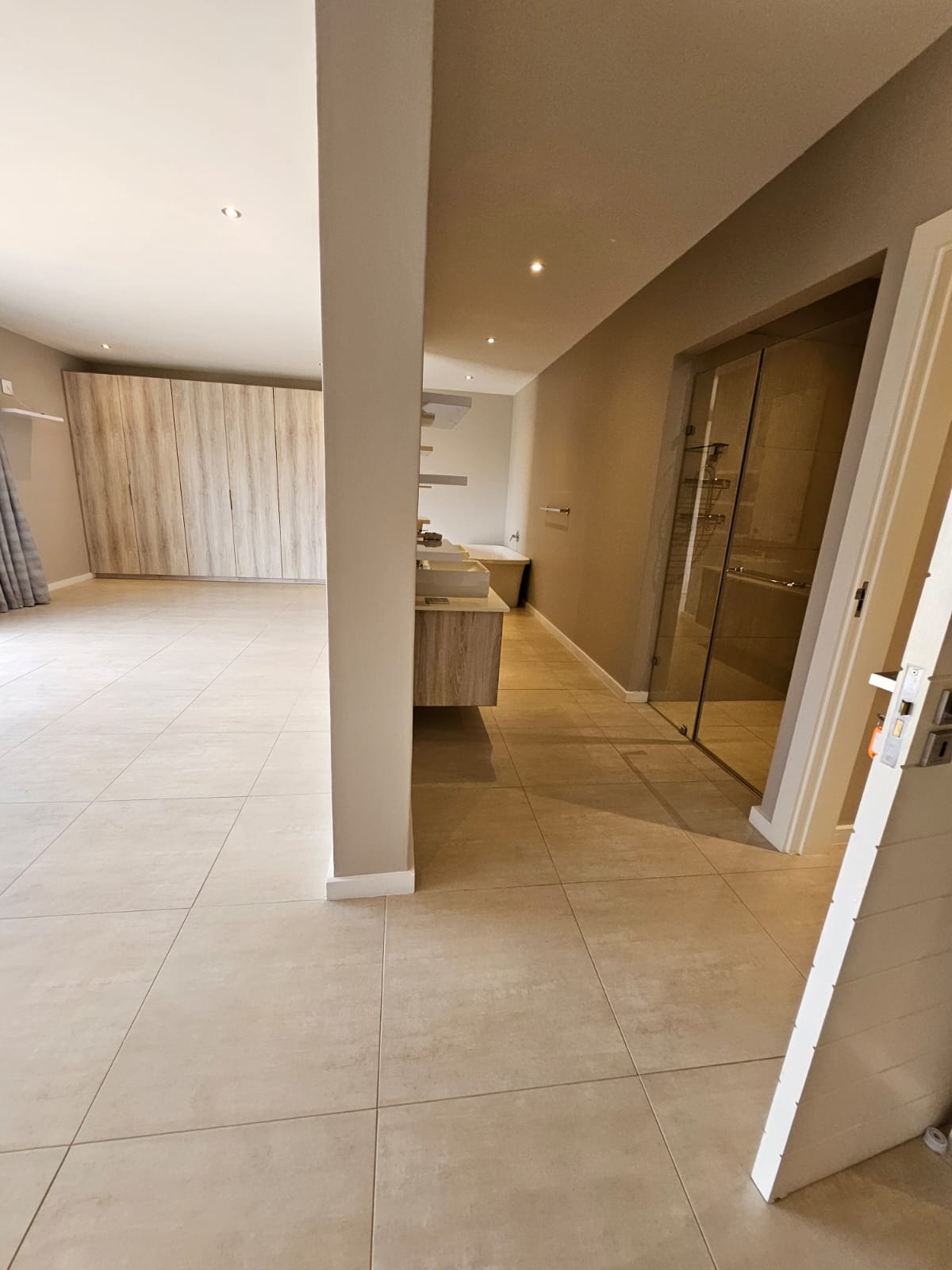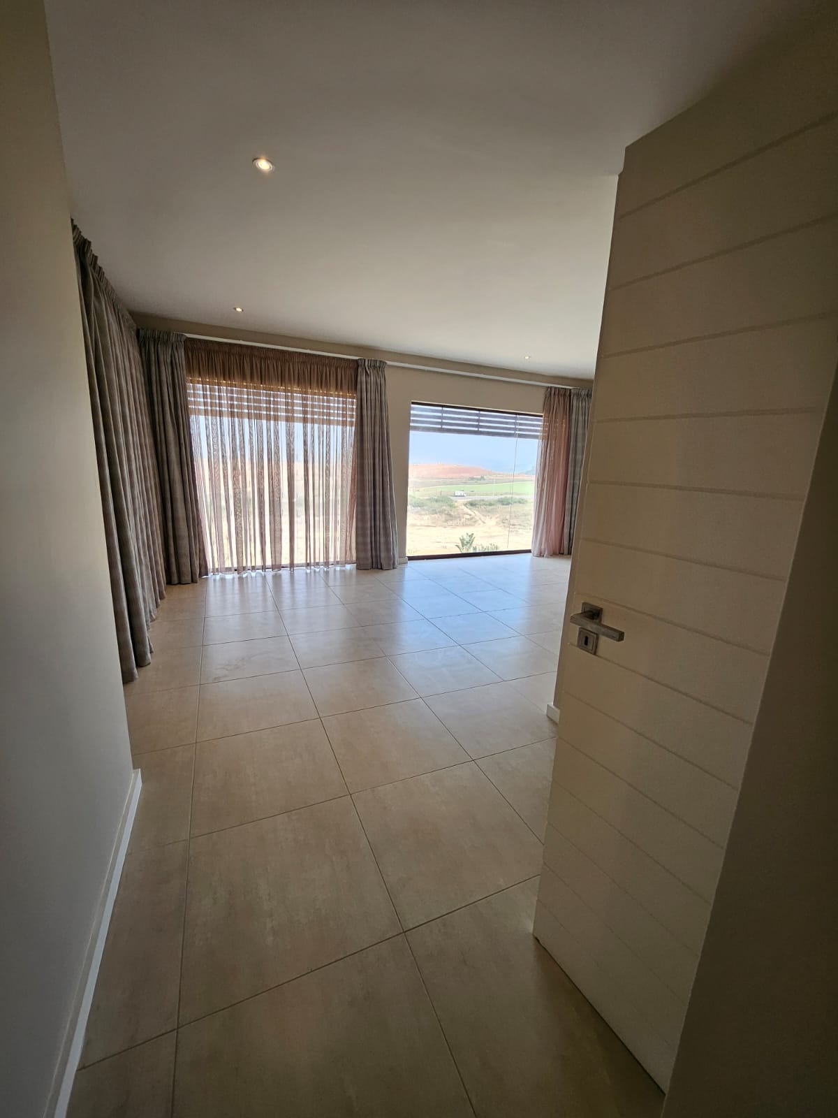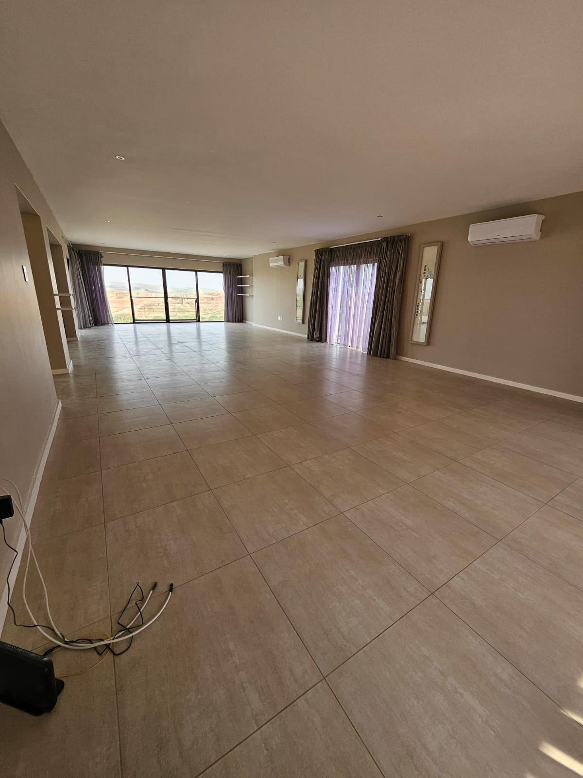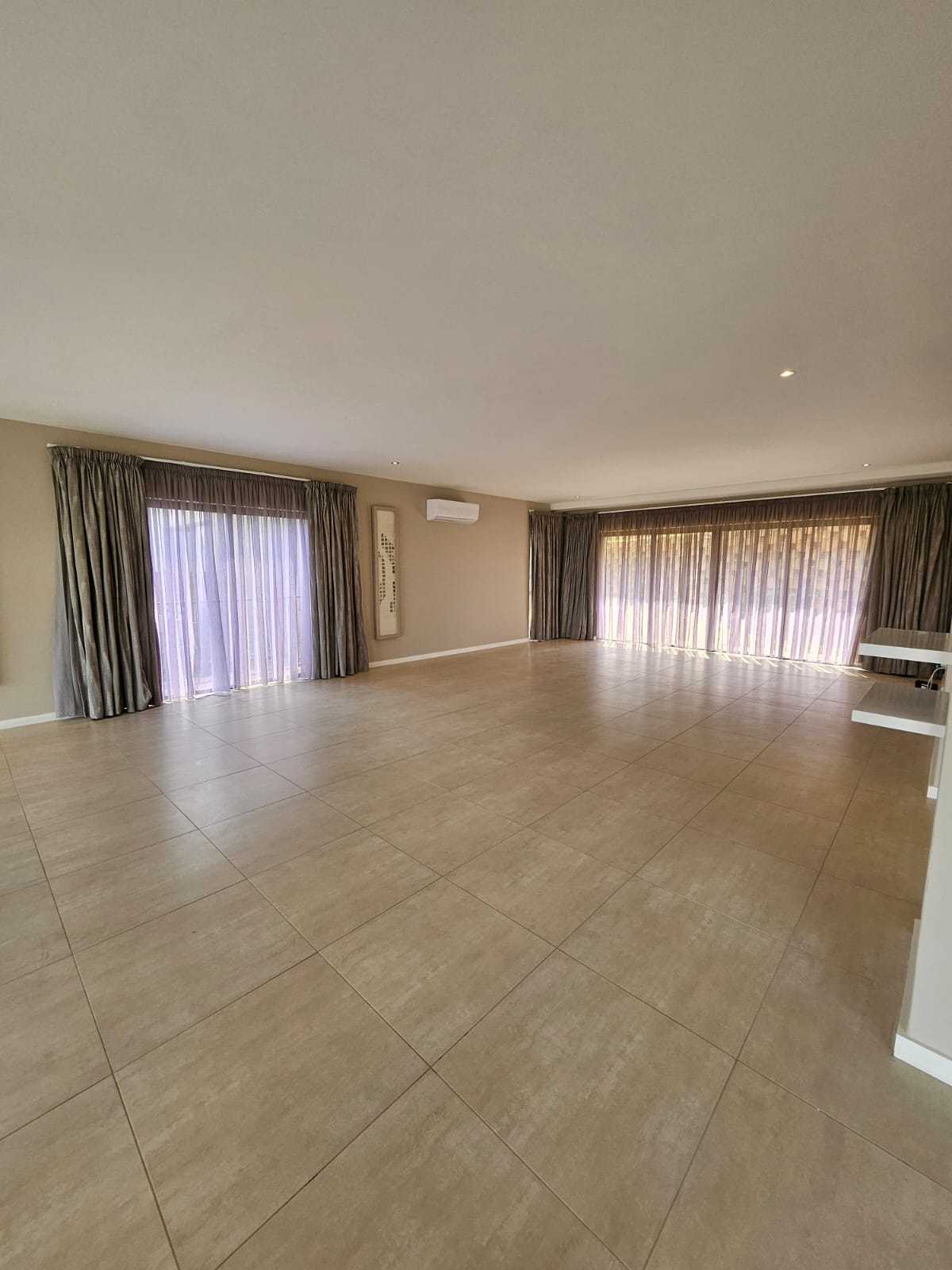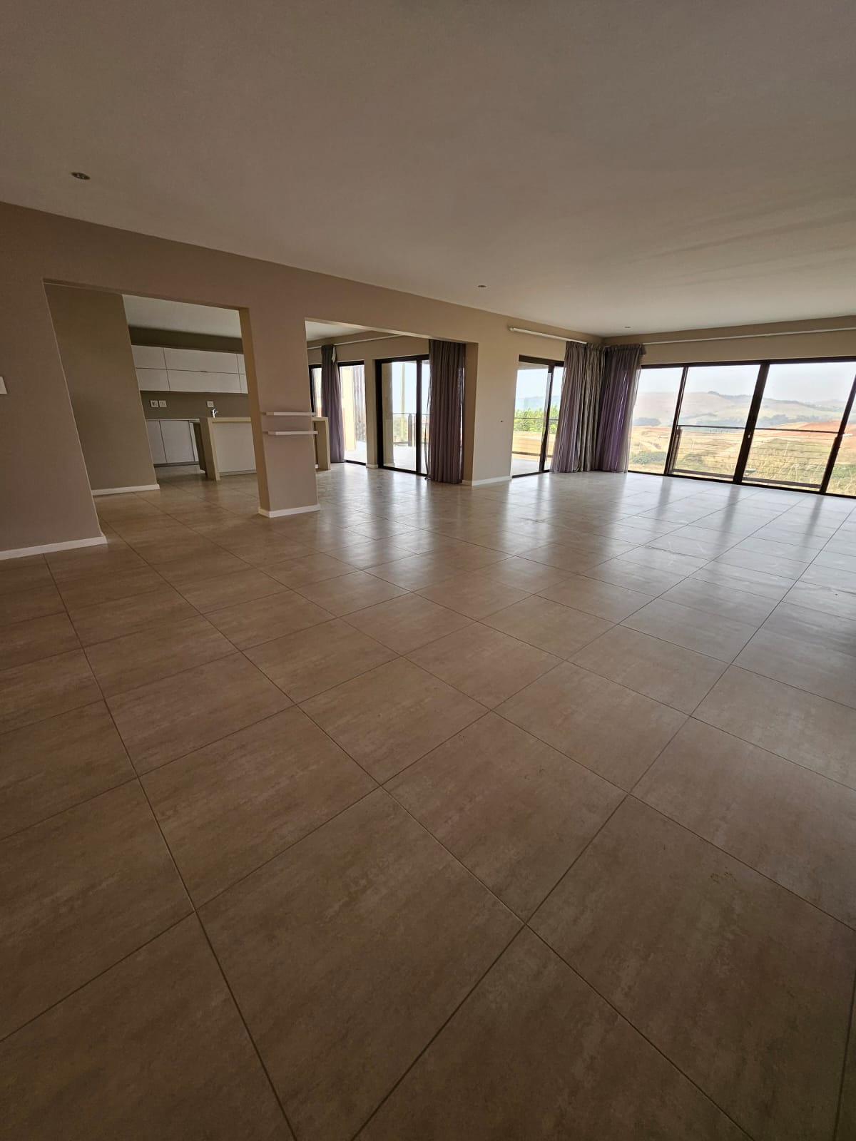 The heart of the home features a beautifully designed kitchen with scullery, flowing seamlessly into the open-plan living areas. Two dining areas and two lounges create a perfect blend of comfort and elegance, opening onto a covered patio with distant sea views – ideal for entertaining.
