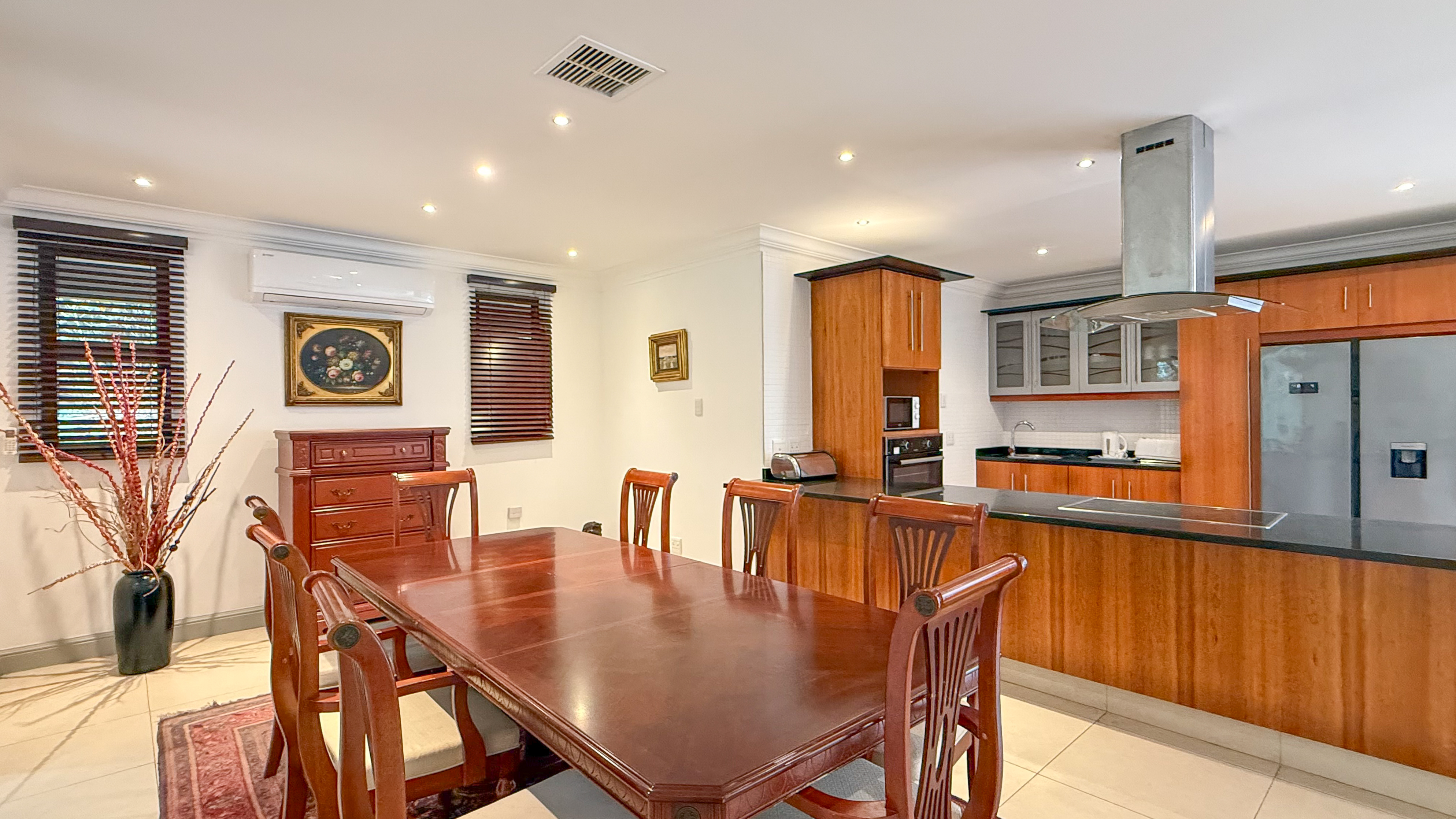 This beautifully maintained double-storey townhouse in the sought-after Zimbali Coastal Resort offers a fully furnished, lock-up-and-go lifestyle with access to world-class amenities. Designed for effortless living, the ground floor features an open-concept layout with a statement staircase that leads to three generously sized en-suite bedrooms upstairs.