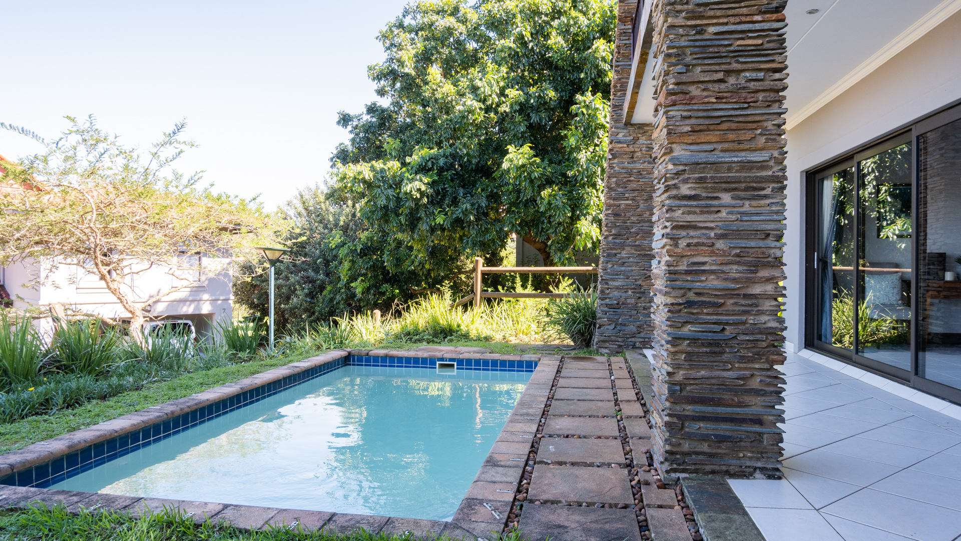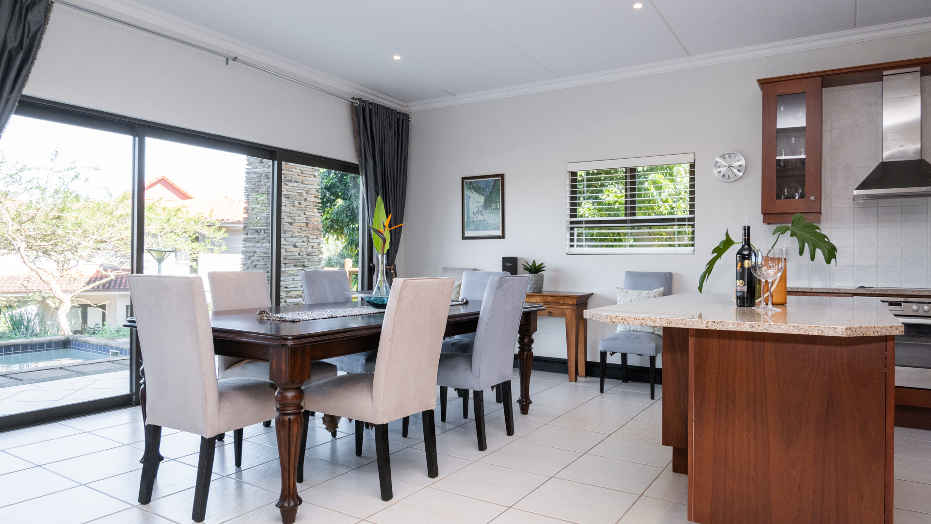Chop chop lets take you through so you can view this 3 bedroom and 3 bathroom home in Zimbali. The home has a private garden plus a swimming pool. The open floor plan allows for easy living.
