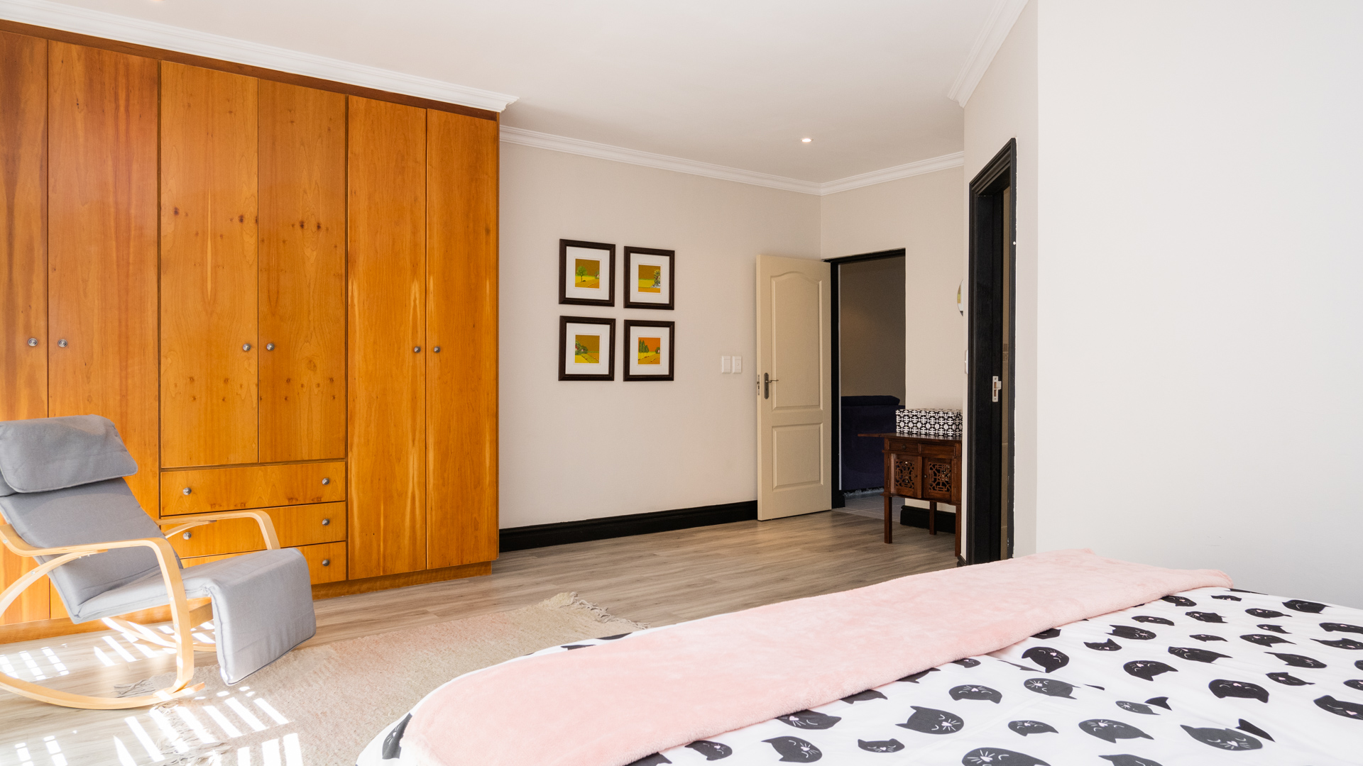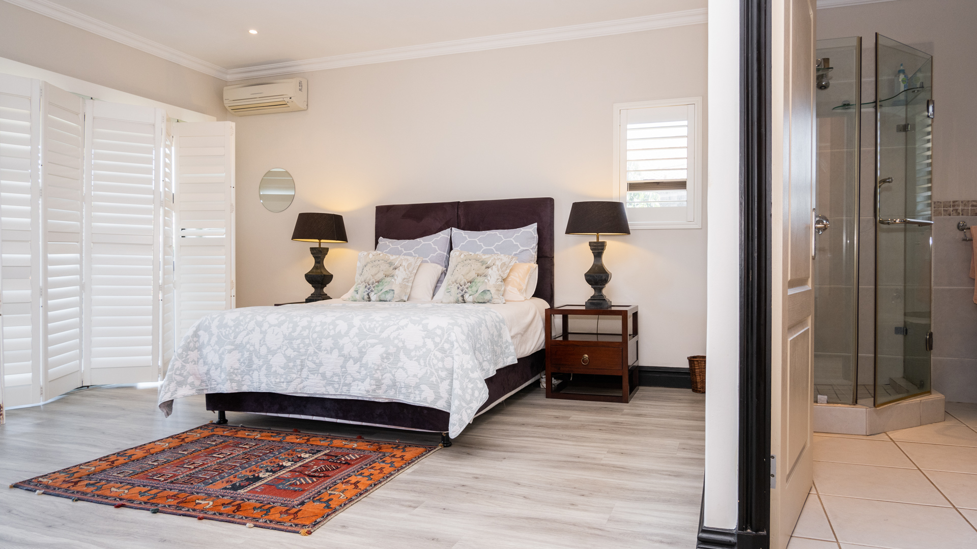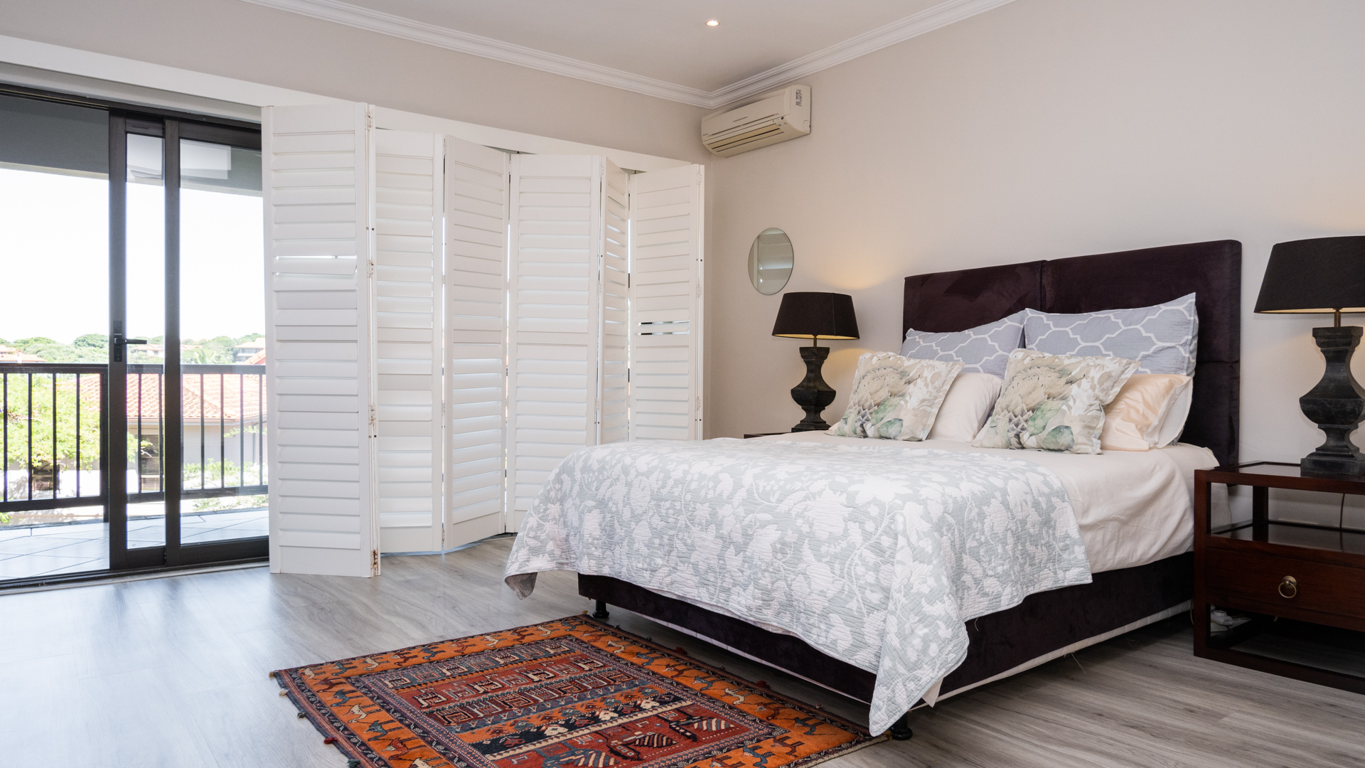 All your bedrooms are upstairs, the main en suite plus one of the other bedrooms lead out where you can enjoy the distant Seaview's and the Zimbali Estate Views, There is a massive family type bedroom with its own little balcony. The home has American style shutters throughout the bedrooms. The 4th bedroom has been converted into a Pyjama Lounge upstairs, and could be enclosed again to have a 4th bedroom.