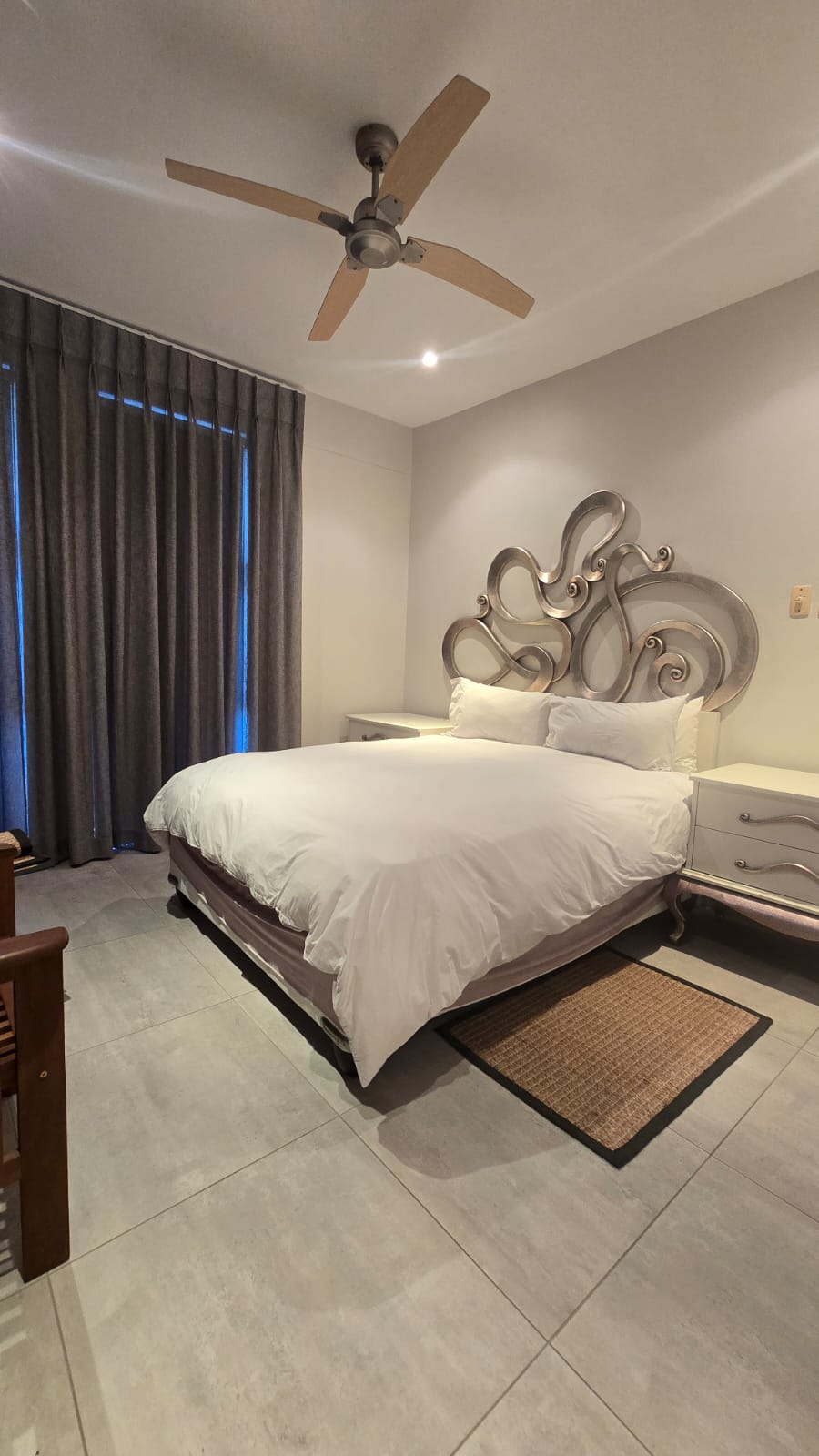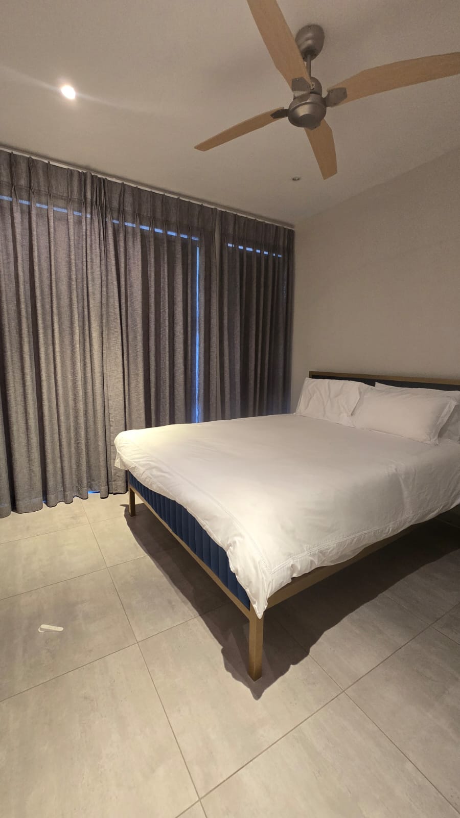 Privately positioned on the upper level, the master suite offers a luxurious retreat. Opening onto the balcony to welcome cooling coastal breezes, the bedroom is complemented by a stylish en-suite bathroom featuring a statement corner bath, His & Hers basins, and a spacious walk-in shower.