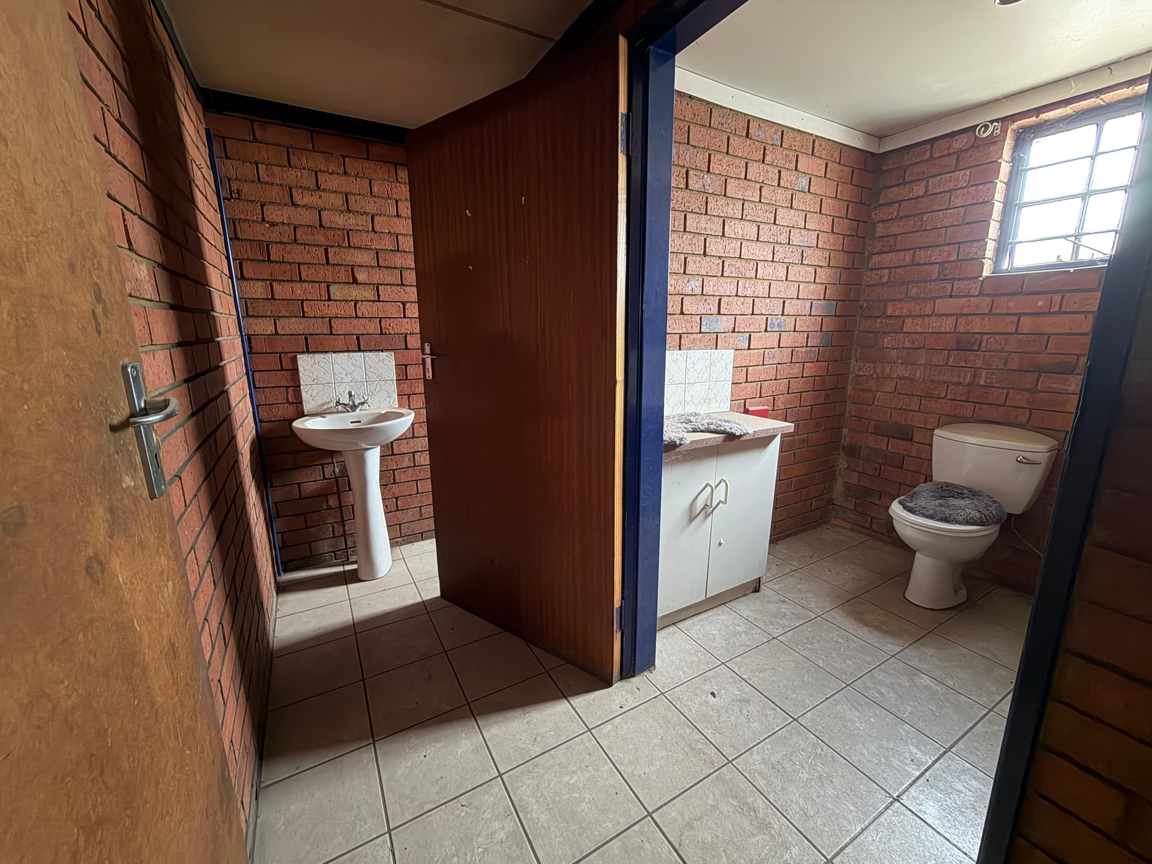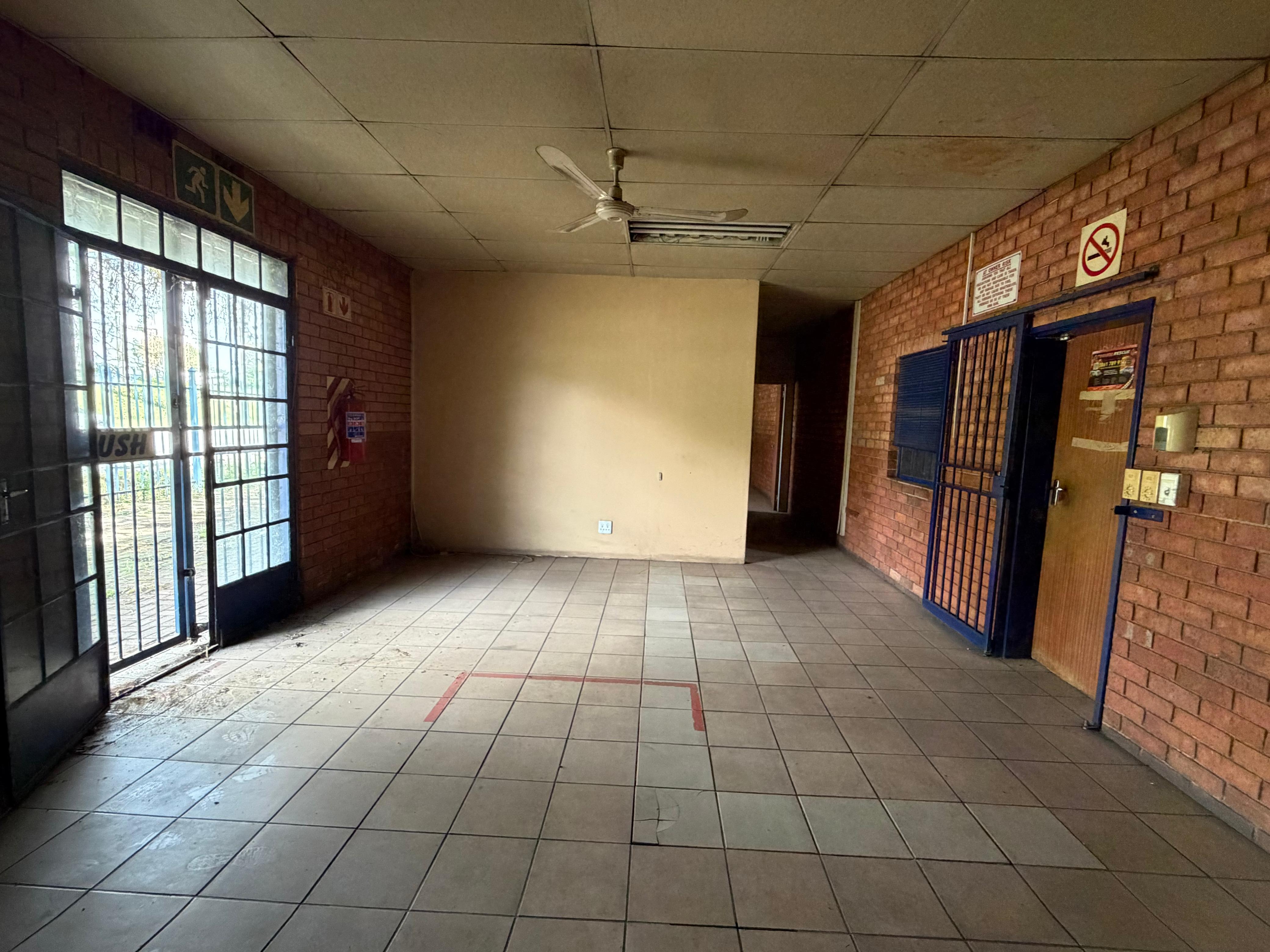 Industrial warehouse 800m2 with yard space of over 2200m2. Easy access for forklifts. Three offices, front personnel toilets x 2 and kitchenette, warehouse staff toilets x 2 and kitchenette. Situated in the Main street of Zinniaville. Four aircons.