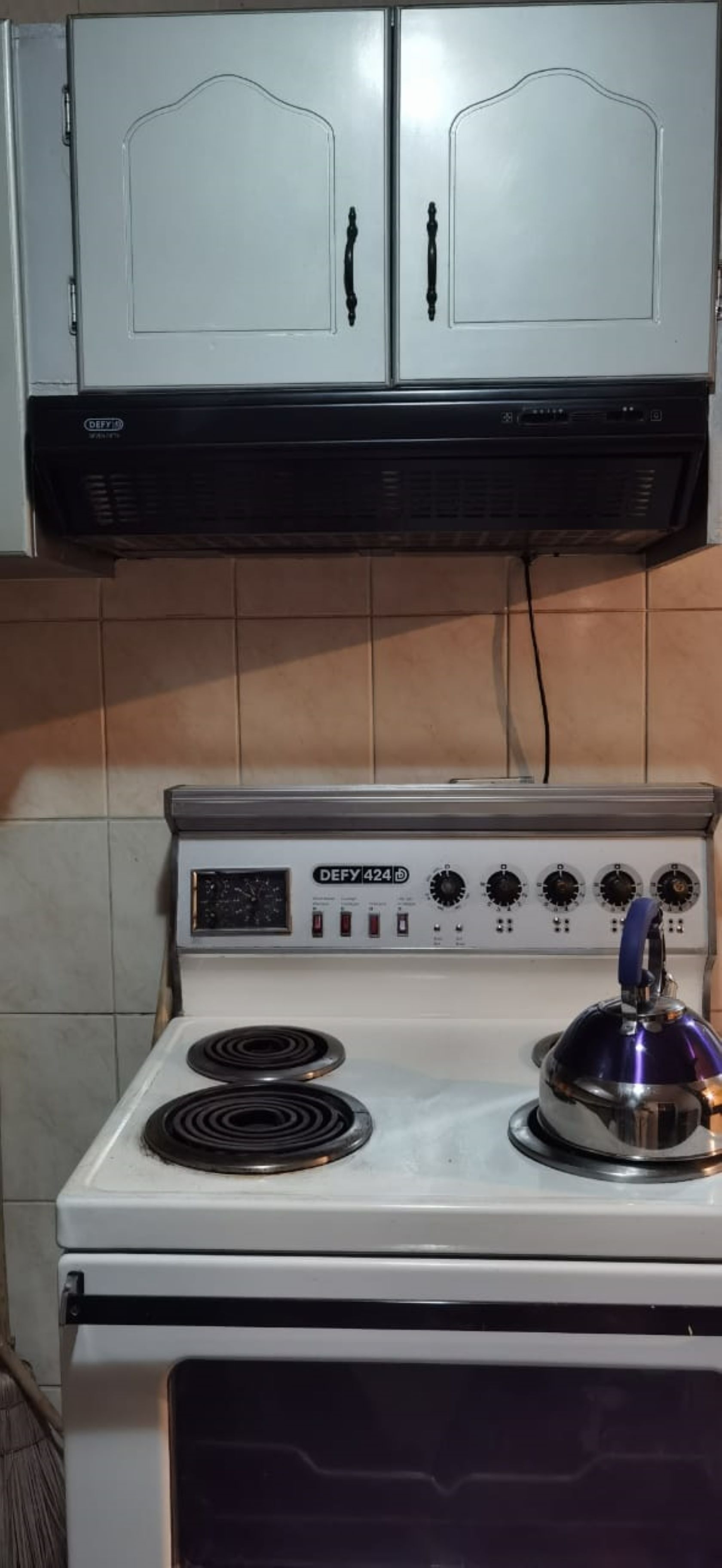 The kitchen is fully fitted with modern appliances, including a stove.