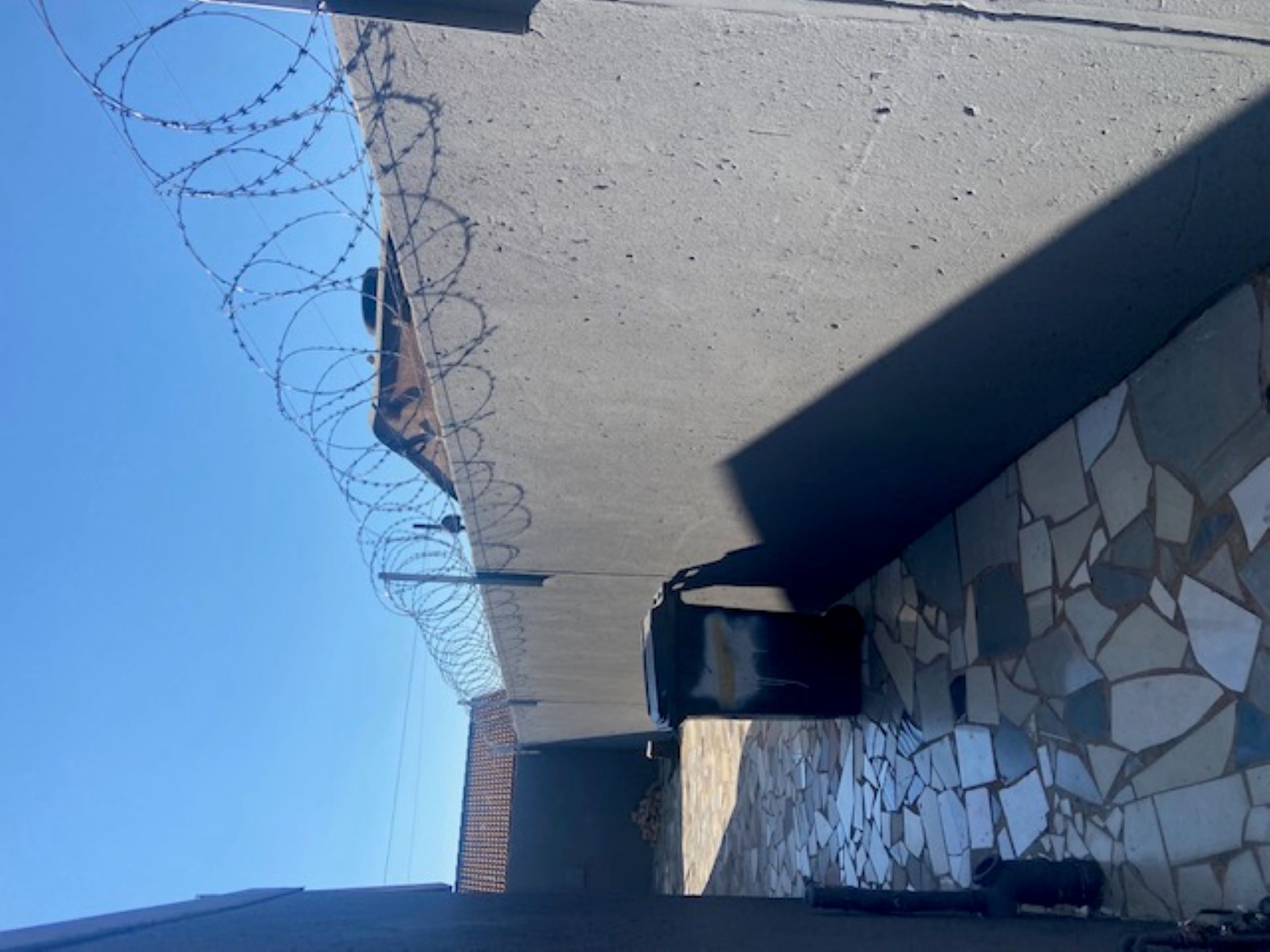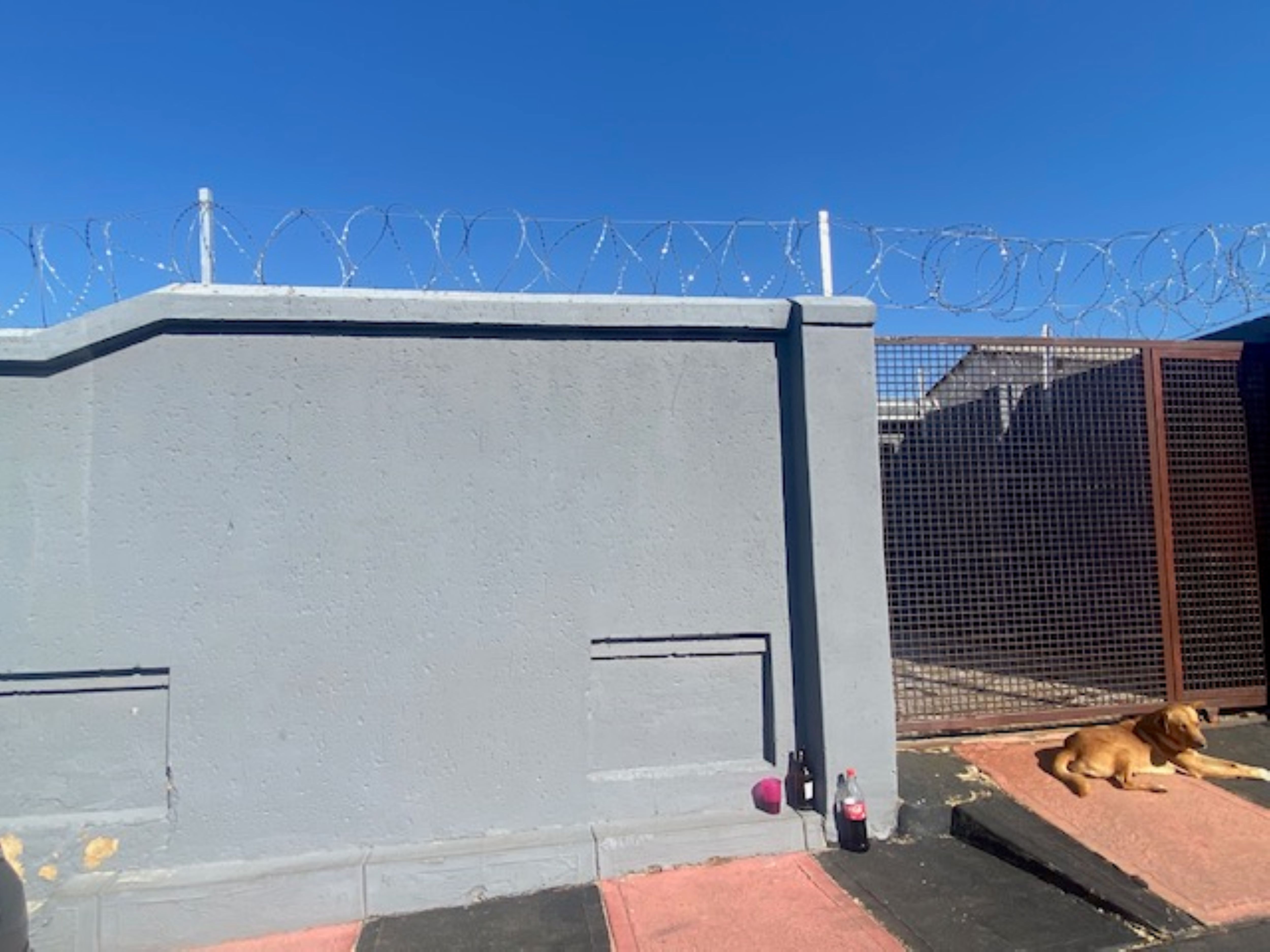 It features high walls topped with barbed wire for added security.