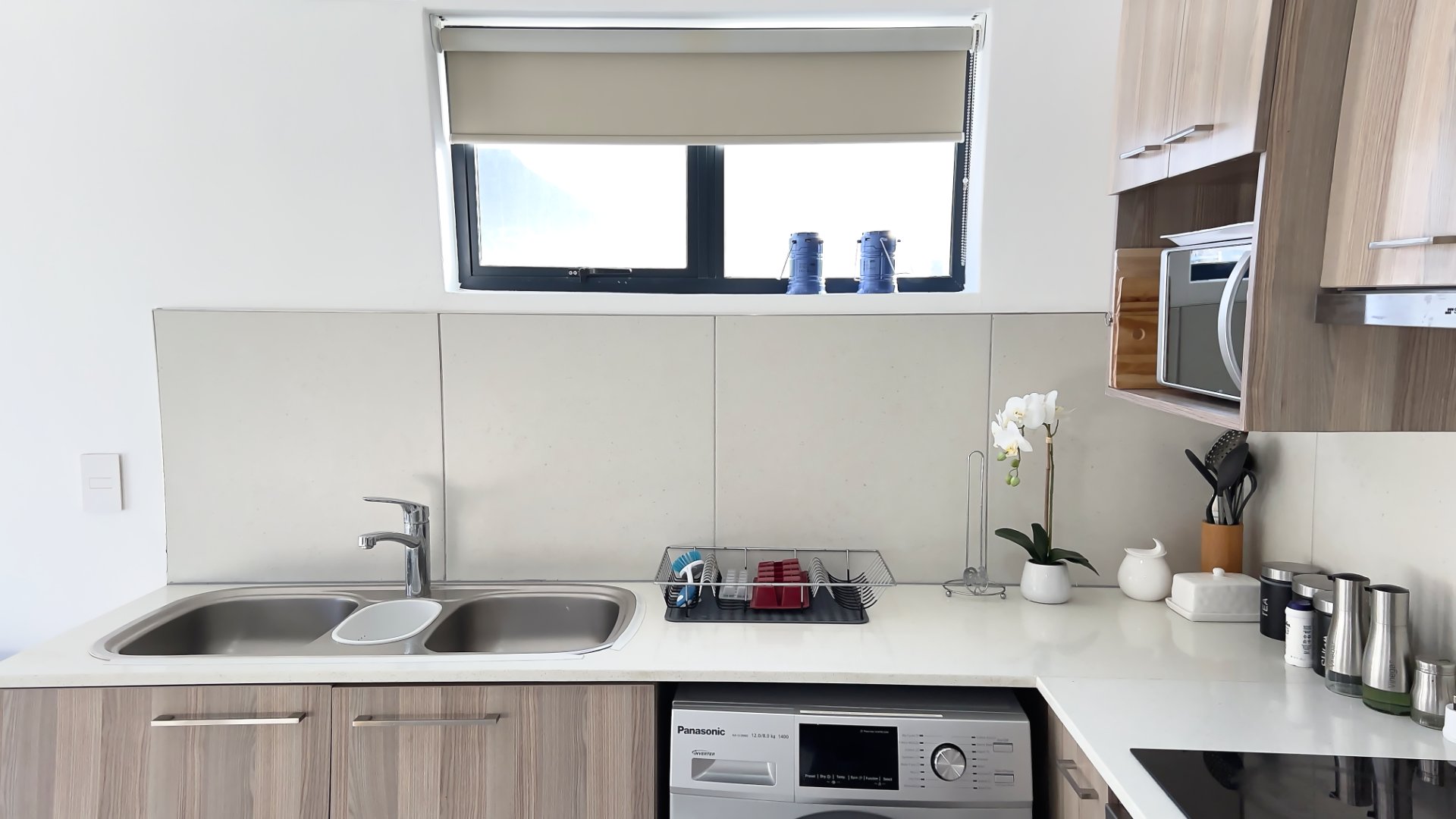 For added convenience, this apartment is equipped with a washer and dryer machine.